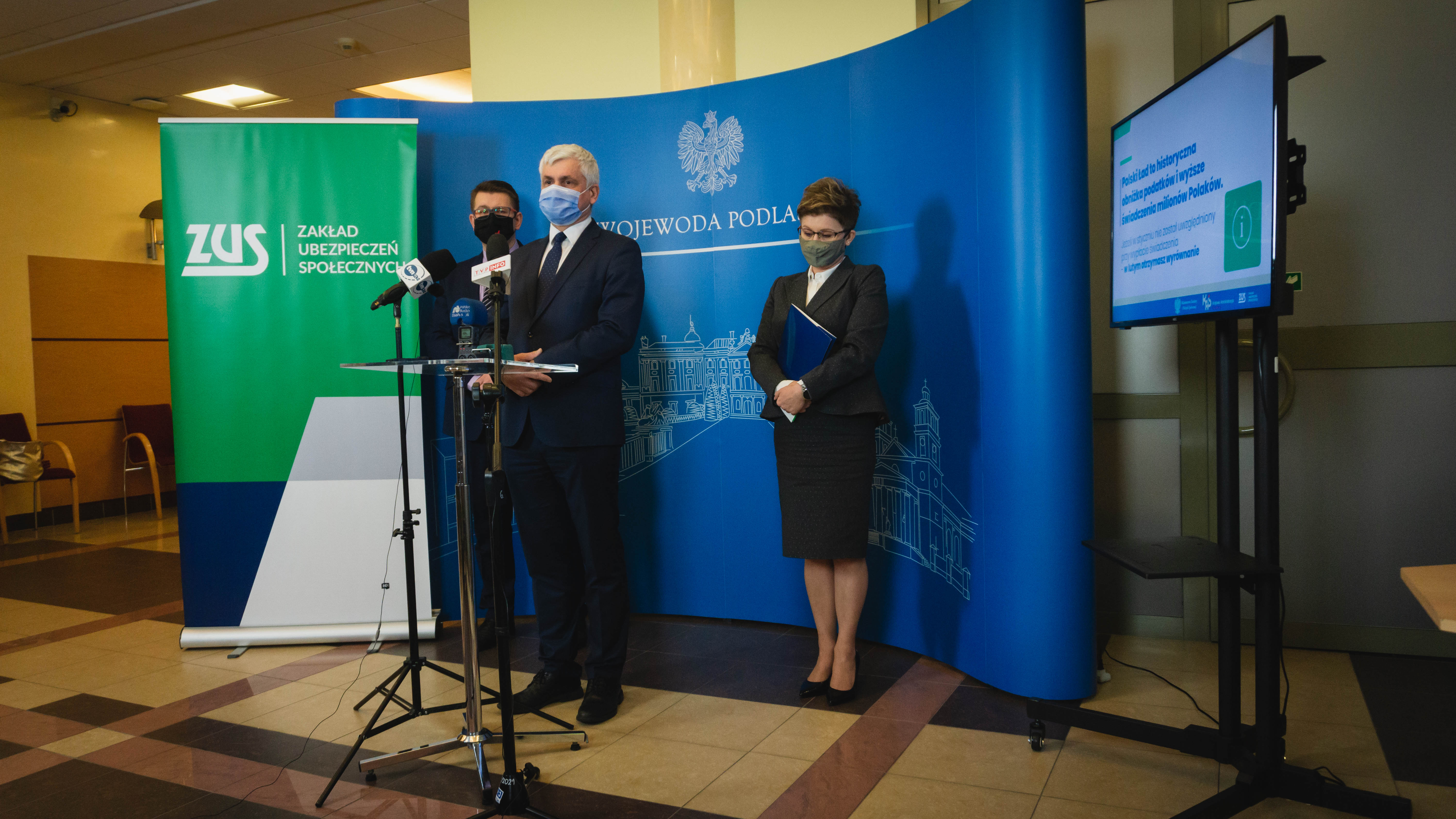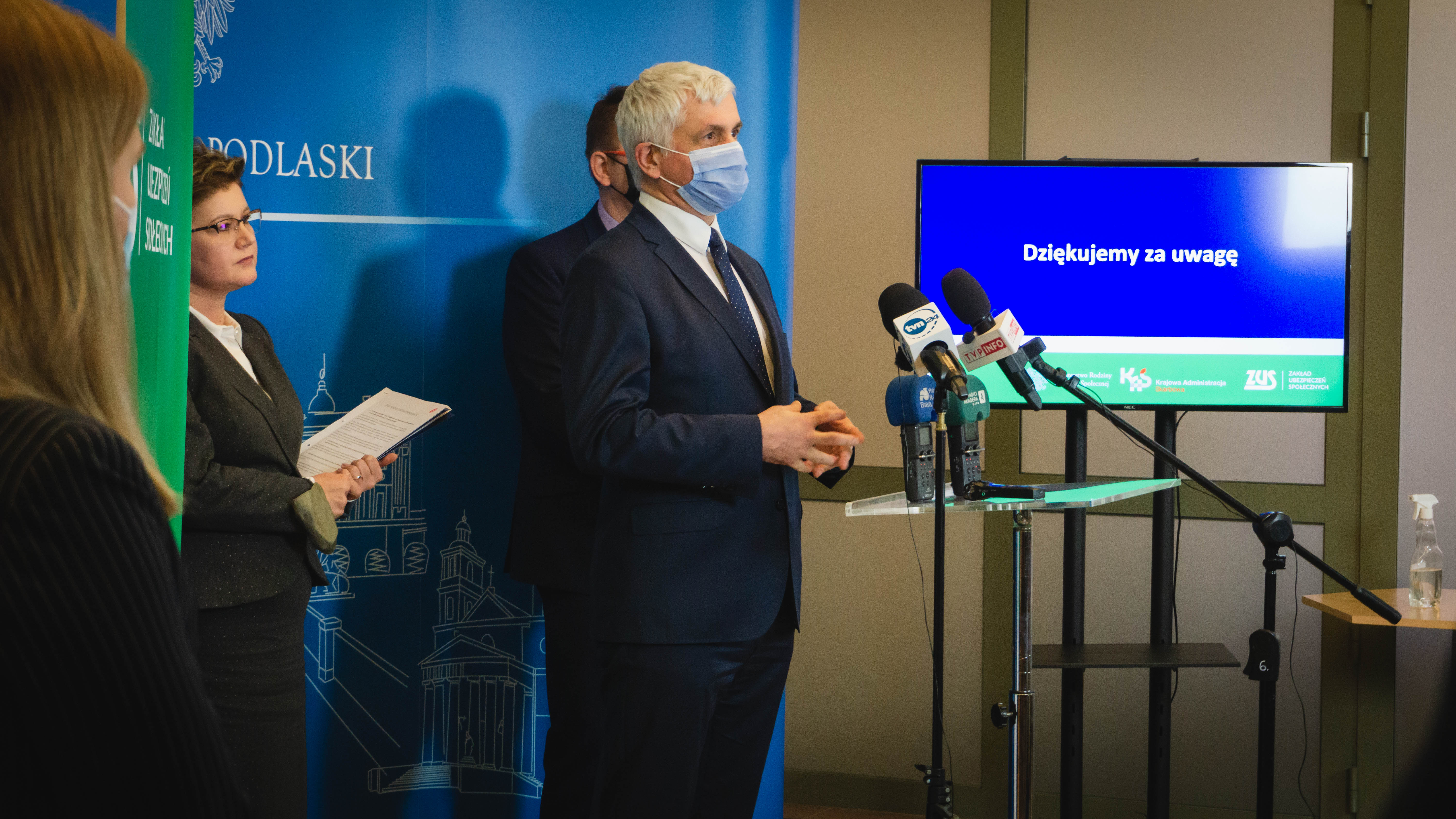 W briefingu uczestniczyli również Beata Pawlińska-Wiak - dyrektor II Oddziału Zakładu Ubezpieczeń Społecznych w Warszawie oraz zastępca dyrektora Izby Administracji Skarbowej w Białymstoku Piotr Jurczuk.