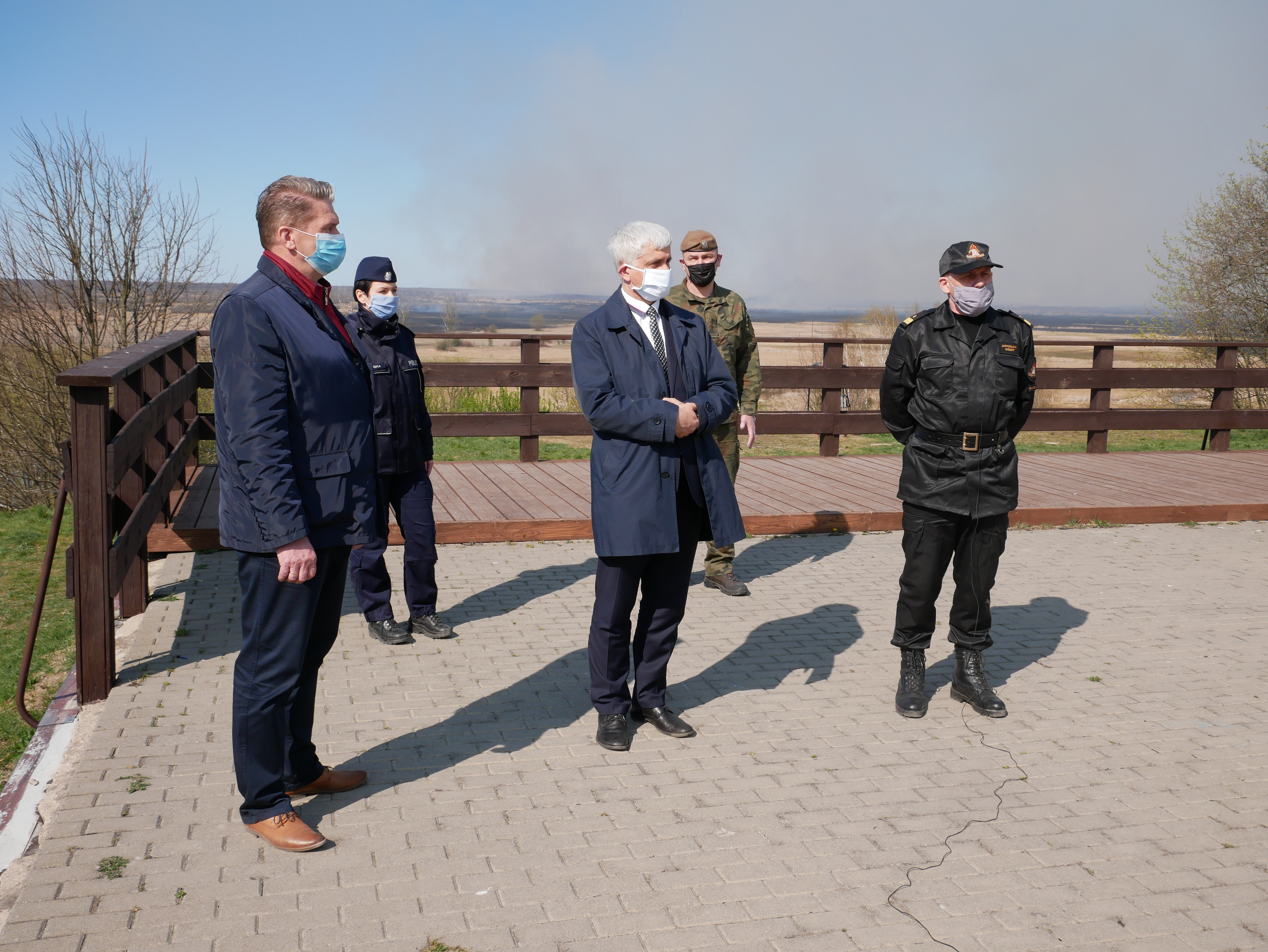Szef resortu wraz z wojewodą podlaskim Bohdanem Paszkowskim, dyrektorem BPN, komendantem wojewódzkim państwowej straży pożarnej i przedstawicielami służb zaangażowanych w akcję gaśniczą wzięli udział w konferencji prasowej w Goniądzu, gdzie powołano sztab dowodzenia.