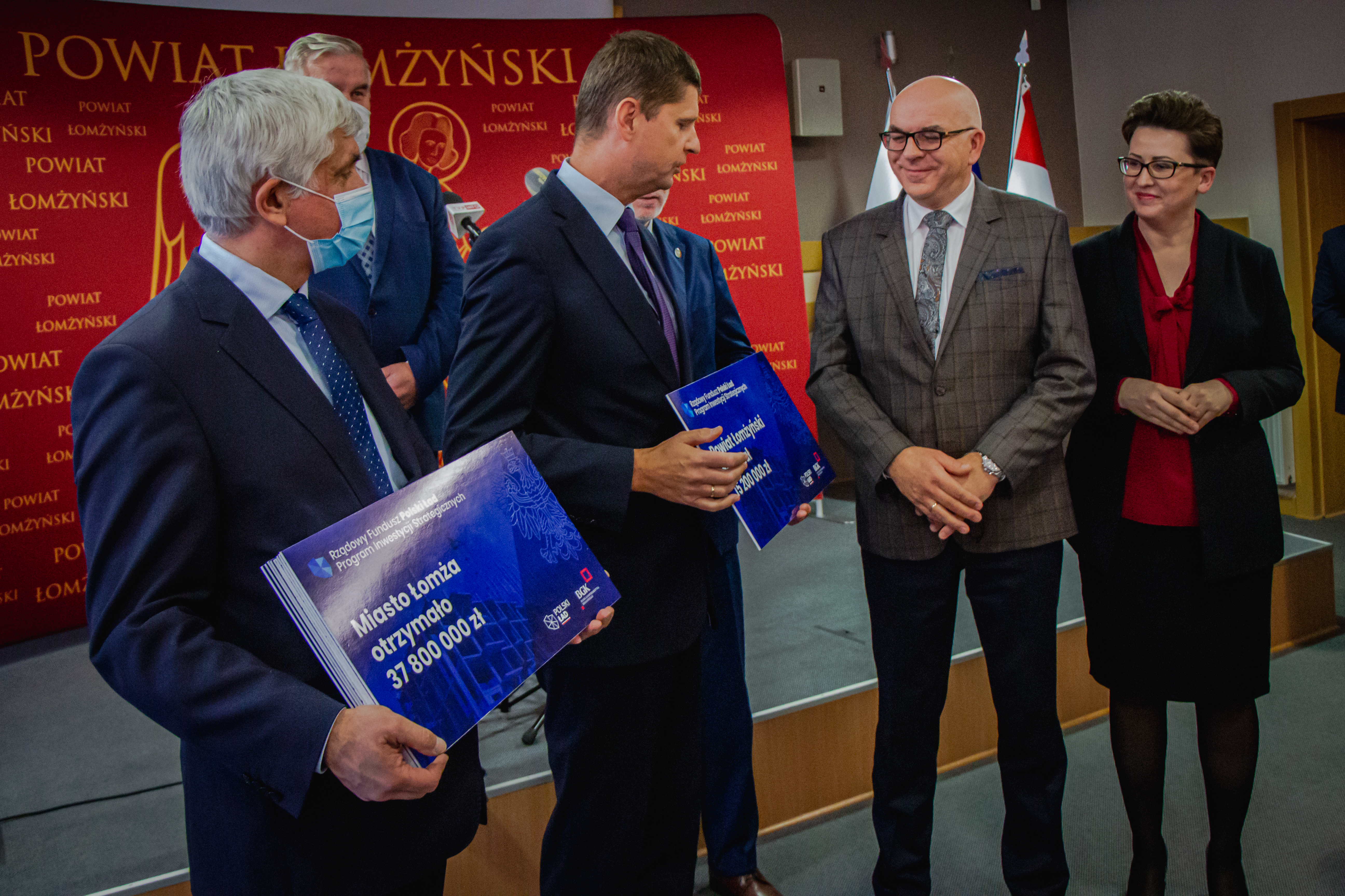 W czwartek (4.11) symboliczne czeki z sumami od prawie 4 do niemal 38 mln zł odebrali z rąk wiceministra Dariusza Piontkowskiego i wojewody Bohdana Paszkowskiego samorządowcy z Łomży i powiatu łomżyńskiego. To promesy na realizację 12 projektów zgłoszonych do pierwszej edycji Programu Inwestycji Strategicznych w ramach Rządowego Funduszu Polski Ład.