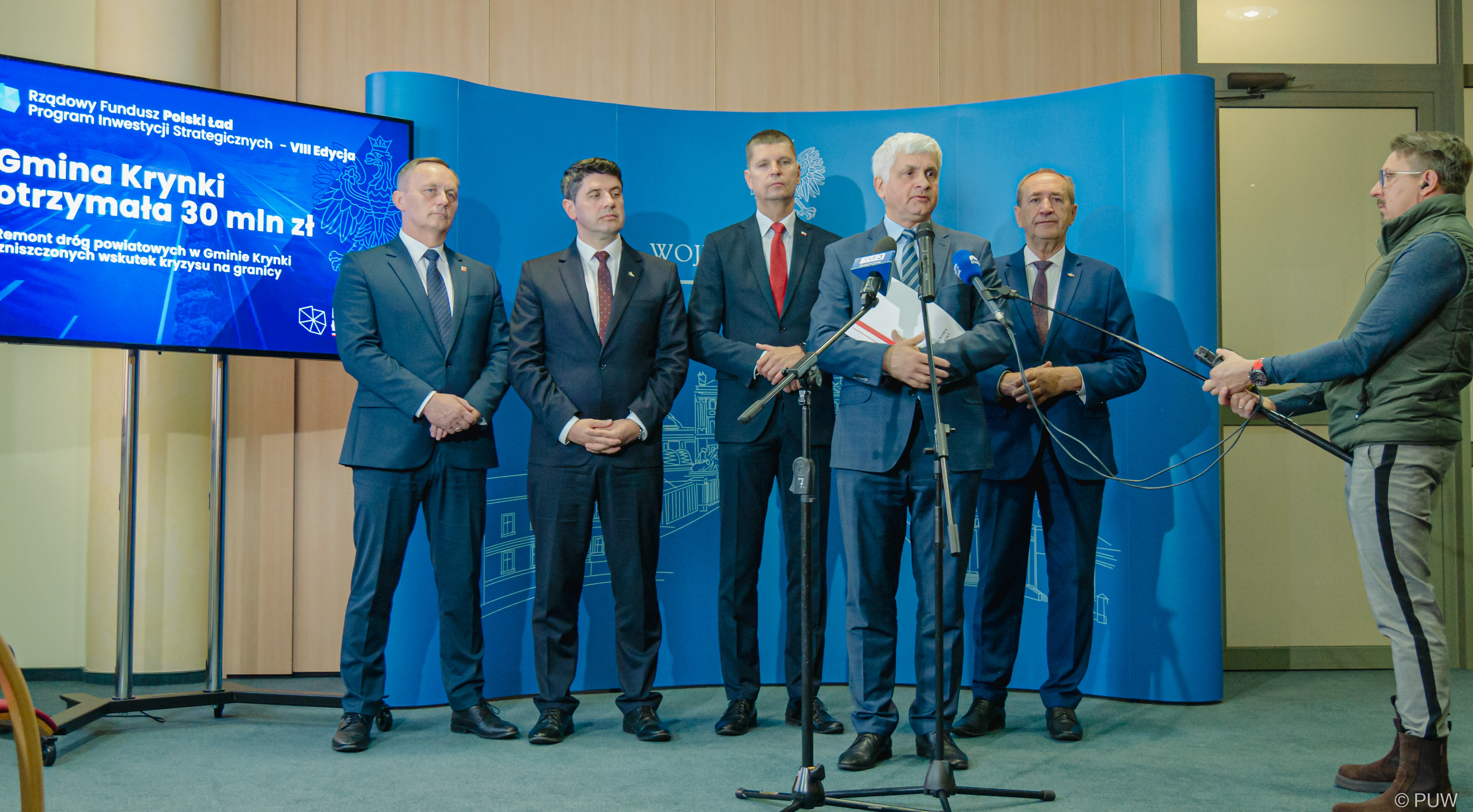 - Ogromne środki trafiły także do województwa podlaskiego. Łącznie na nasz teren trafi ponad 1,6 mld zł. To gigantyczne pieniądze, które pozwolą na budowę i remonty dróg - duża część z nich to drogi przygraniczne, które były zdegradowane w trakcie budowy zapory na granicy - podkreślał wiceminister edukacji i nauki Dariusz Piontkowski.