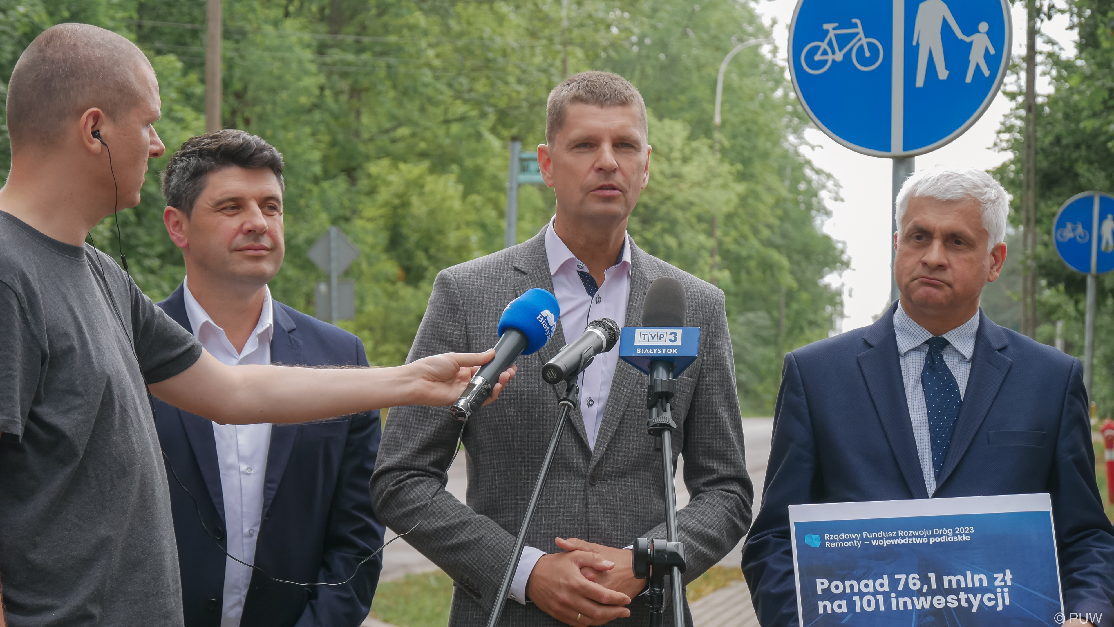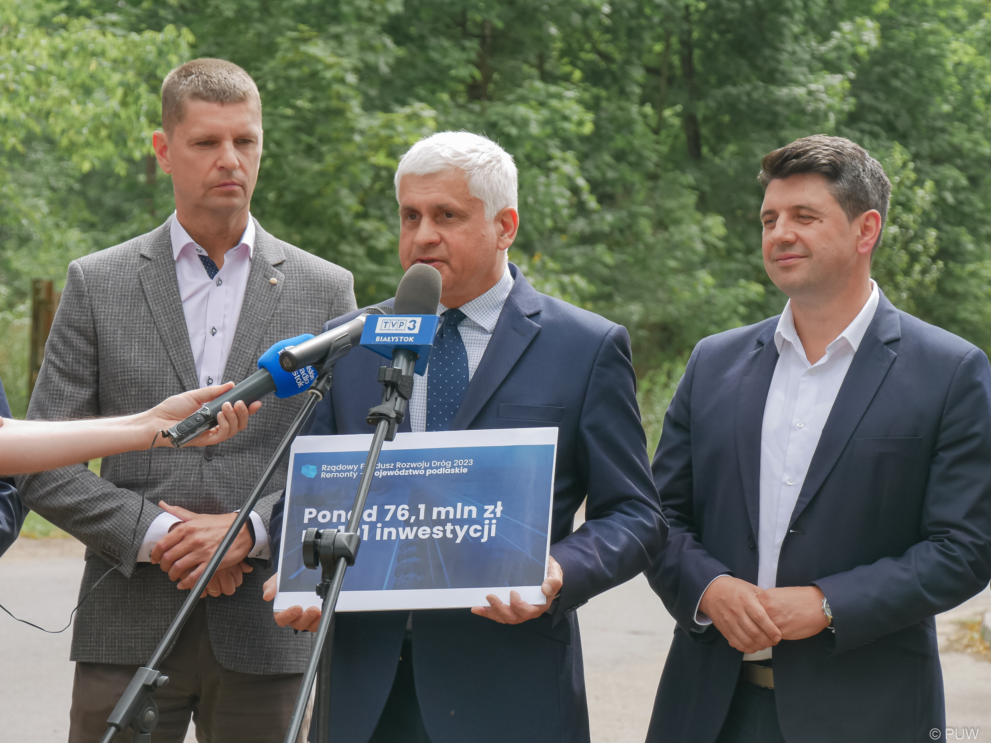 Prezes Rady Ministrów Mateusz Morawiecki zatwierdził listy zadań remontowych na drogach powiatowych i gminnych, które uzyskały dofinansowanie ze środków Rządowego Funduszu Rozwoju Dróg w naborze wniosków na 2023 rok. To dodatkowe wsparcie, przeznaczone wyłącznie na remont dróg lokalnych. Dzięki temu w województwie podlaskim samorządy przeprowadzą 101 inwestycji za ponad 76,1 mln zł, o czym poinformowali w poniedziałek (24.07) wojewoda podlaski Bohdan Paszkowski, wiceminister edukacji i nauki Dariusz Piontkowski oraz senator Mariusz Gromko, a także samorządowcy.