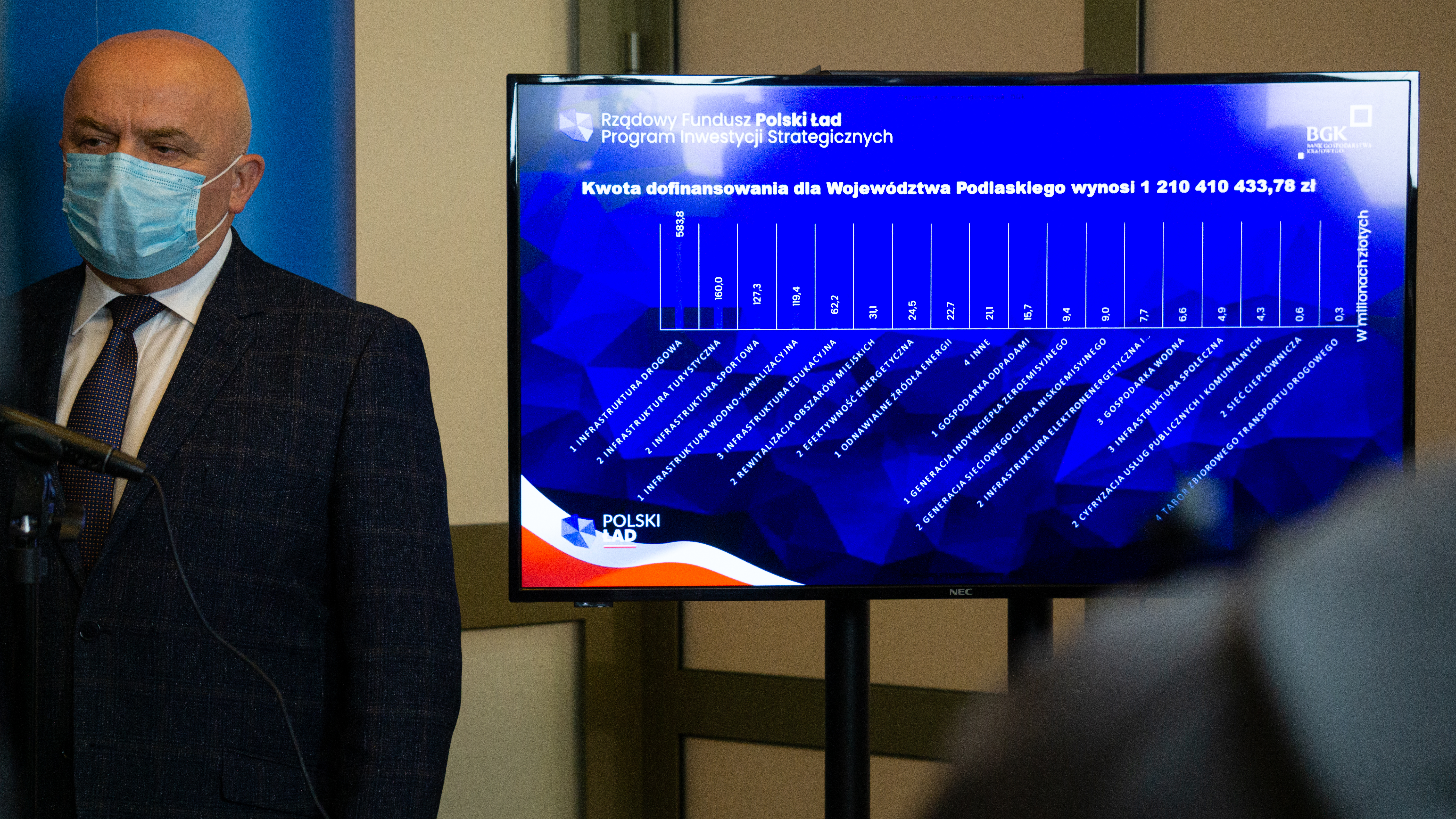 W poniedziałek (25.10) premier Mateusz Morawiecki ogłosił wyniki pierwszej edycji Programu Inwestycji Strategicznych w ramach Rządowego Funduszu Polski Ład. Na liście dofinansowanych zadań znalazło się ponad 180 z województwa podlaskiego - powiatowych i gminnych na kwotę ponad 1,2 mld zł. Wsparcie otrzymają niemal wszystkie samorządy z regionu.