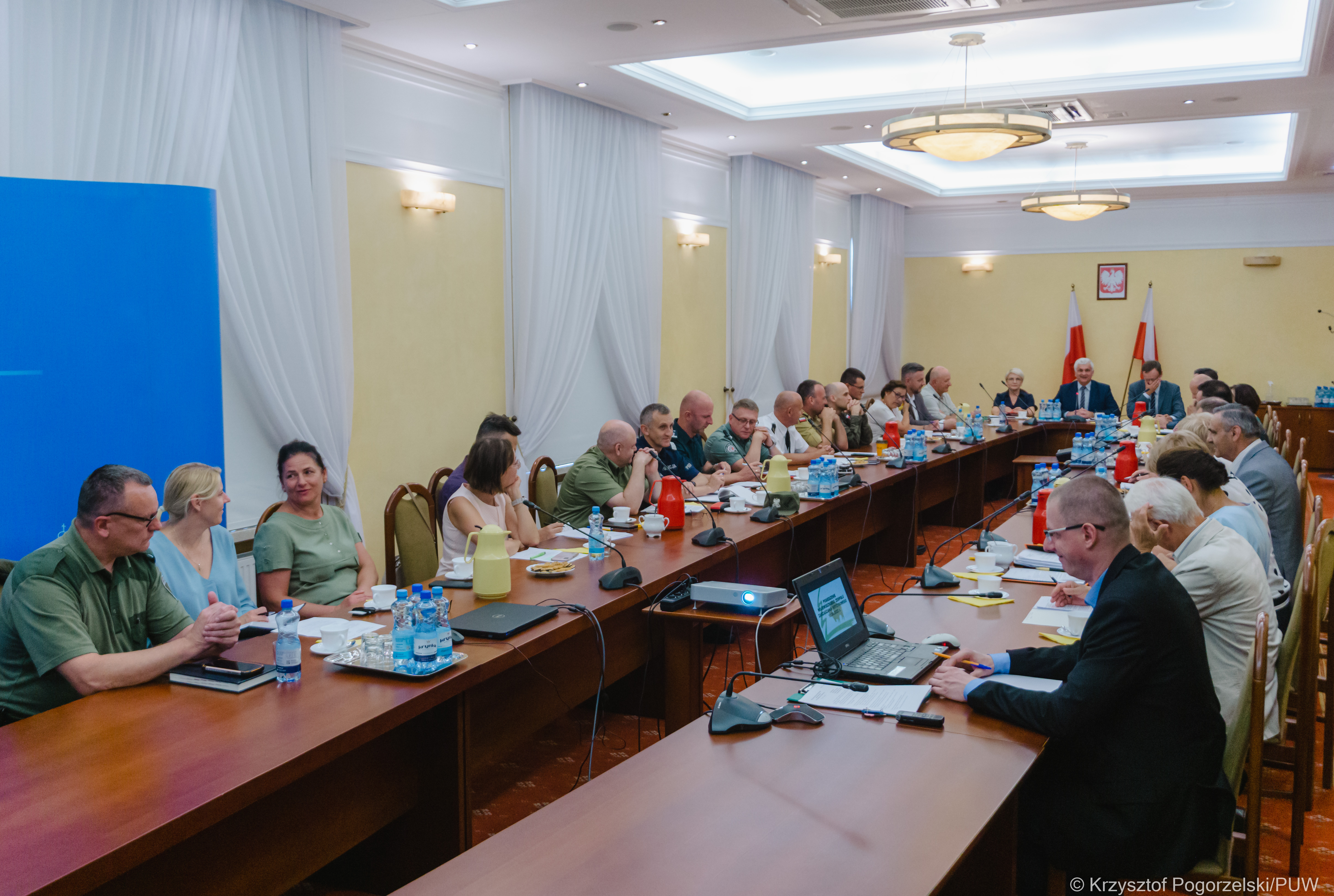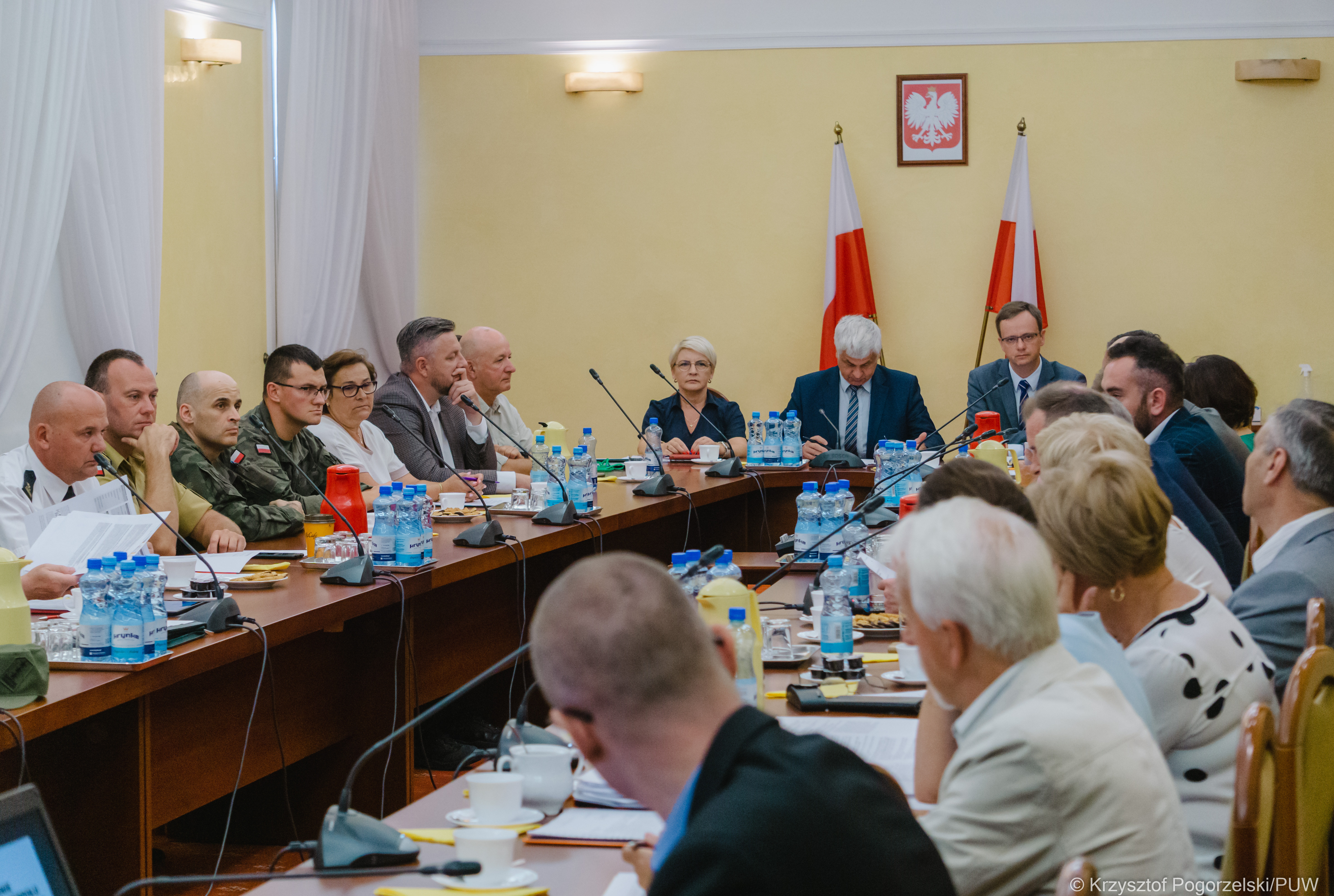 Stan wód śródlądowych w regionie, sytuacja epidemiczna, zagrożenie pożarowe w lasach oraz kryzys migracyjny na polsko-białoruskiej granicy to główne tematy posiedzenia Wojewódzkiego Zespołu Zarządzenia Kryzysowego, które odbyło się w czwartek (18.08) pod przewodnictwem wojewody podlaskiego Bohdana Paszkowskiego.