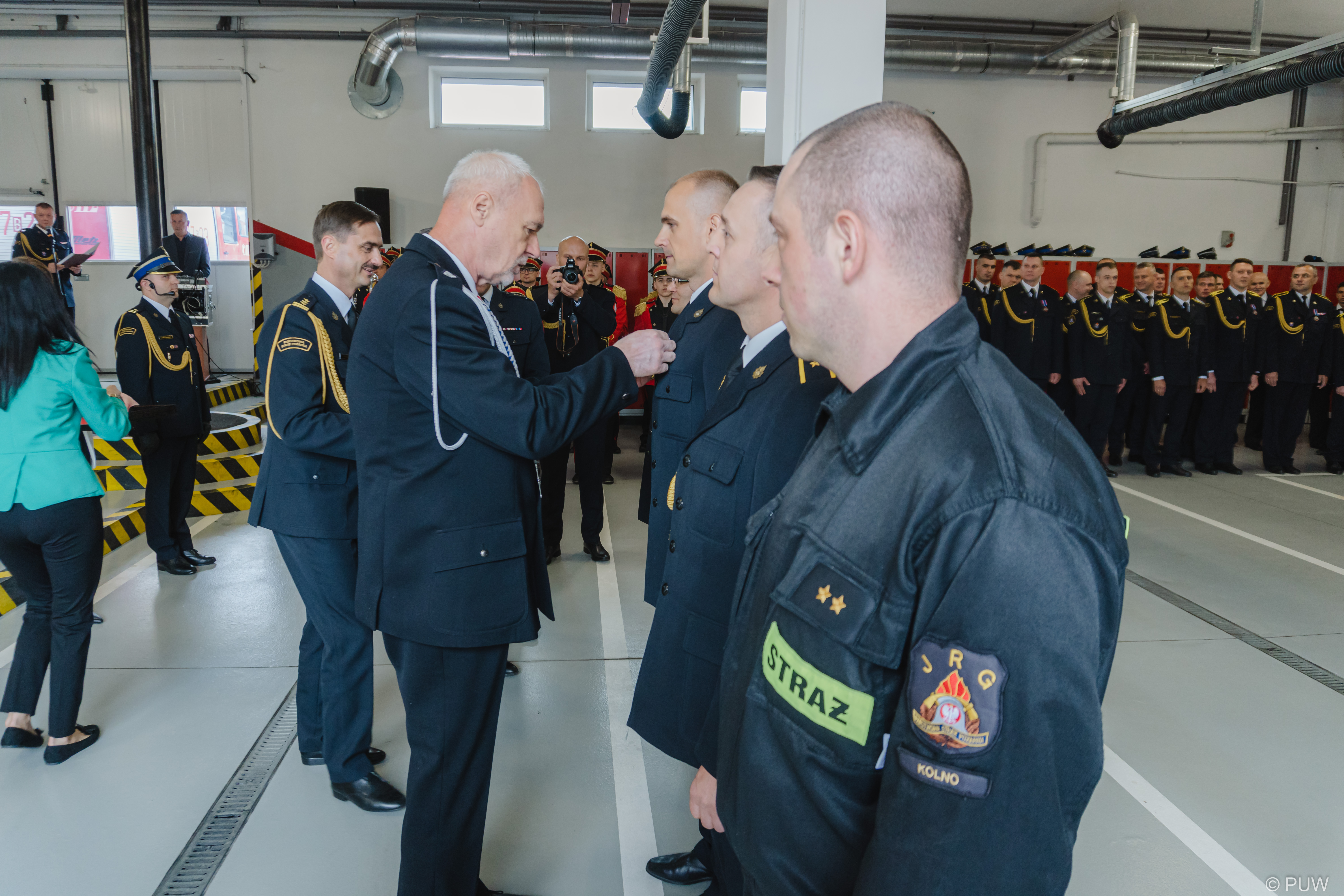 W trakcie uroczystości odbyło się wręczenie odznaczeń, awansów na wyższe stopnie służbowe oraz przyznanie wyróżnień kolneńskim strażakom z PSP, jak również z OSP.
