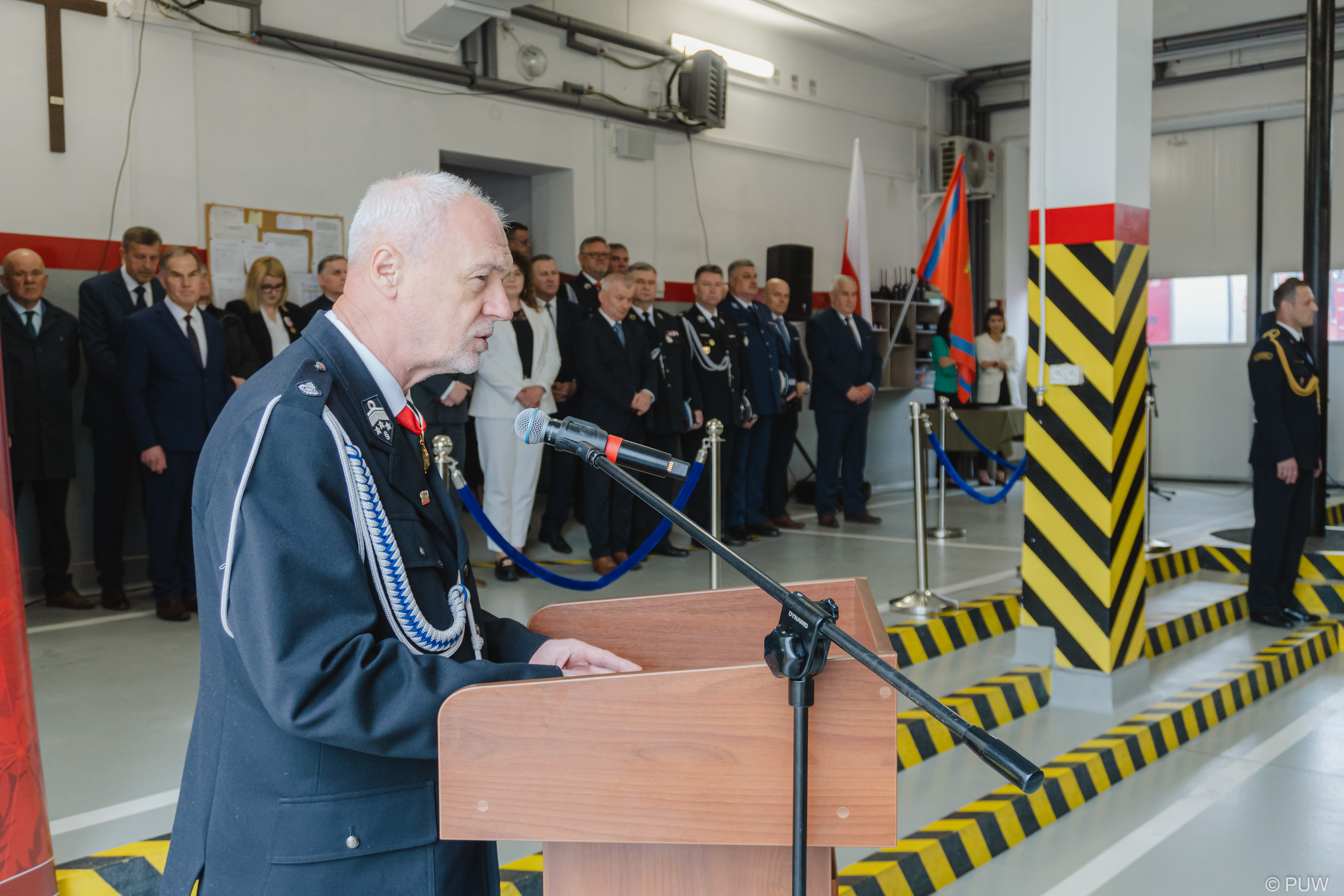 - Chciałbym dziś Państwu podziękować za gotowość niesienia pomocy tam, gdzie jest ona wymagana. Za nieustanny rozwój, którego wymagają dzisiejsze czasy - nabywanie nowych umiejętności, obsługę nowoczesnego sprzętu. Życzę, abyście zachowując piękną tradycję Straży Pożarnej, pozyskiwali do swoich szeregów ofiarnych strażaków, byli wyposażani w jak najlepszy sprzęt - podkreślał wojewoda podlaski Bohdan Paszkowski.