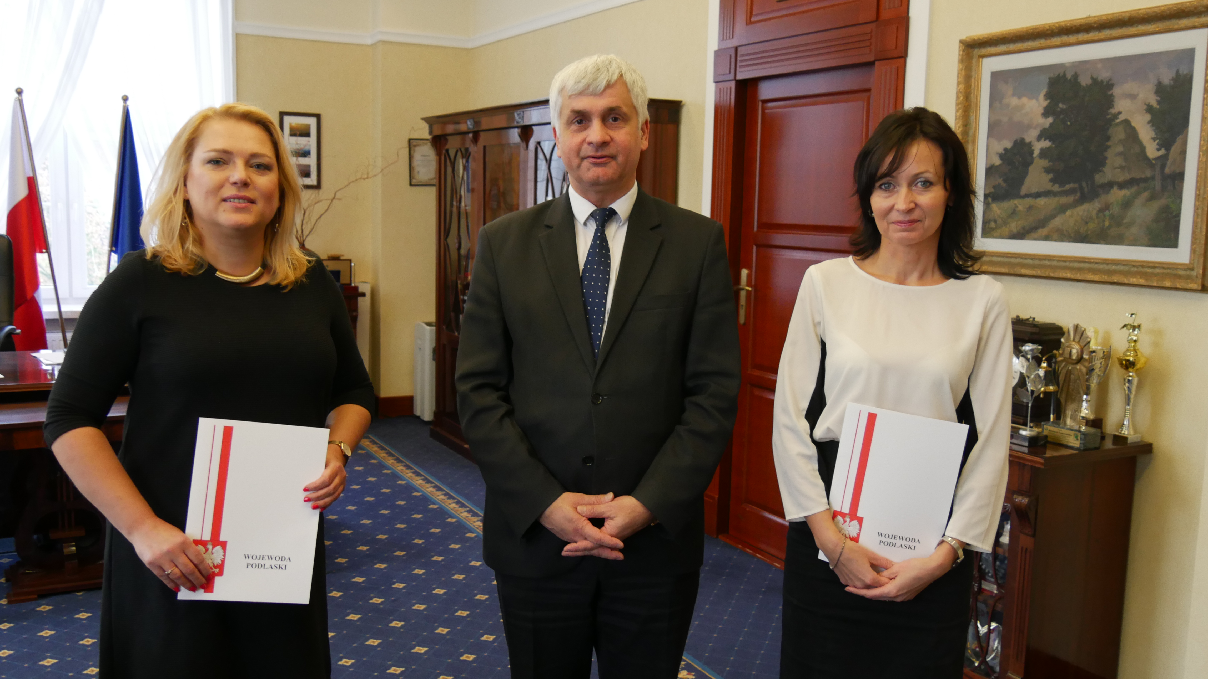 Wojewoda podlaski Bohdan Paszkowski wręczył w czwartek akty powołań konsultantów wojewódzkich w ochronie zdrowia, w dziedzinach: genetyki klinicznej – dr n. med. Renacie Posmyk oraz pielęgniarstwa – mgr Marcie Milewskiej-Buzun.