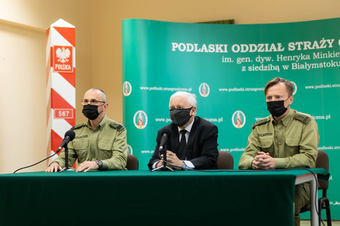 - Podjęliśmy decyzję o budowie trwałej zapory wzdłuż granicy polsko-białoruskiej. Doświadczenie innych państw, których dotknął kryzys migracyjny, pokazuje, że jest to jedyna skuteczna metoda - powiedział wicepremier Jarosław Kaczyński. W czwartek (7 października), w siedzibie Podlaskiego Oddziału Straży Granicznej, odbyło się wyjazdowe posiedzenie Komitetu ds. Bezpieczeństwa Narodowego i Spraw Obronnych, które było poświęcone sytuacji na granicy polsko-białoruskiej.