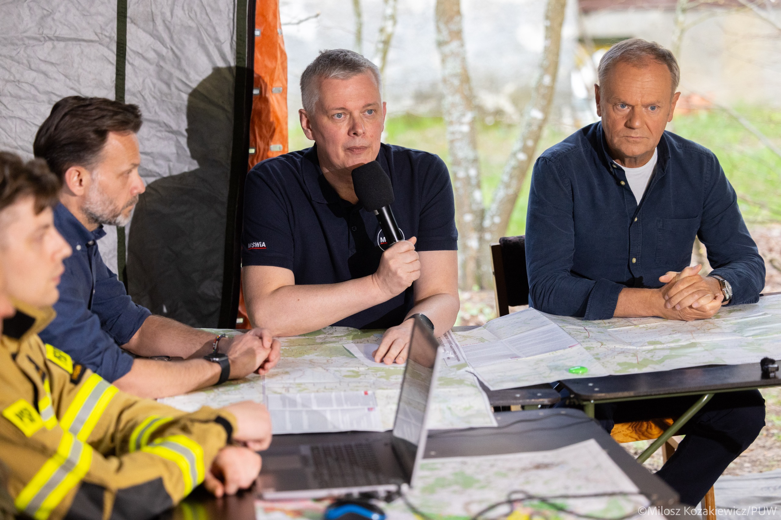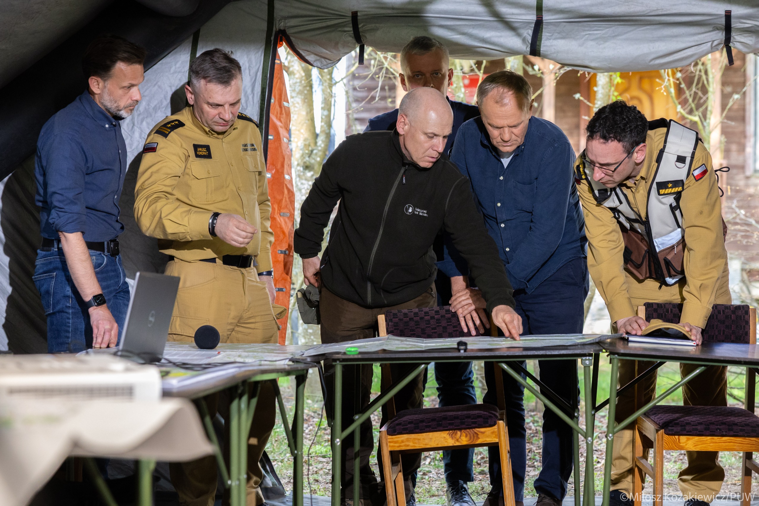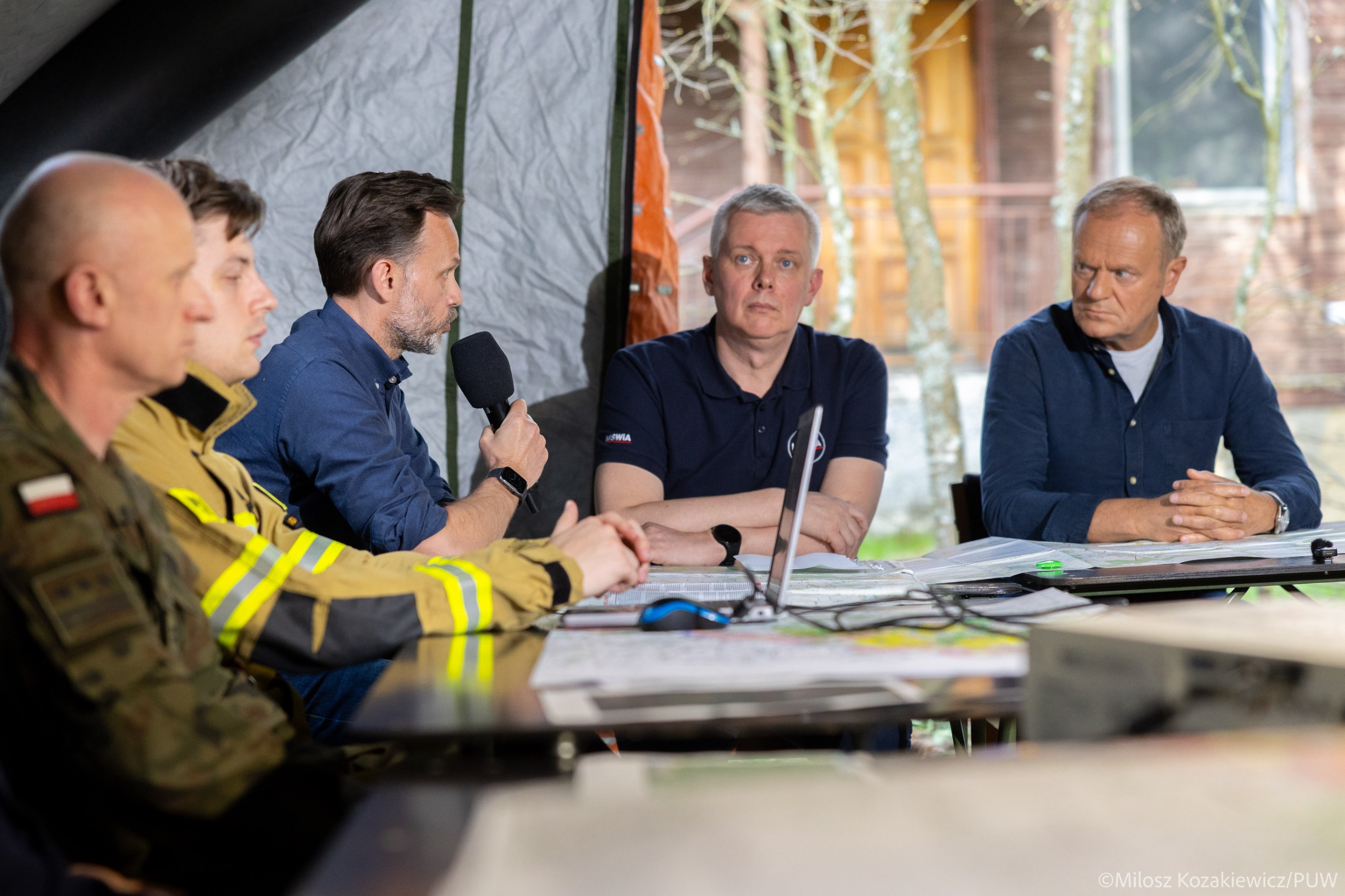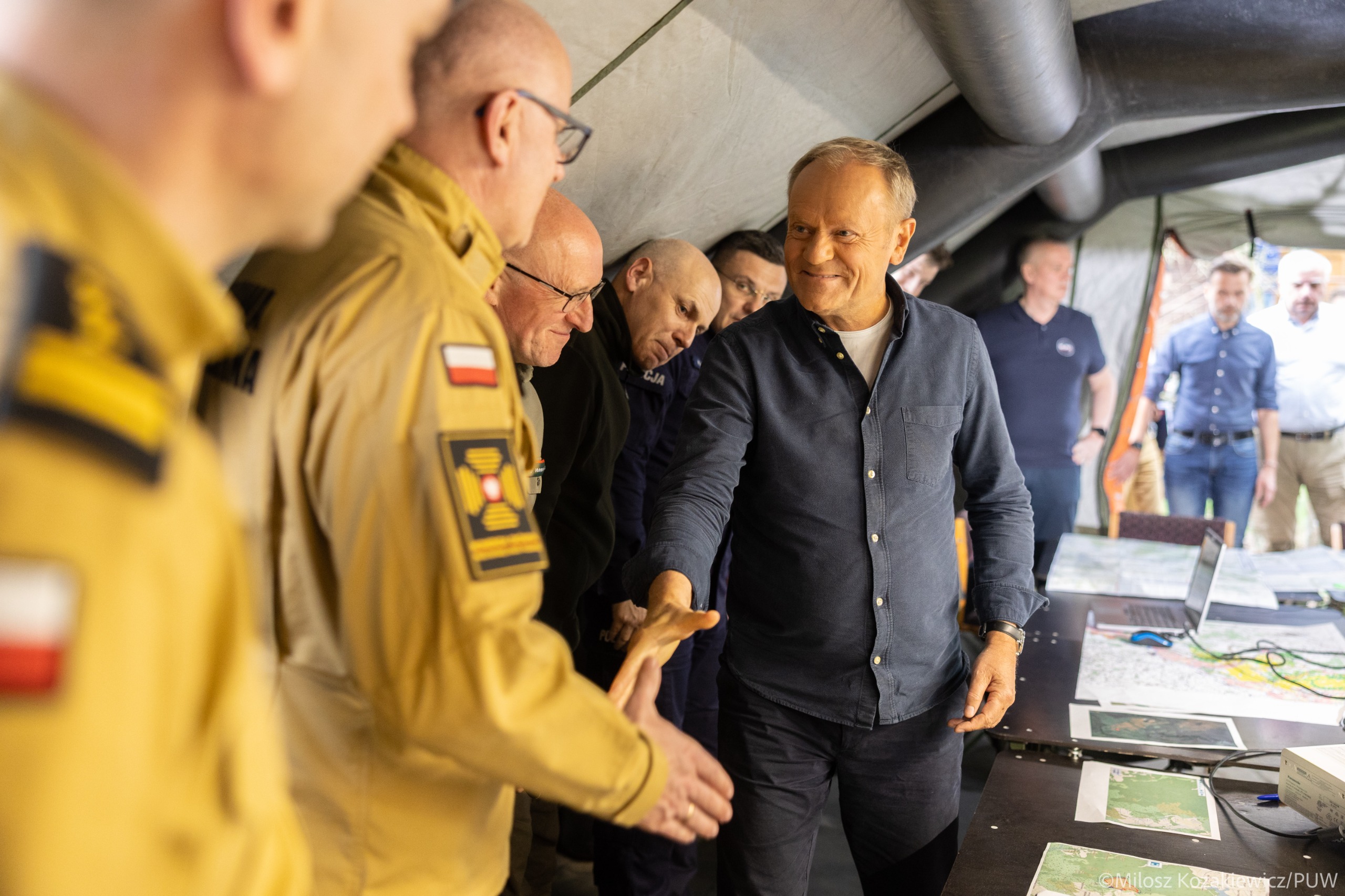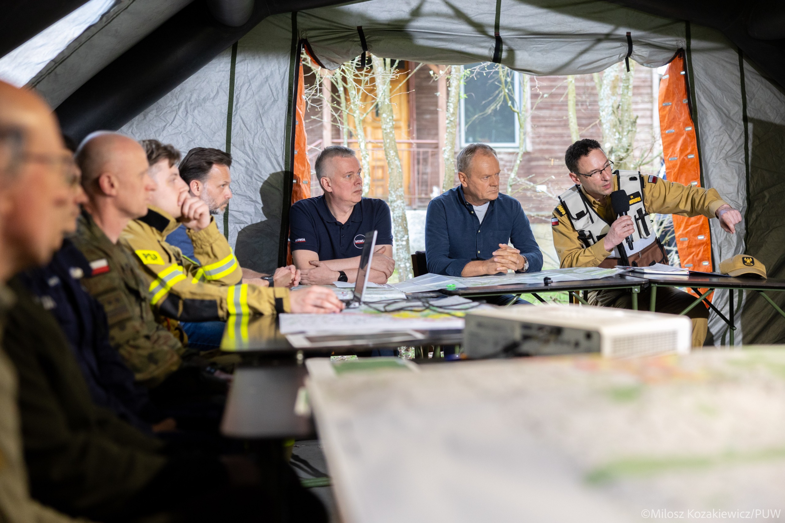 Premier Donald Tusk na zakończenie odprawy podziękował wszystkim służbom zaangażowanym w akcję gaśniczą: