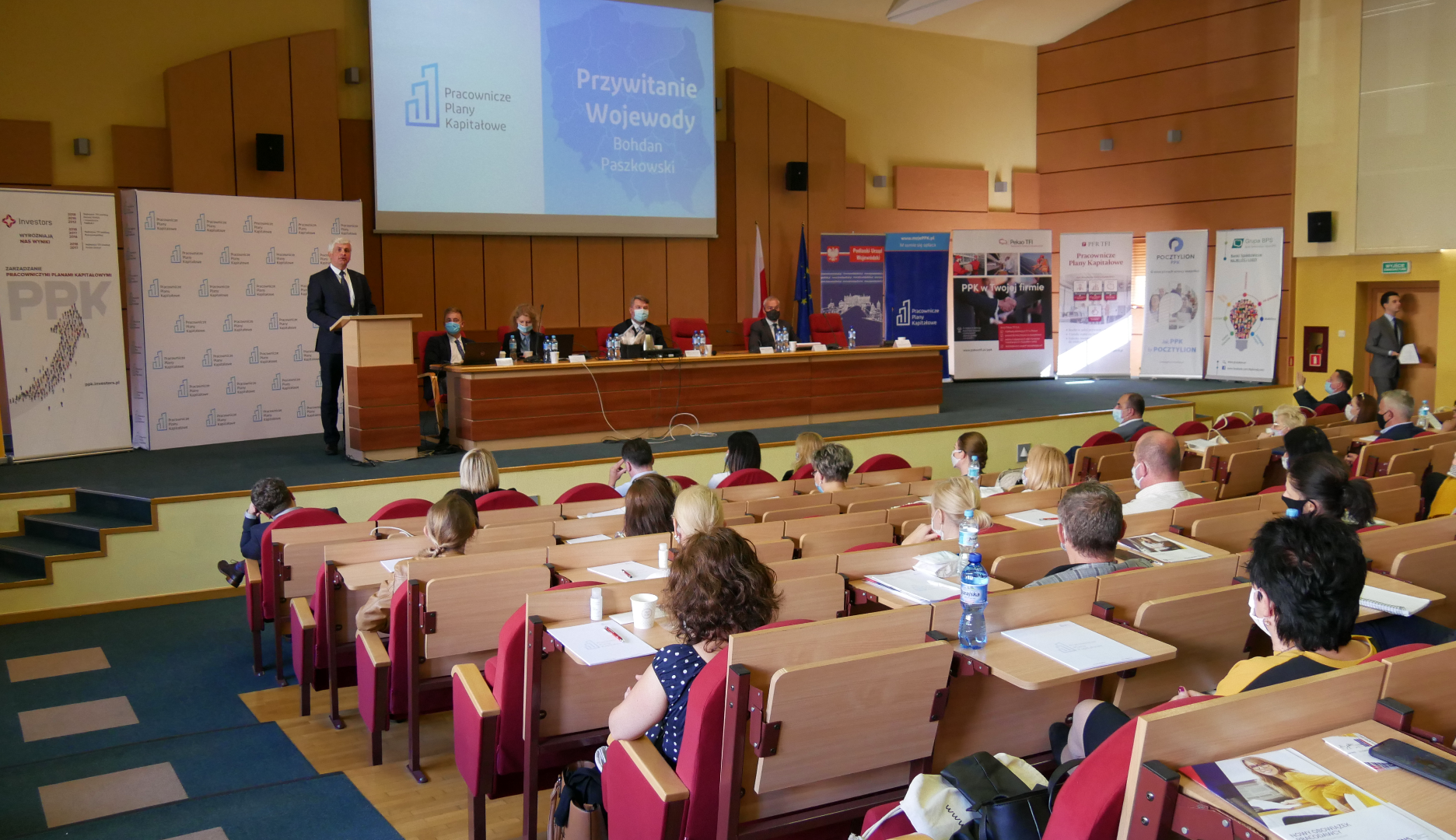 Pracownicze Plany Kapitałowe (PPK) to powszechny system oszczędzania dla pracowników realizowany przy współpracy z pracodawcami oraz państwem. O tym, jak je wdrożyć rozmawiali eksperci, pracodawcy i wszyscy zainteresowani w poniedziałek (14.09) w Podlaskim Urzędzie Wojewódzkim podczas konferencji "PPK - Blisko Ciebie" zorganizowanej przez Polski Fundusz Rozwoju.