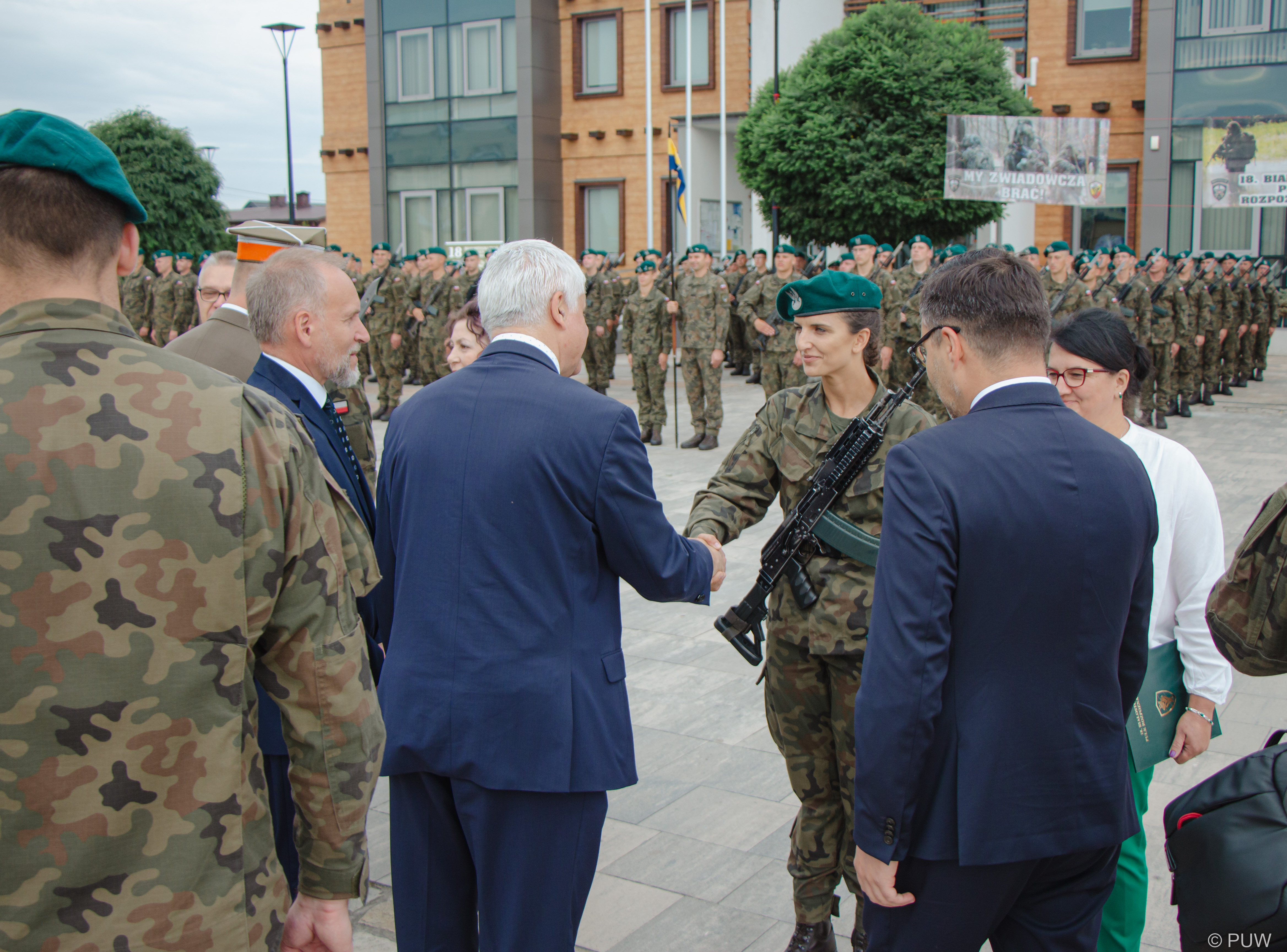 - Wybraliście służbę wojskową, która wymaga silnego charakteru i szczególnych predyspozycji - podkreślał podsekretarz stanu w Ministerstwie Obrony Narodowej Michał Wiśniewski dziękując ślubującym za to, że wstąpili do wojska.