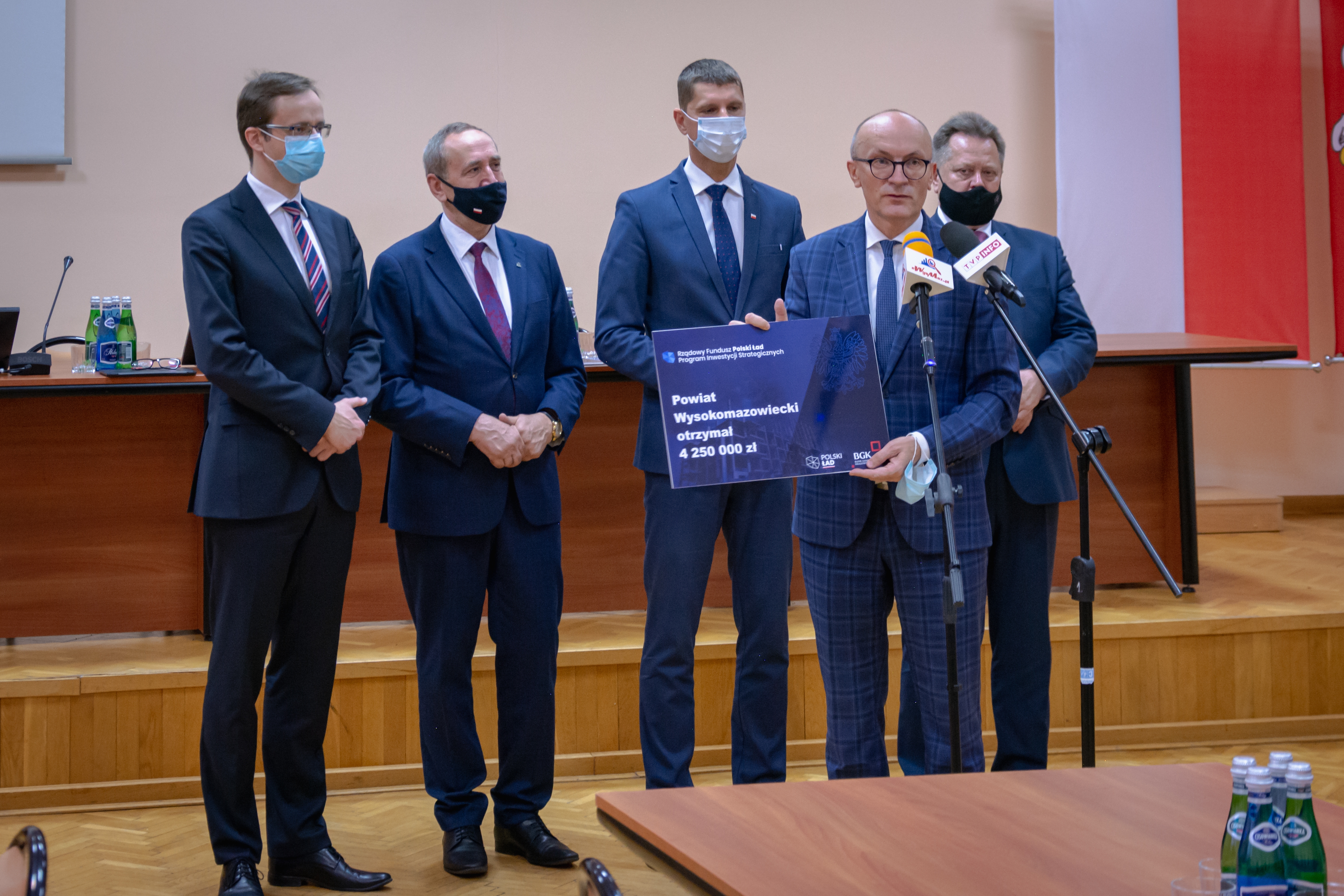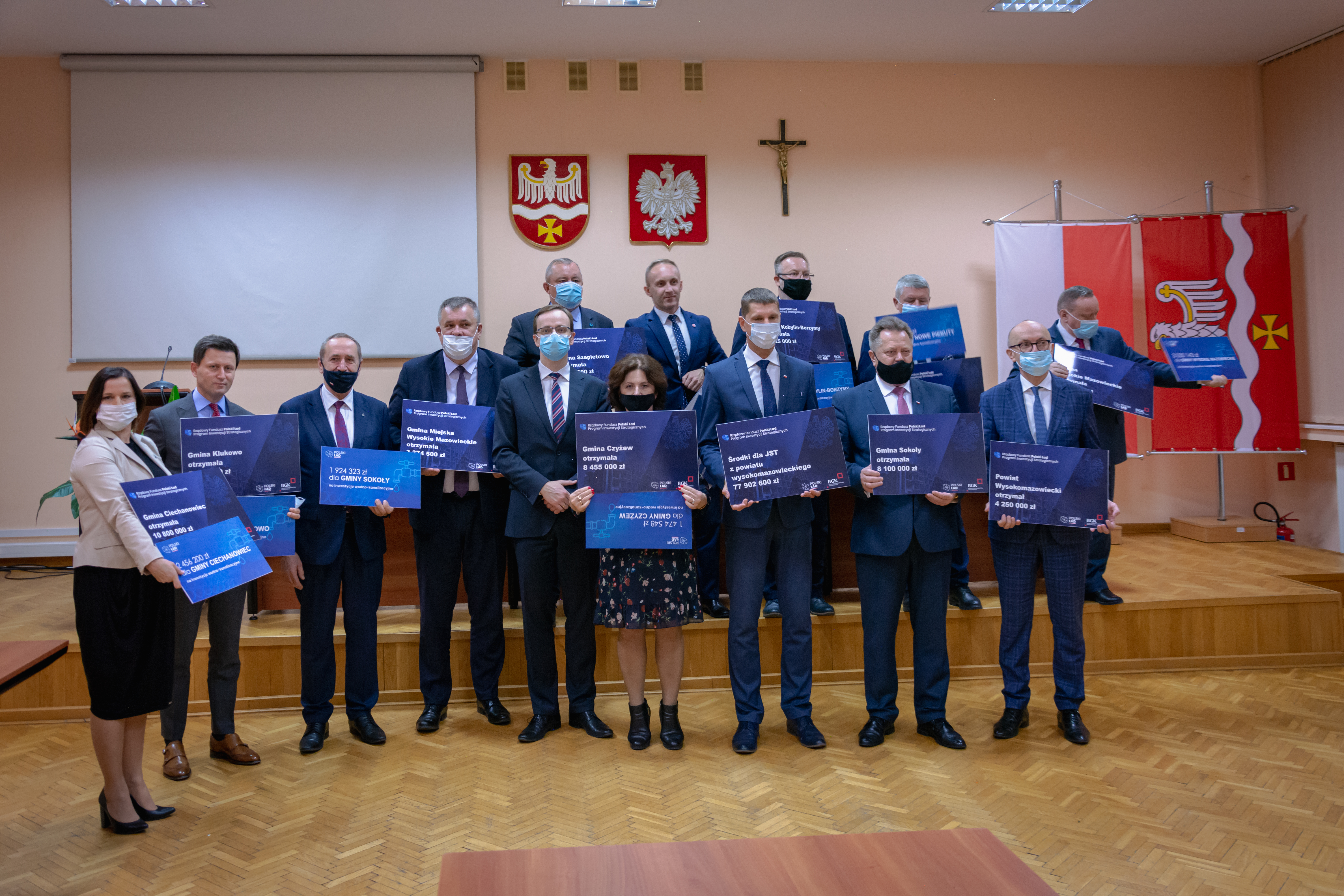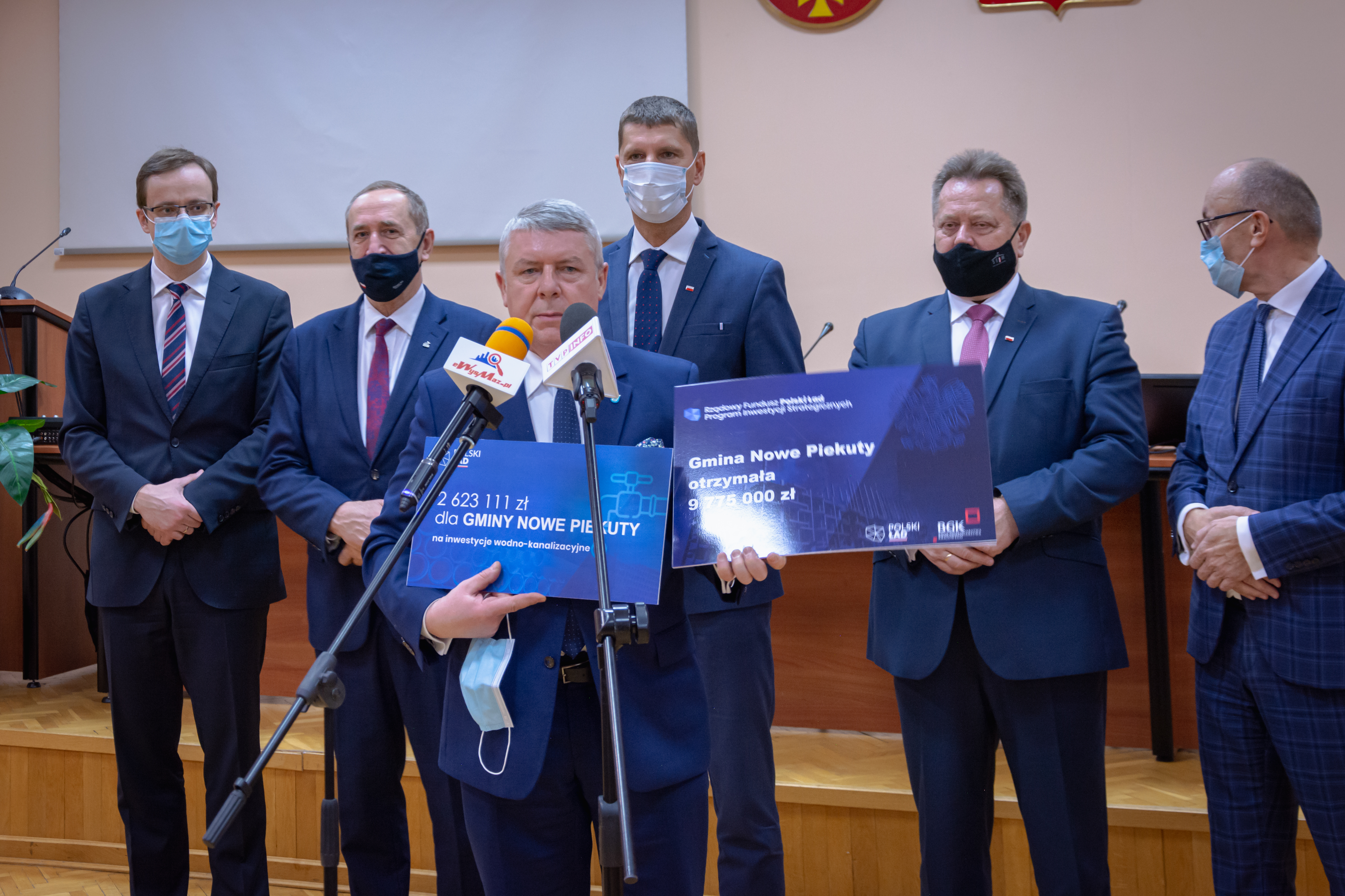 Podczas poniedziałkowego spotkania samorządowcy odebrali również symboliczne czeki z kwotami będącymi uzupełnieniem subwencji ogólnej na inwestycje wodno-kanalizacyjne. Do gmin z powiatu wysokomazowieckiego (z wyłączeniem miasta Wysokie Mazowieckie) trafi na ten cel ponad 19.5 mln zł.