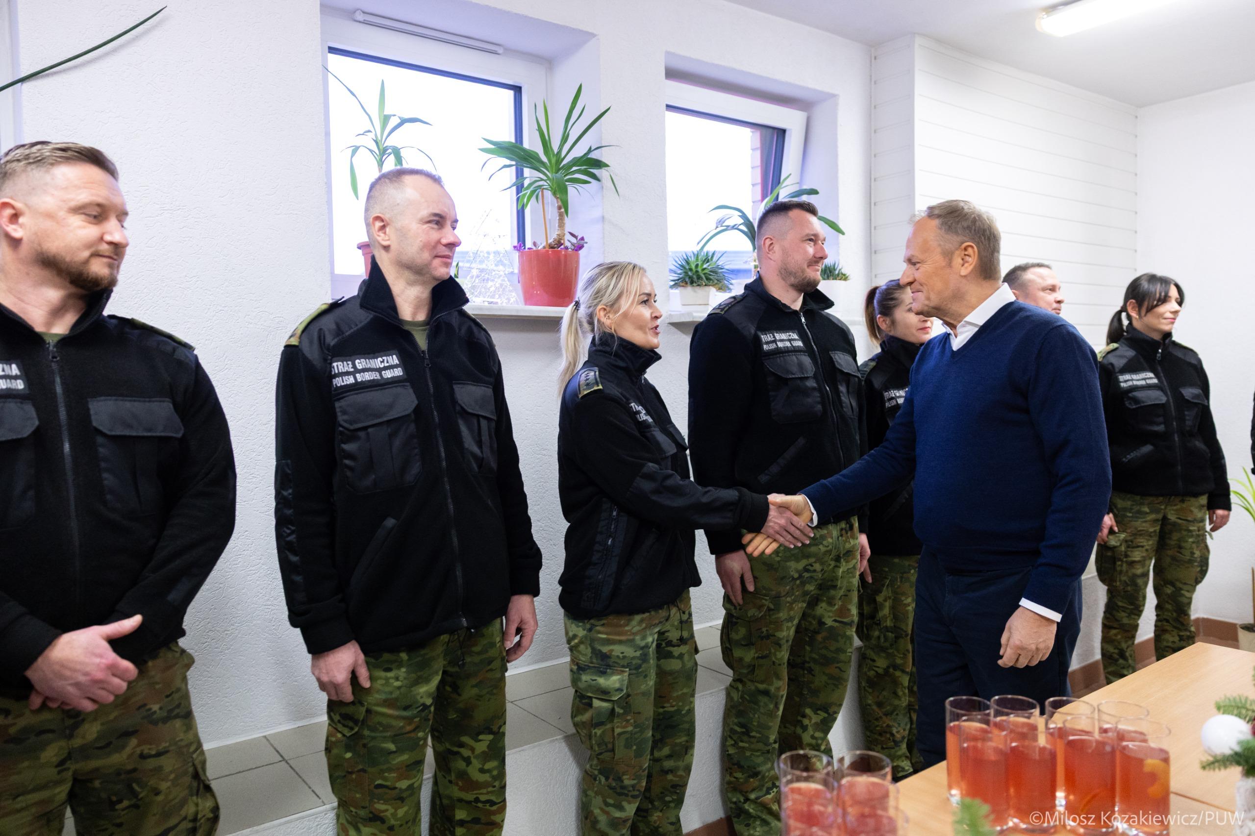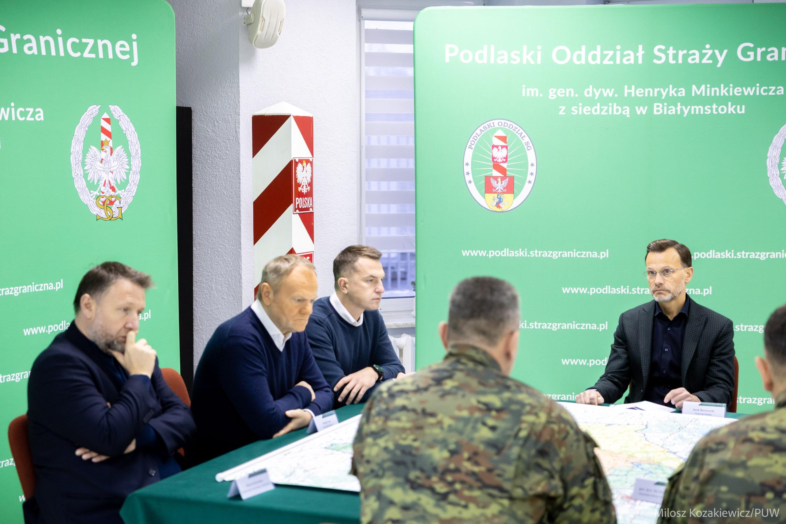 W czasie wizyty w Podlaskiem premier Donald Tusk wziął udział w odprawie z przedstawicielami służb w siedzibie placówki Straży Granicznej w Bobrownikach.