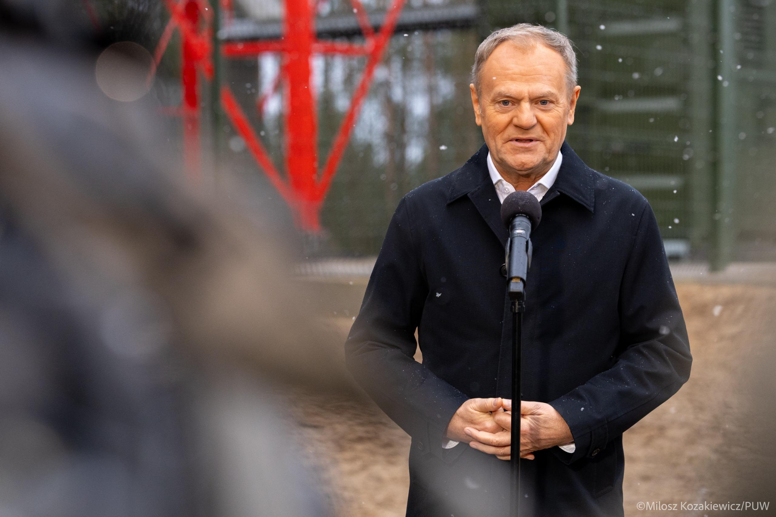 W czasie konferencji prasowej pod wieżą obserwacyjną w Ozieranach Donald Tusk dziękował za codzienną służbę żołnierzom i funkcjonariuszom służb oraz apelował o solidarność z tymi, którzy czuwają nad naszym bezpieczeństwem: