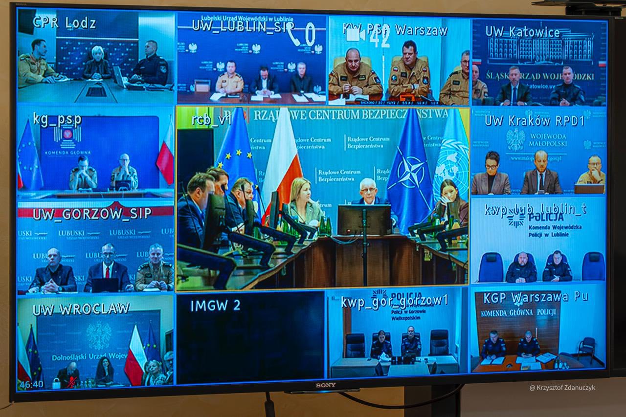W porannej odprawie zorganizowanej w Rządowym Centrum Bezpieczeństwa z kierownictwem Ministerstwa Spraw Wewnętrznych i Administracji oraz Ministerstwa Rodziny, Pracy i Polityki Społecznej wzięli udział wojewodowie i przedstawiciele służb odpowiedzialnych za bezpieczeństwo.
