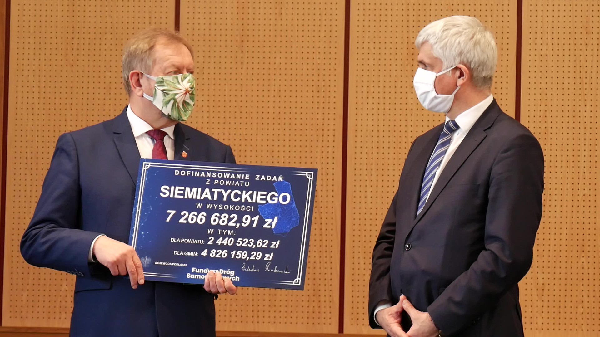 - powiat siemiatycki - 7 266 682,91 zł, w tym 4 826 159,29 zł na zadania gminne
