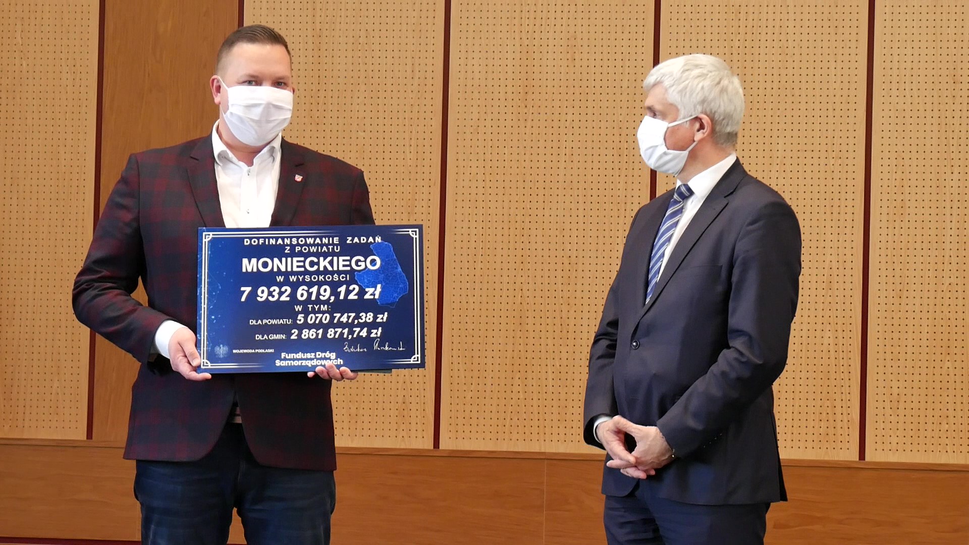 We wtorek (5.05) wojewoda podlaski Bohdan Paszkowski wręczył starostom i prezydentom symboliczne czeki na wykonanie inwestycji drogowych w ramach Funduszu Dróg Samorządowych. Dofinansowanych jest 266 zadań – to budowa, przebudowa lub remont ponad 350 km dróg w Podlaskiem.