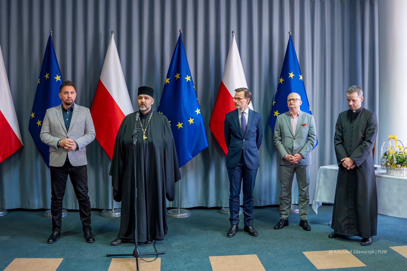 – Życzę, aby te świąteczne dni spędzili Państwo w gronie najbliższych, otoczeni rodzinnym ciepłem i miłością, z dala od trosk dnia codziennego. Niech wspomnienie Chrystusa, który pokonał śmierć, przyniesie Państwu nadzieję oraz da siłę do pracy każdego dnia. Niech stanie się ono zwiastunem pojednania i pokoju w naszych sercach, rodzinach, regionie i umiłowanej Ojczyźnie – mówił wojewoda do zgromadzonych.