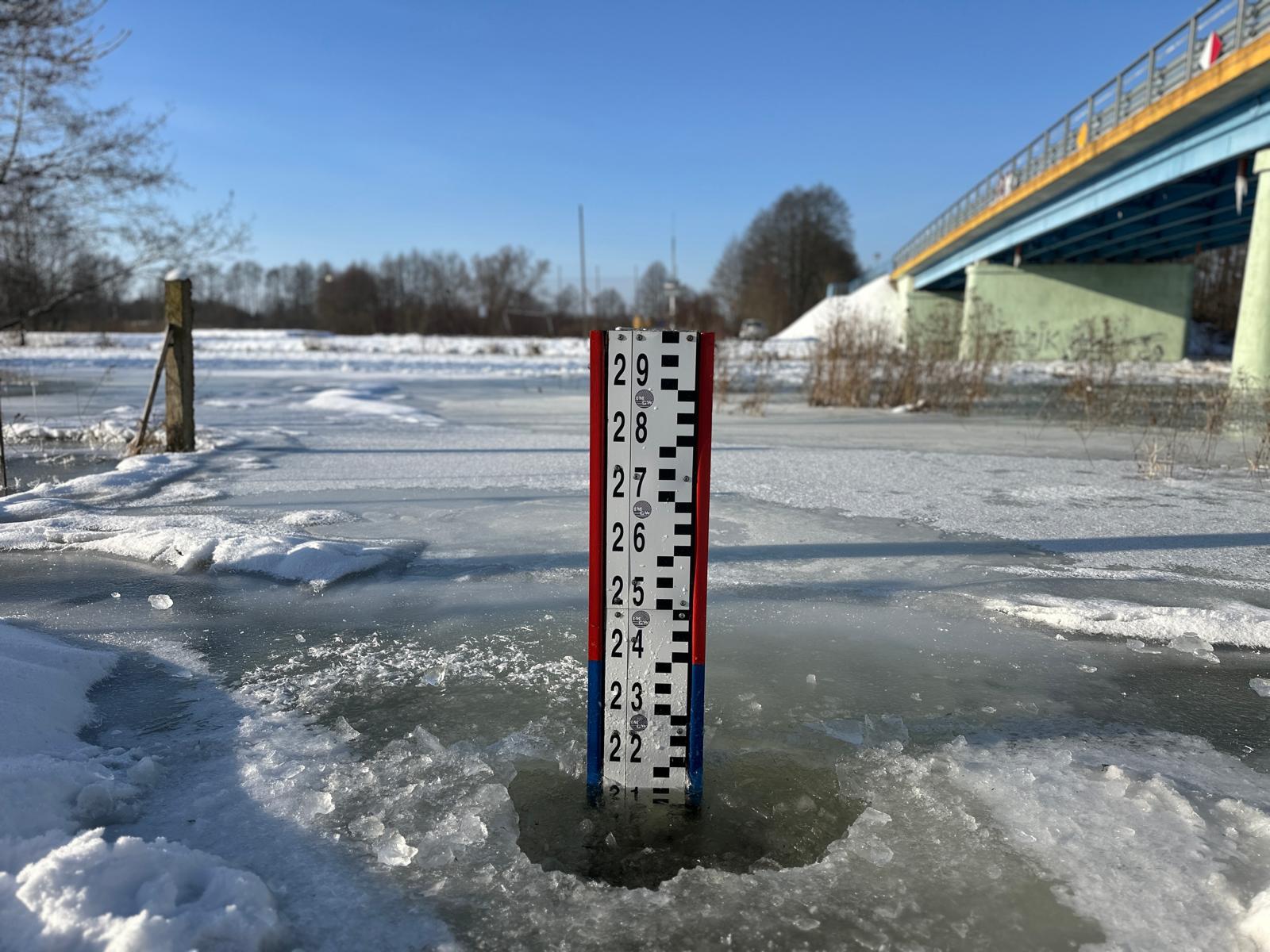 - utrudniony spływ wody z powodu pokrywy lodowej w rejonie mostu w miejscowości Ptaki,
