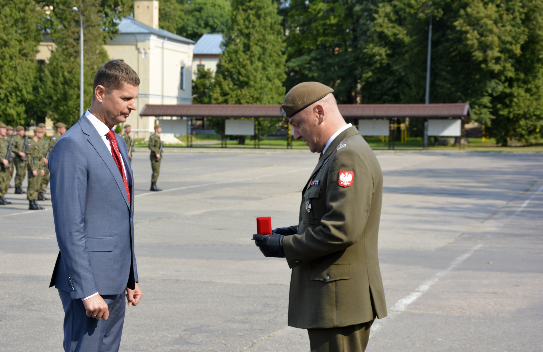 Podczas uroczystości płk Sławomir Kocanowski wręczył odznakę pamiątkową brygady ministrowi edukacji narodowej Dariuszowi Piontkowskiemu.