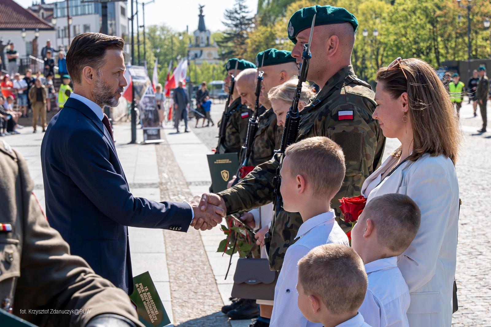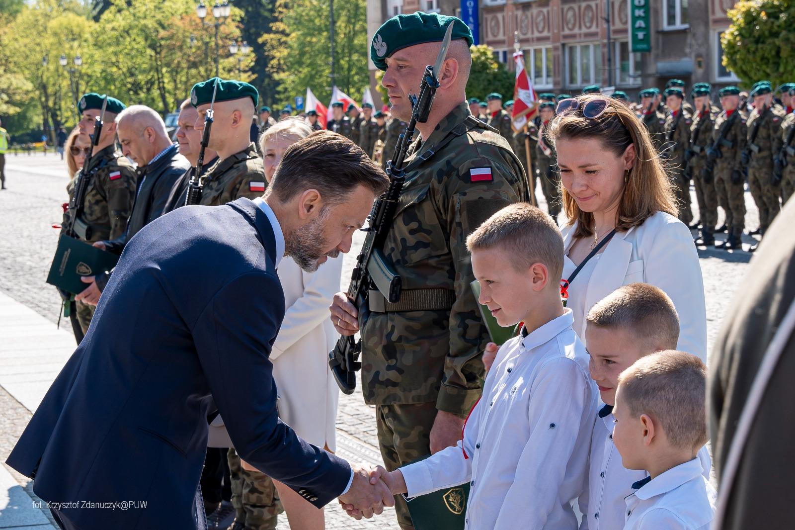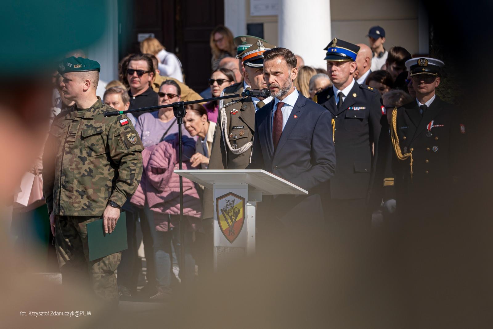 - Kieruję do naszych żołnierzy życzenia i podziękowania za wybór tej niełatwej, tak potrzebnej nam drogi. Wierzę, że przyszłość pozwoli naszej armii stale się rozwijać i modernizować. Życzę przy tym, by nigdy nie zabrakło zapału w codziennej realizacji misji polskiego żołnierza i podtrzymywania najcenniejszych polskich tradycji - mówił podczas uroczystości wojewoda Jacek Brzozowski.