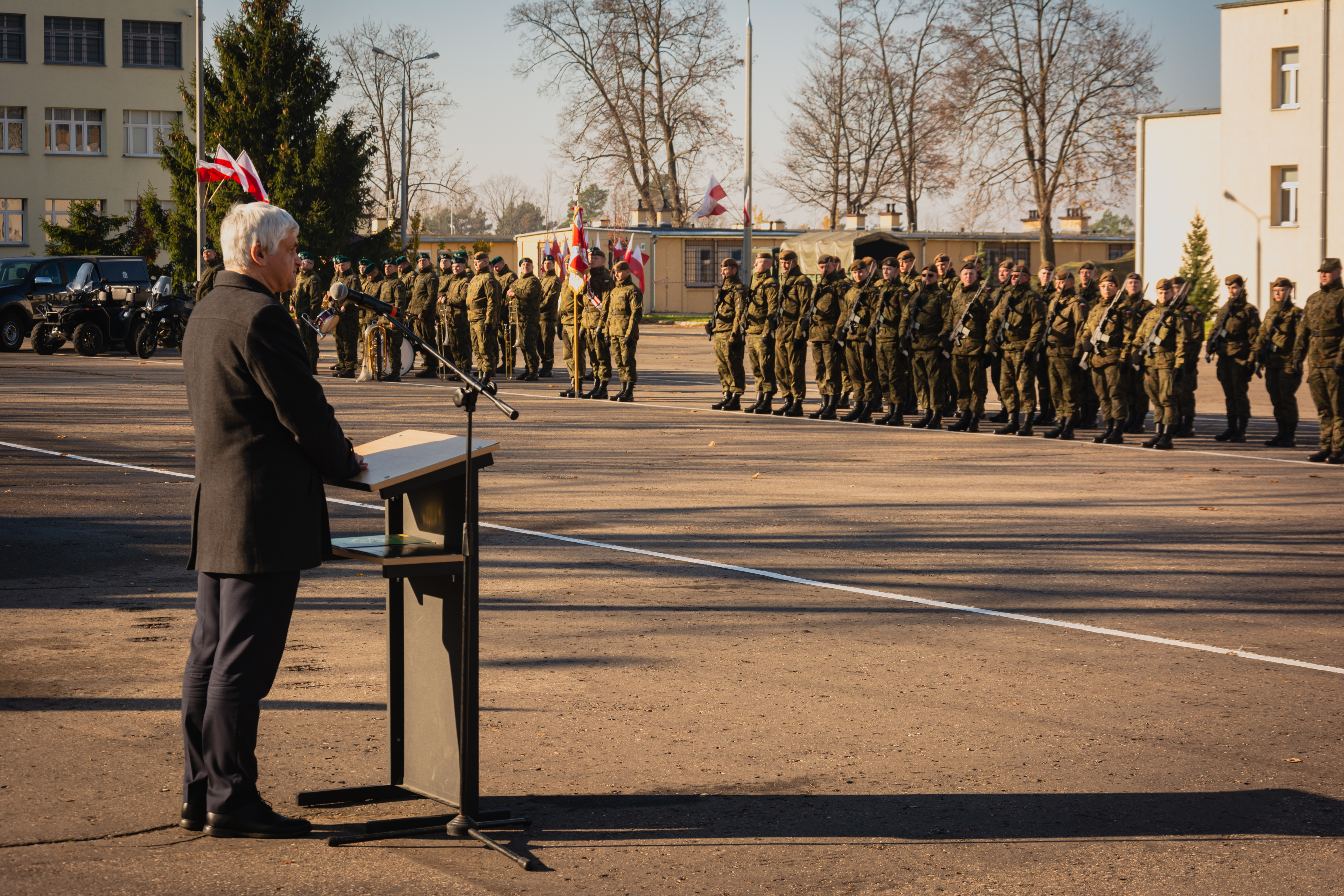 - Za chwilę wypowiecie słowa roty przysięgi wojskowej. Jeden z jej fragmentów ma dziś szczególnie aktualne znaczenie: "(...) bronić jej niepodległości i granic". Od prawie dwóch miesięcy monitorujemy sytuację w rejonie przygranicznym i wspieramy mieszkańców tego obszaru oraz funkcjonariuszy SG i żołnierzy wojsk operacyjnych. Jesteśmy przy tym bezpardonowo i niesprawiedliwie atakowani. Znamienne jest, że te ataki pochodzą z naszej strony granicy państwowej. Swoją postawą pokazujecie, że jesteście odporni na te działania - powiedział do składających przysięgę dowódca brygady płk Sławomir Kocanowski.