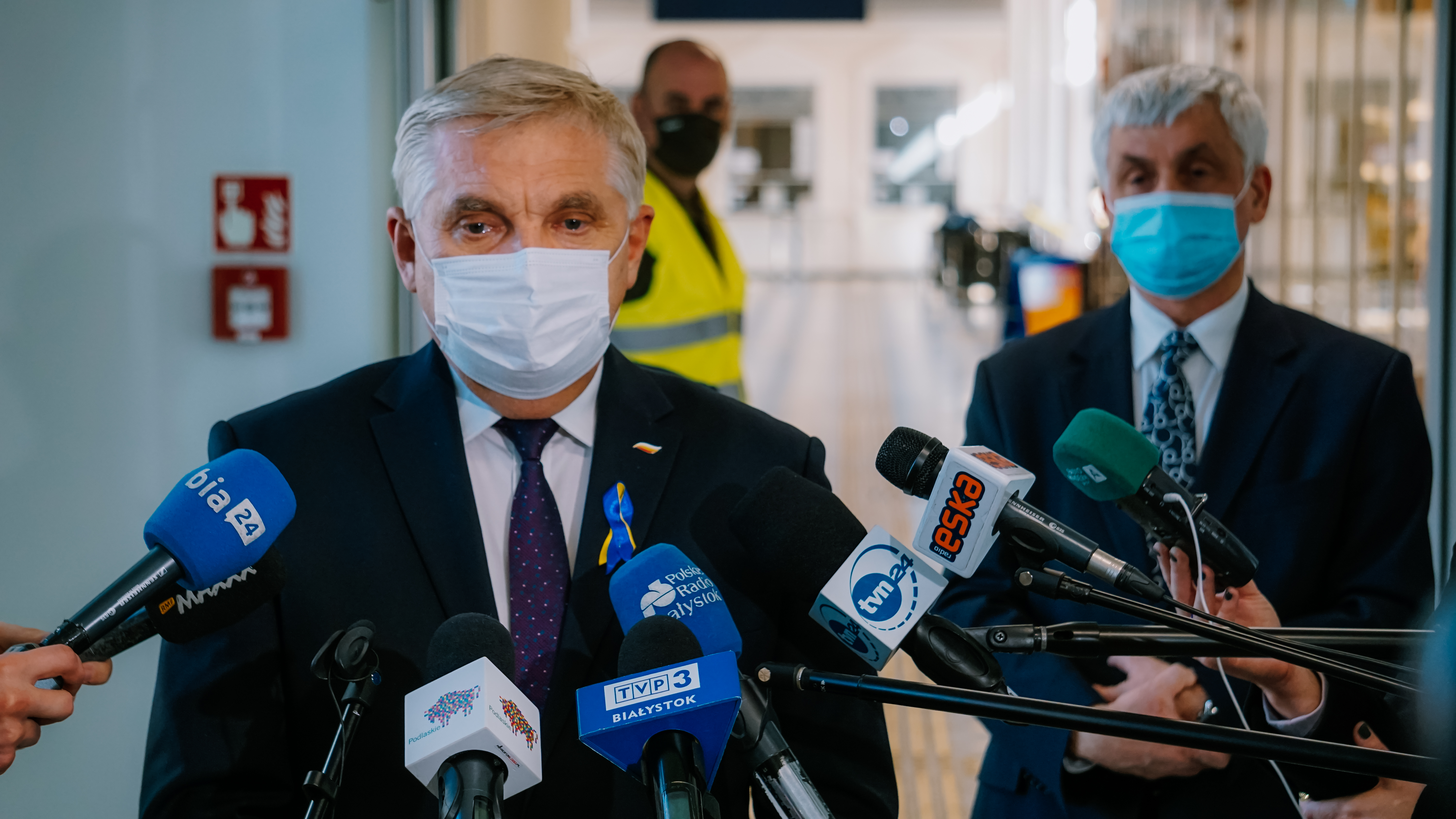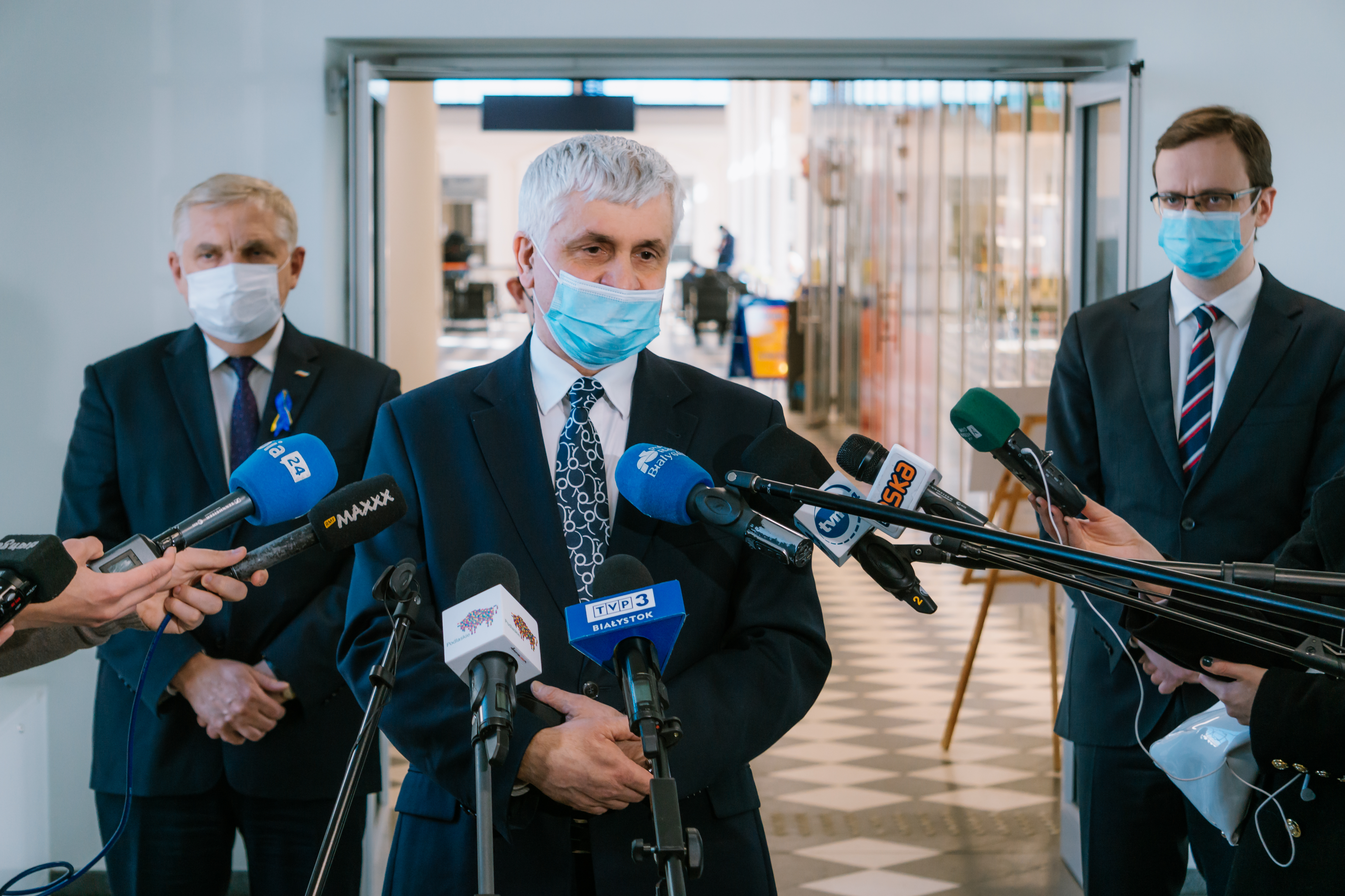 - Z niepokojem i wielkim przerażeniem obserwujemy to, co się dzieje na Ukrainie. Jednoczy nas pomoc narodowi ukraińskiemu - tym, którzy nie opuścili swojej ojczyzny, ale również dla rzesz uchodźców, którzy trafiają do naszego kraju - mówił w środę (2.03) na konferencji prasowej wojewoda podlaski Bohdan Paszkowski. Wraz z marszałkiem województwa podlaskiego oraz prezydentem Białegostoku poinformowali o działającym na dworcu PKP w Białymstoku całodobowym punkcie informacyjnym dla obywateli Ukrainy oraz przedstawili szczegóły pomocy organizowanej w regionie.