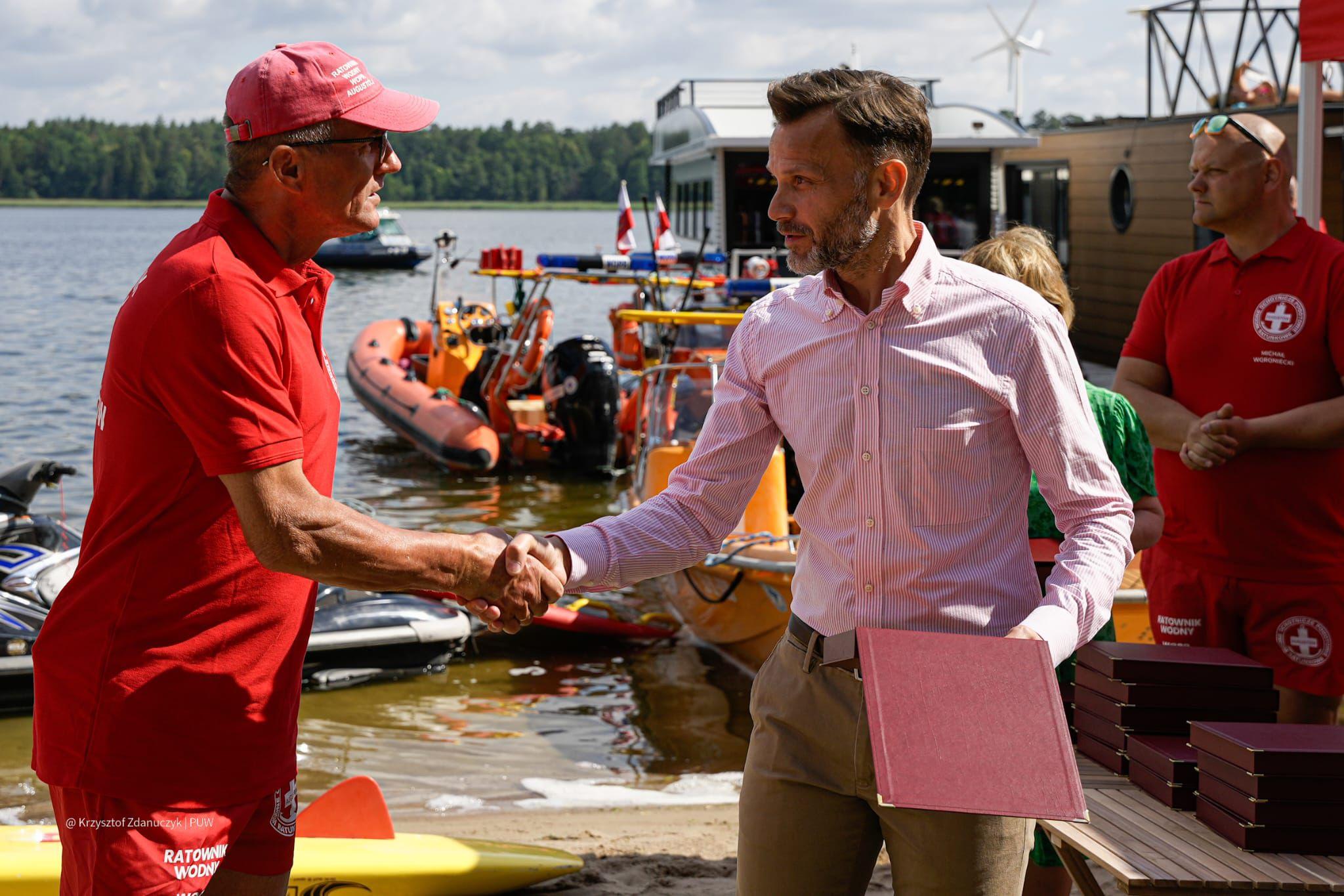 - To w Państwa ręce oddajemy zdrowie i życie. To dzięki Waszej ciężkiej, codziennej pracy możemy nad wodą czuć się bezpieczniej. Tylko w ubiegłym roku pomogliście Państwo ponad 400 osobom - mówił podczas uroczystości zorganizowanej przez Augustowski WOPR wojewoda podlaski.