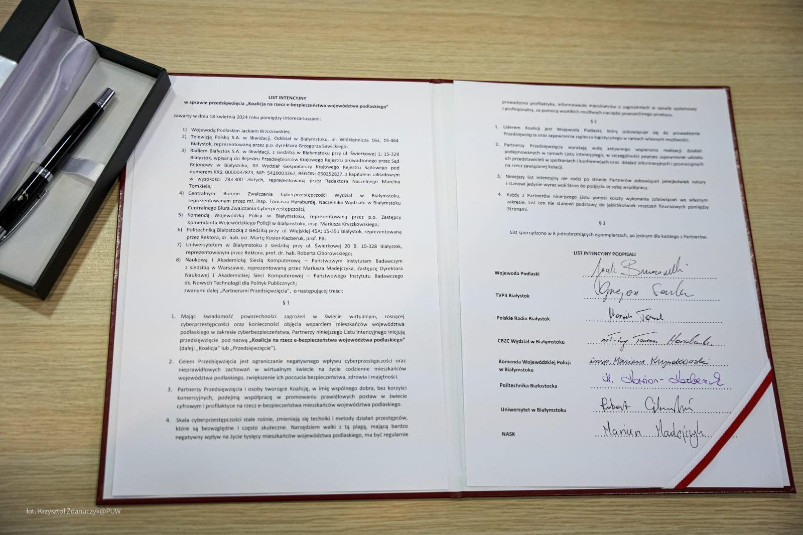 Osiem podmiotów, jedna koalicja i szereg działań nakierowanych na to, by mieszkańcy województwa podlaskiego czuli się w cyfrowym świecie bezpieczniej. Z inicjatywy wojewody Jacka Brzozowskiego powstała Koalicja na rzecz e-bezpieczeństwa. W czwartek (18.04) sygnatariusze, w obecności wicepremiera, ministra cyfryzacji Krzysztofa Gawkowskiego, podpisali list intencyjny w tej sprawie. Pierwszą inicjatywą była konferencja skierowana do dyrektorów szkół i nauczycieli „Bezpieczna szkoła w cyfrowym świecie”, która odbyła się w Podlaskim Urzędzie Wojewódzkim.
