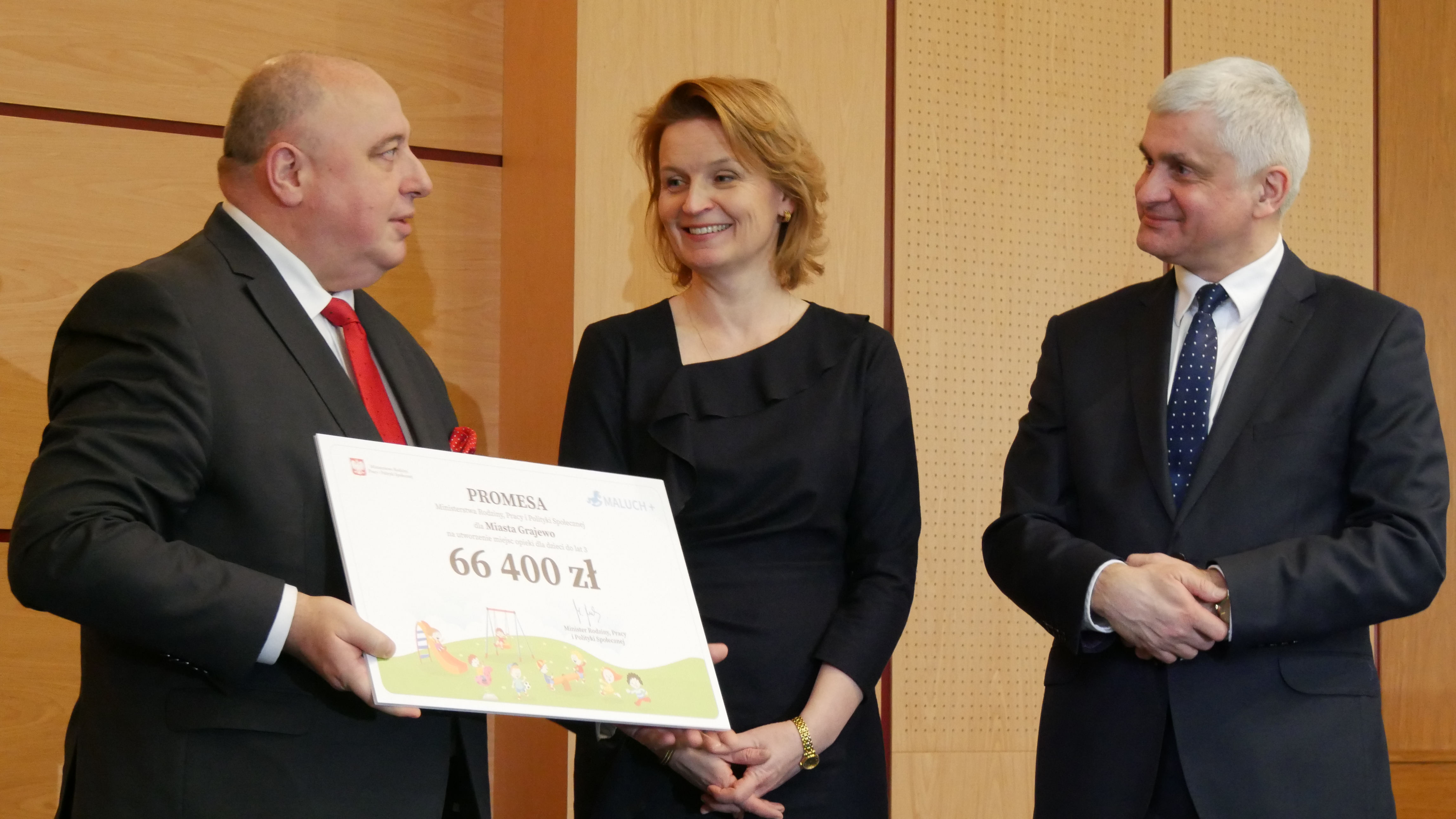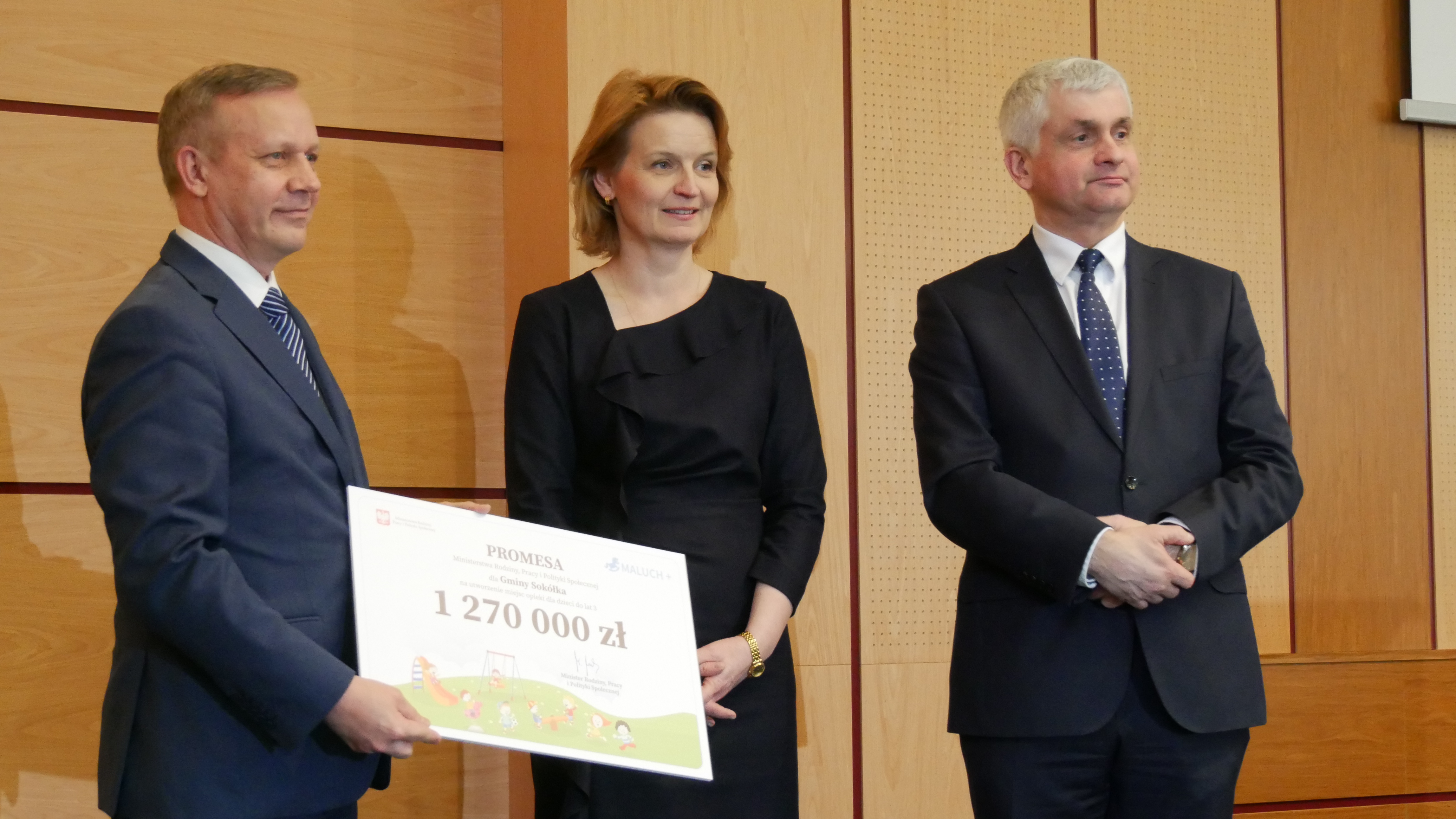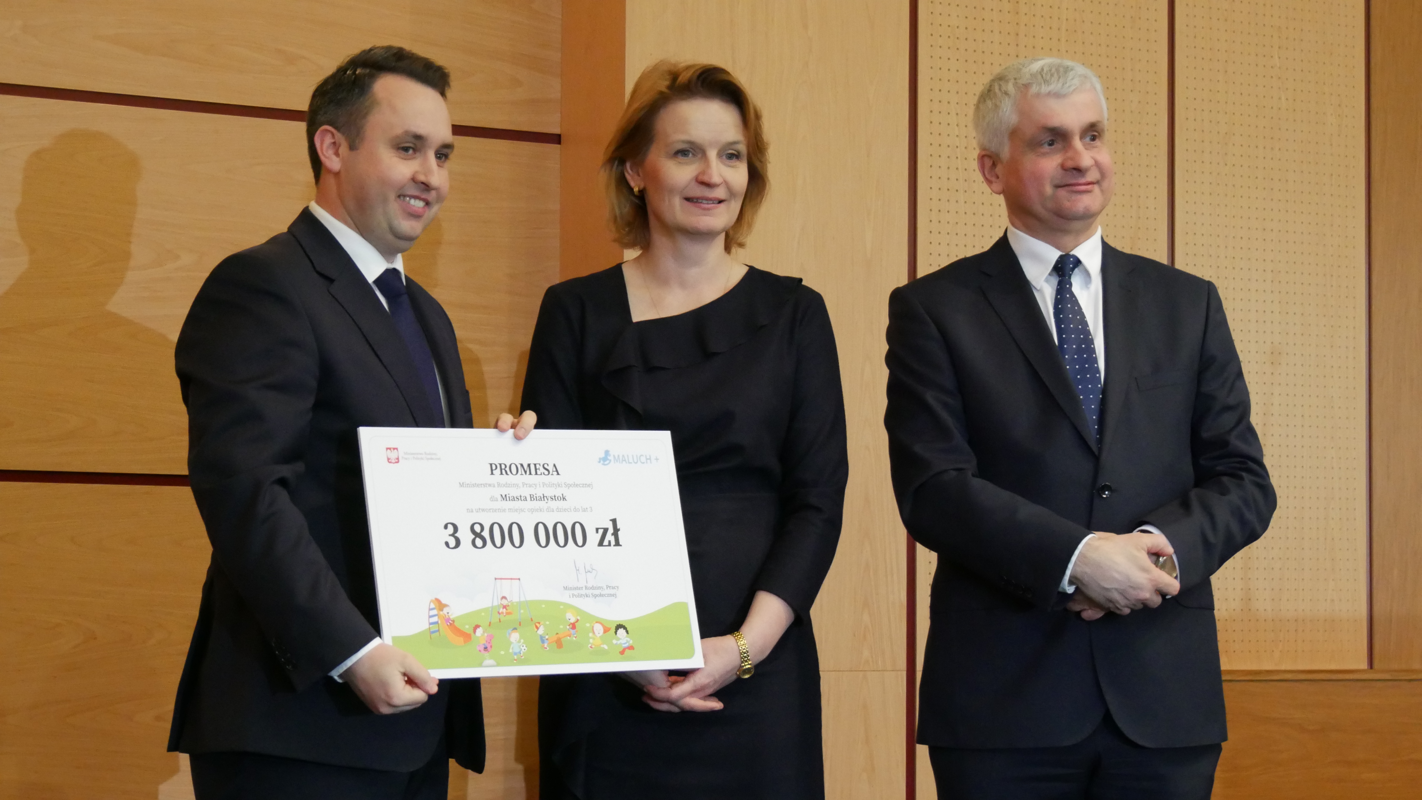 Wraz z wiceminister rodziny, pracy i polityki społecznej przekazał symboliczne czeki gminie Tykocin (627 tys. zł), gminie Perlejewo (231 tys. zł), miastu Grajewo (66 400 zł), gminie Sokółka (1 mln 270 tys. zł), miastu Białystok (3 mln 800 tys. zł) oraz miastu Łomża (636 tys. 600 zł). Za te pieniądze powstanie 360 nowych miejsc opieki nad maluchami w Podlaskiem, trzy instytucje zaczną działać w gminach, gdzie do tej pory nie było żłobka lub klubu samorządowego.