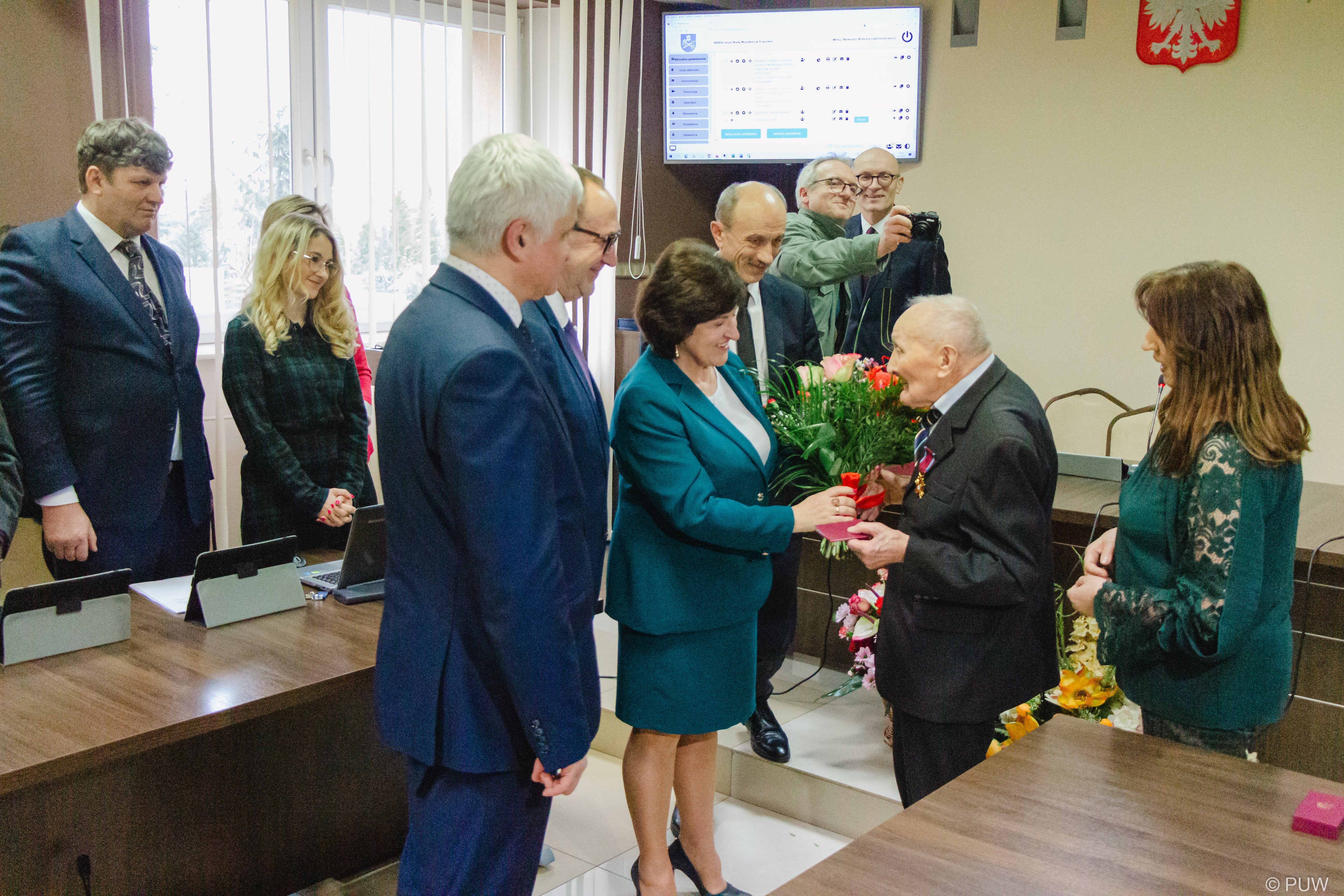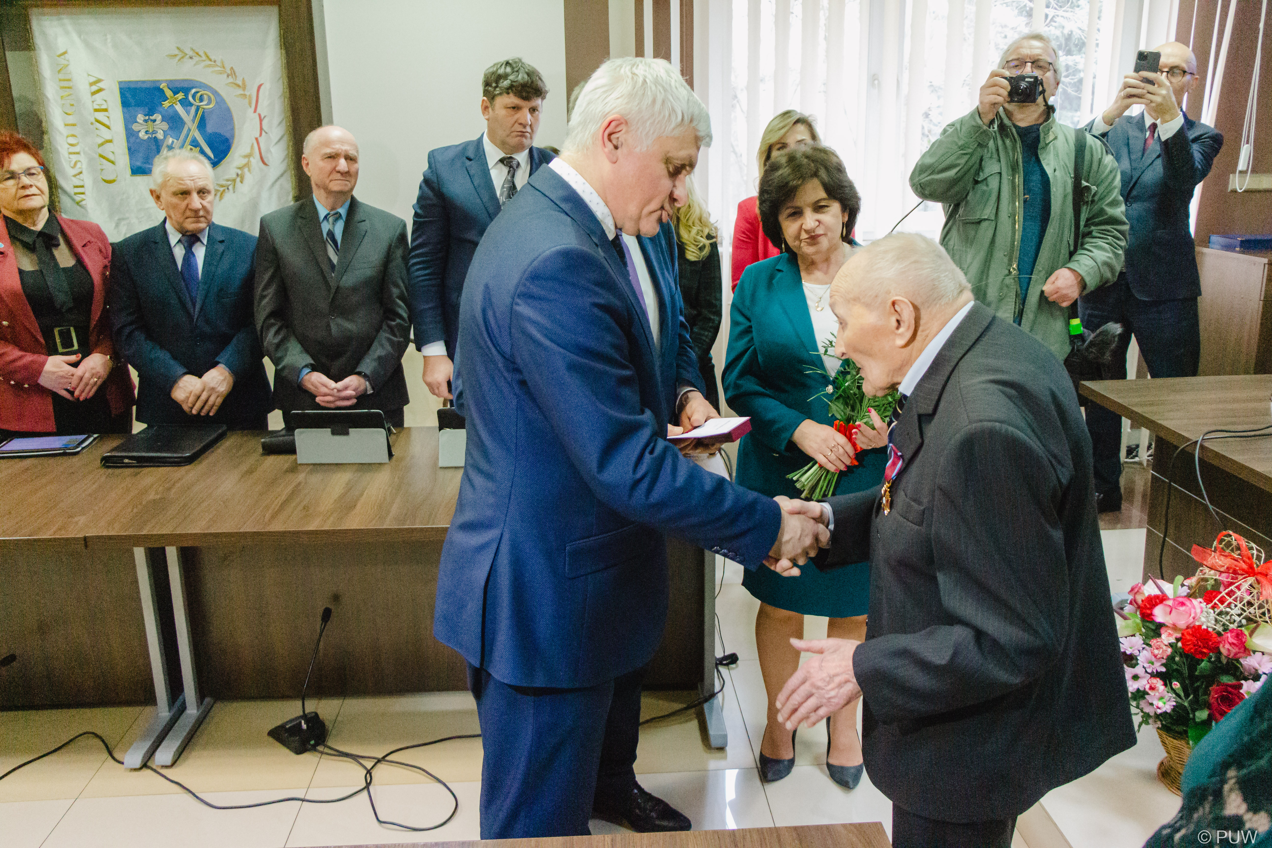 Wojewoda podlaski Bohdan Paszkowski na zaproszenie burmistrz Czyżewa w poniedziałek (13.02) wziął udział w sesji Rady Miejskiej, podczas której wręczył najstarszemu mieszkańcowi Czyżewa - stuletniemu Eugeniuszowi Białemu Złoty Krzyż Zasługi. Wizyta wojewody była również okazją do oficjalnego oddania do użytku ul. Apoznańskich, której budowa była dofinansowana z rządowych środków.