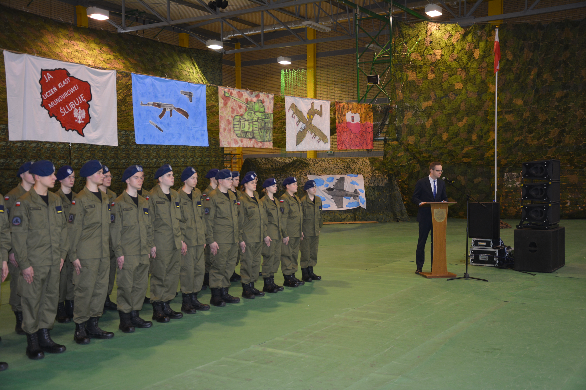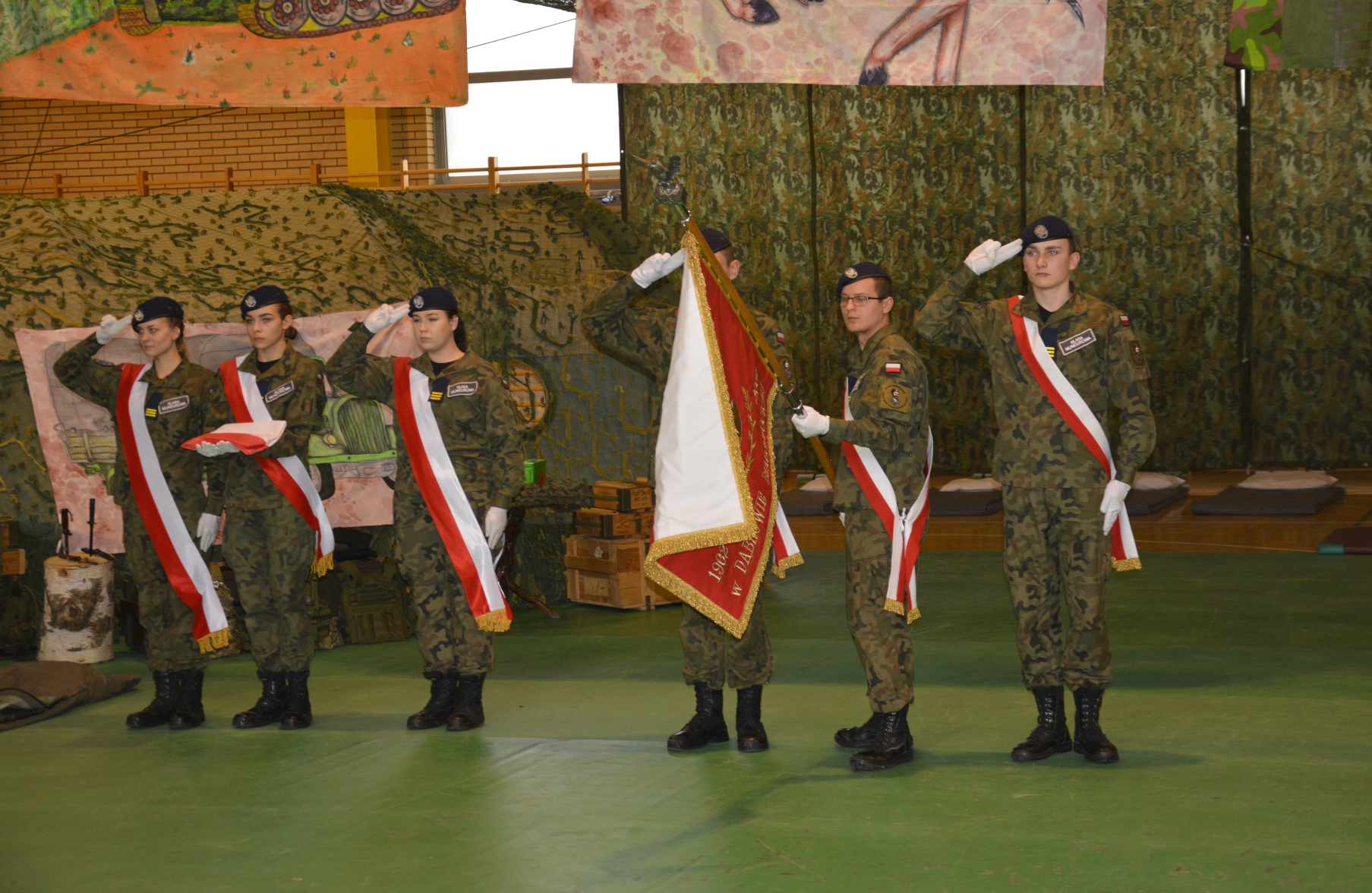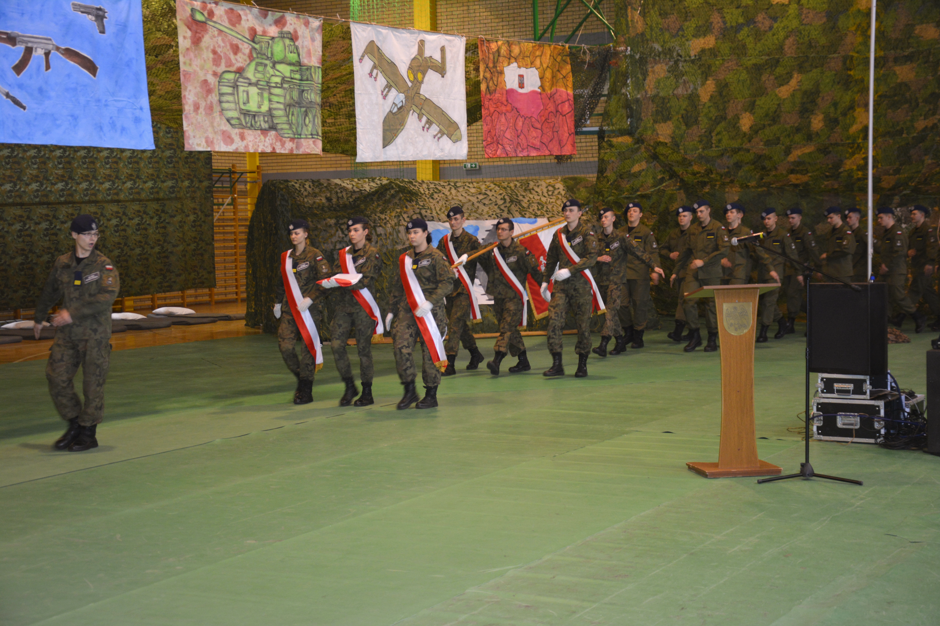Uczestnicy uroczystości mogli zobaczyć musztrę paradną i pokaz walk w wykonaniu uczniów, a także wysłuchać żołnierskich piosenek.