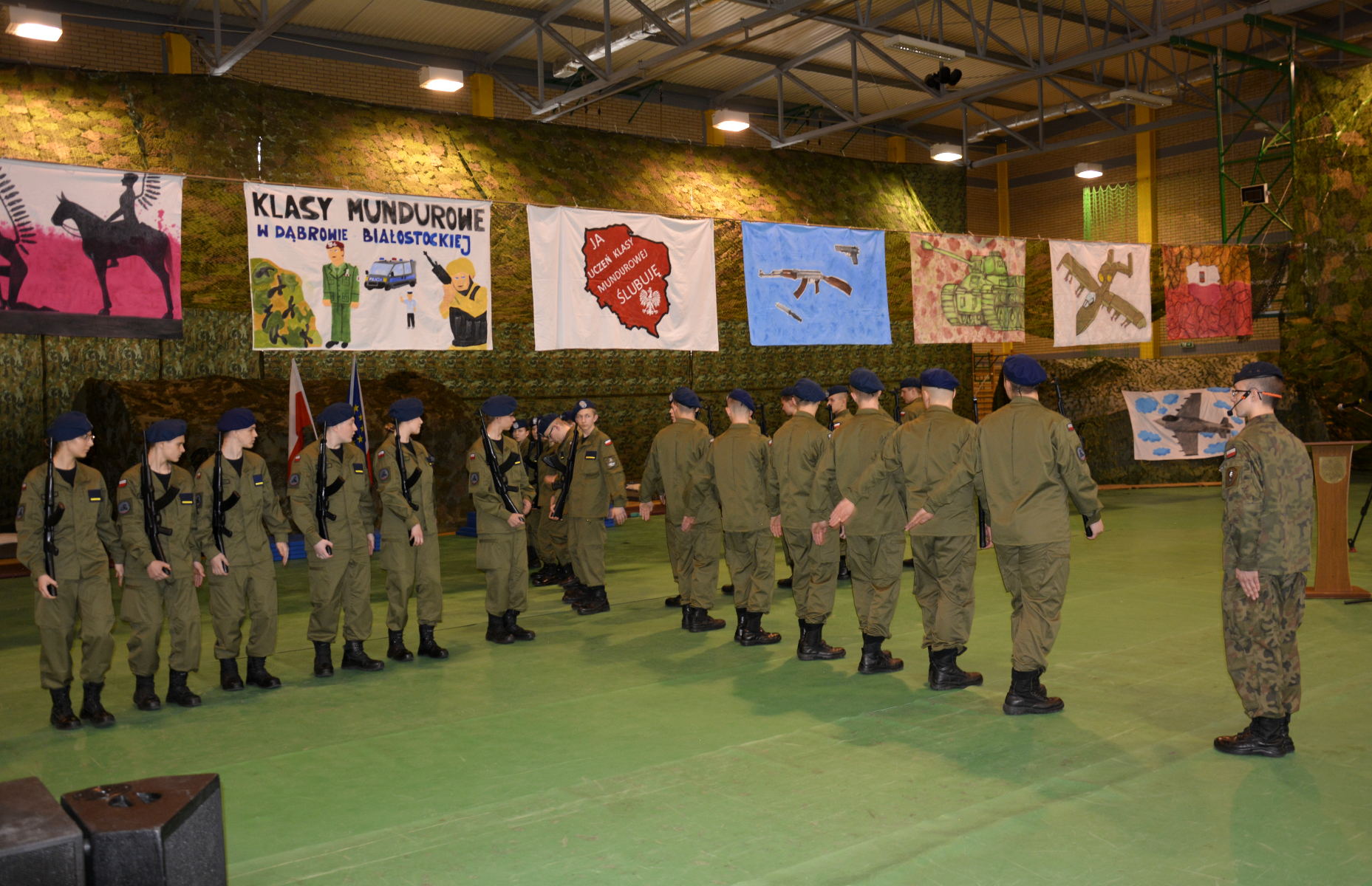 Gratulacje uczniom oddziału przygotowania wojskowego, którzy złożyli ślubowanie, przekazali m.in. dowódca 18. Pułku Rozpoznawczego płk. Paweł Lachowski, zastępca komendanta placówki SG w Lipsku kpt Zdzisław Maksimowicz oraz burmistrz Dąbrowy Białostockiej Artur Gajlewicz.