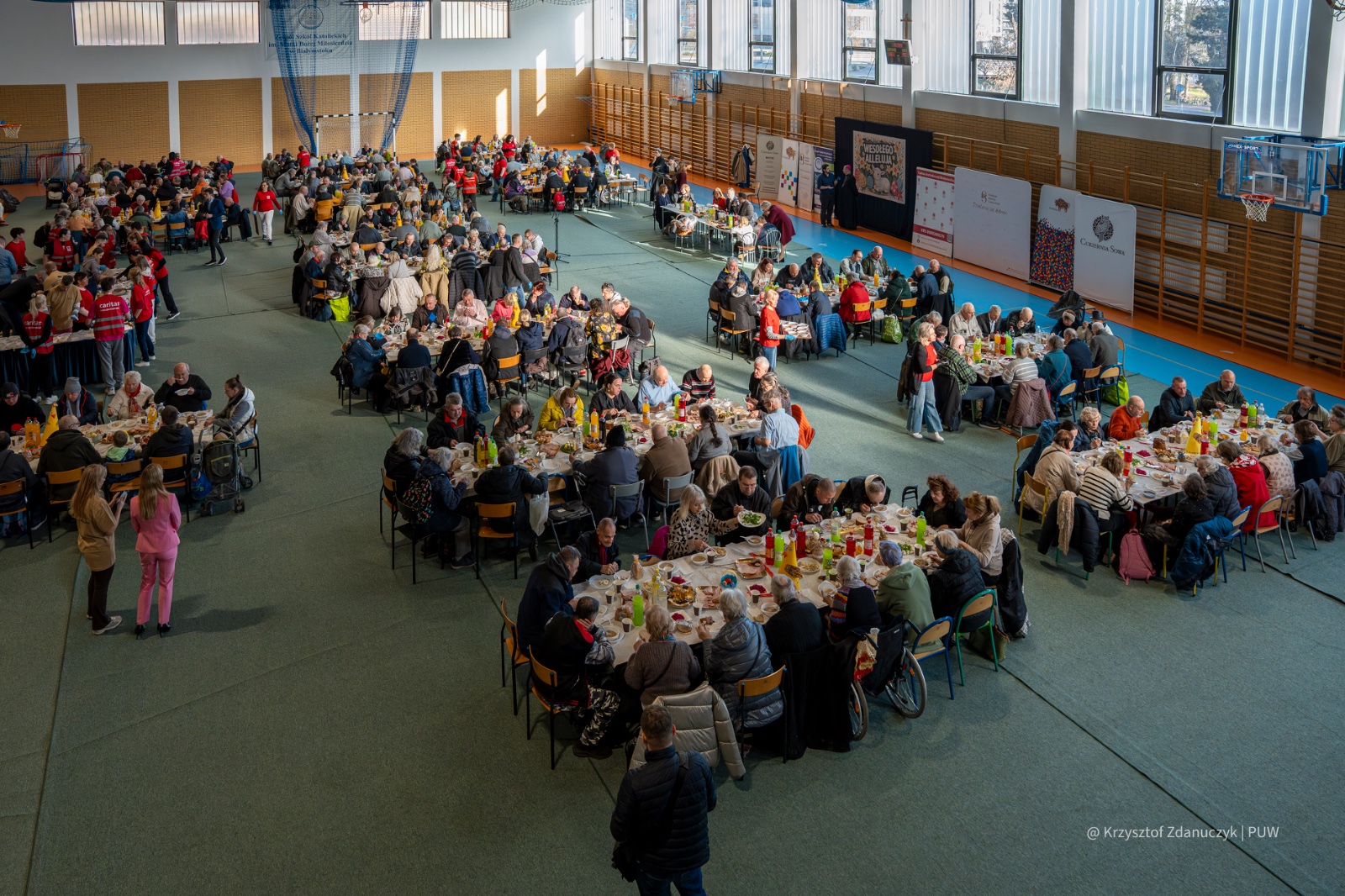 Do wspólnego stołu – symbolu wspólnoty i bliskości - zaprosili Caritas Archidiecezji Białostockiej, Fundacja Rodziny Czarneckich oraz Zespół Szkół Katolickich im. Matki Bożej Miłosierdzia w Białymstoku, którzy zorganizowali śniadanie przy wsparciu władz Białegostoku i Województwa Podlaskiego. Na stołach znalazły się tradycyjne świąteczne potrawy takie jak żurek, sałatka jarzynowa, jajka w majonezie czy świąteczne ciasta. Dodatkowo potrzebujący otrzymali paczki żywnościowe z produktami o długim terminie przydatności do spożycia.