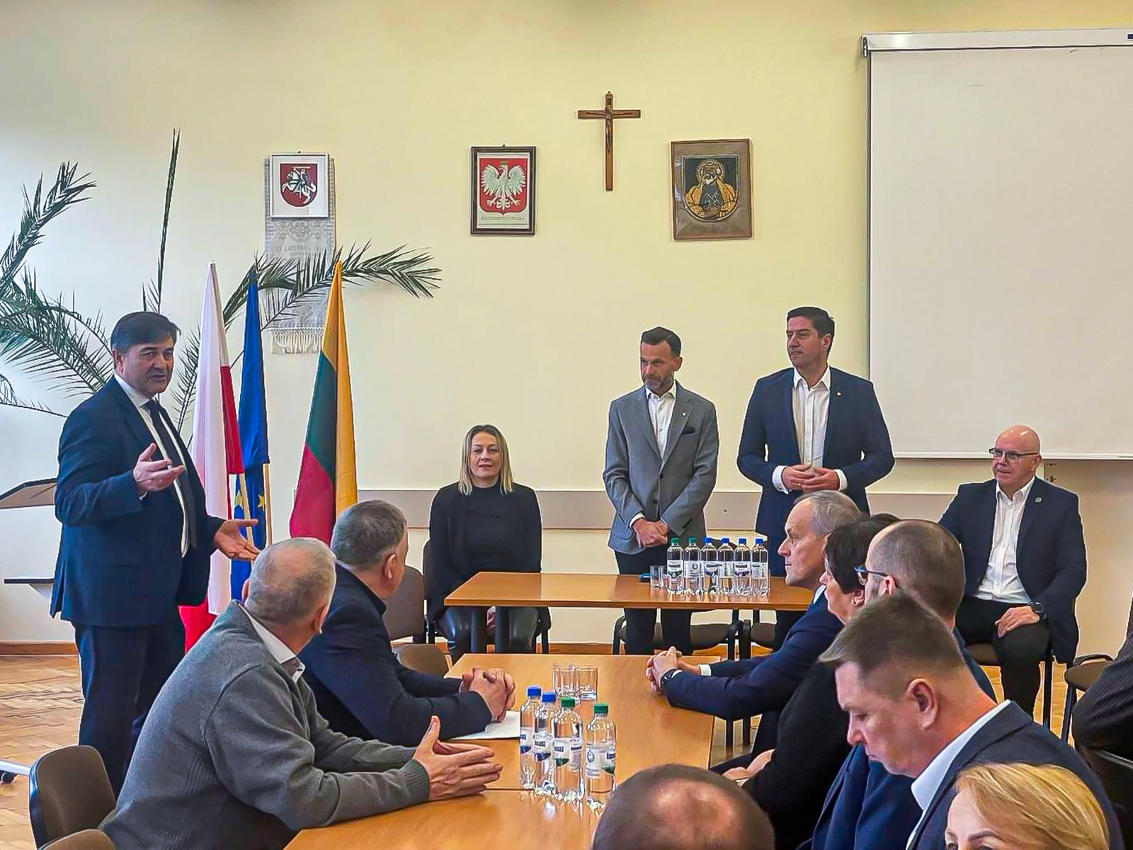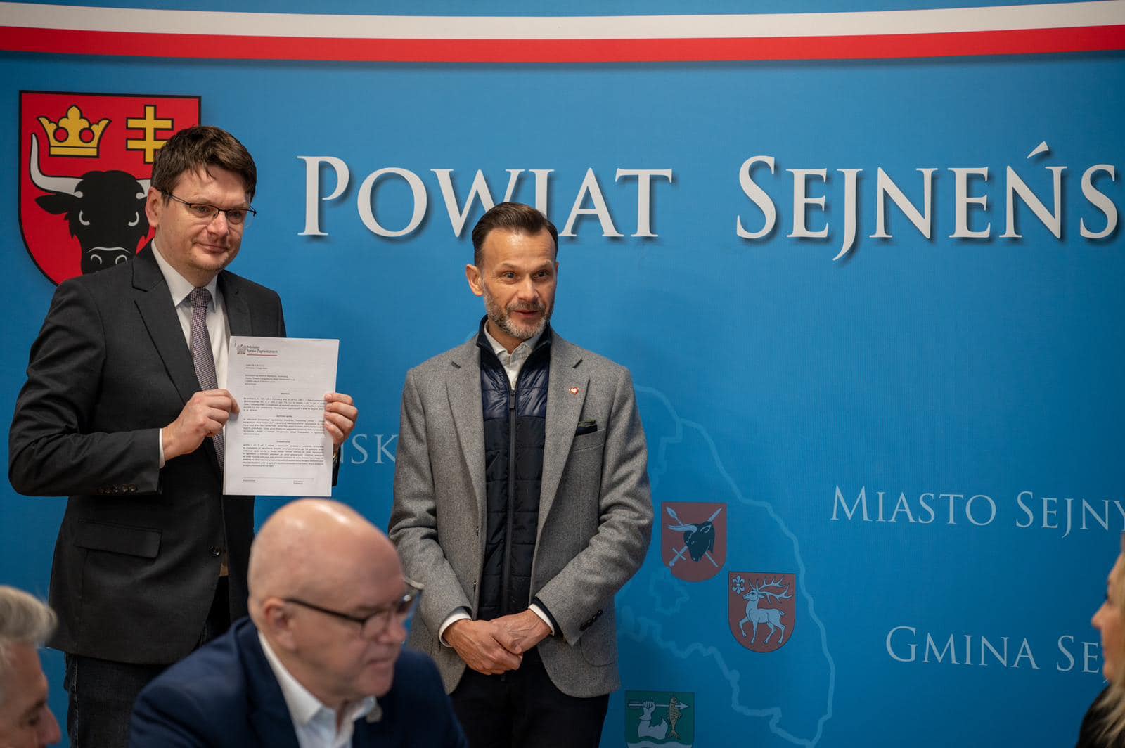 Spotkanie z samorządowcami w Sejnach zorganizowane przez burmistrza miasta Arkadiusza Nowalskiego było z kolei okazją, by przekazać decyzję z Ministerstwa Spraw Zagranicznych dot. zgody na utworzenie Europejskiego Ugrupowania Współpracy Terytorialnej "Polsko-Litewski transgraniczny obszar funkcjonalny". Dzięki niej poszczególne podmioty będą mogły m.in. pozyskiwać fundusze europejskie na projekty. Tematy spotkania obejmowały też program Maluch+, kwestie związane z infrastrukturą drogową oraz wyzwania w oświacie.