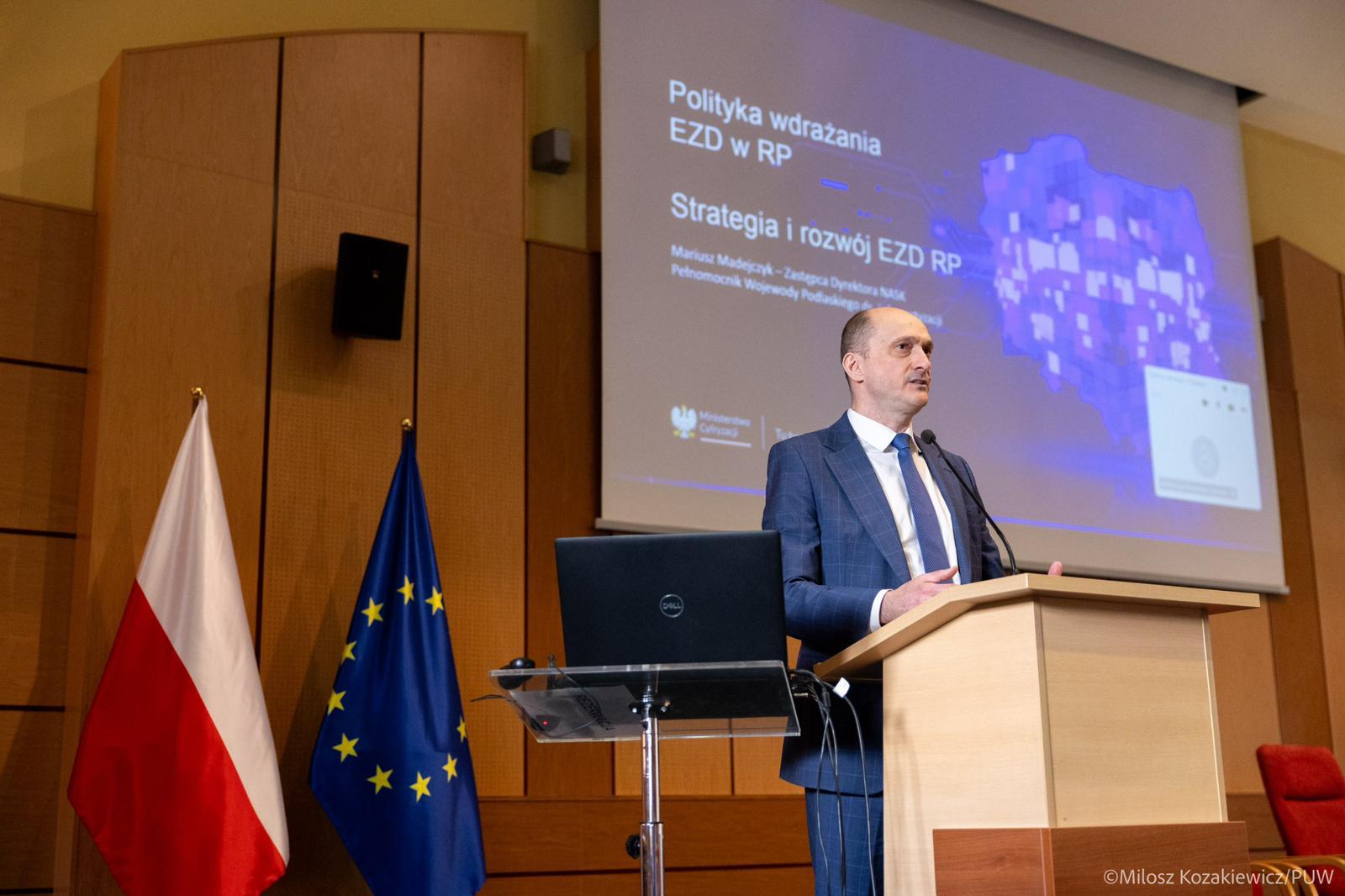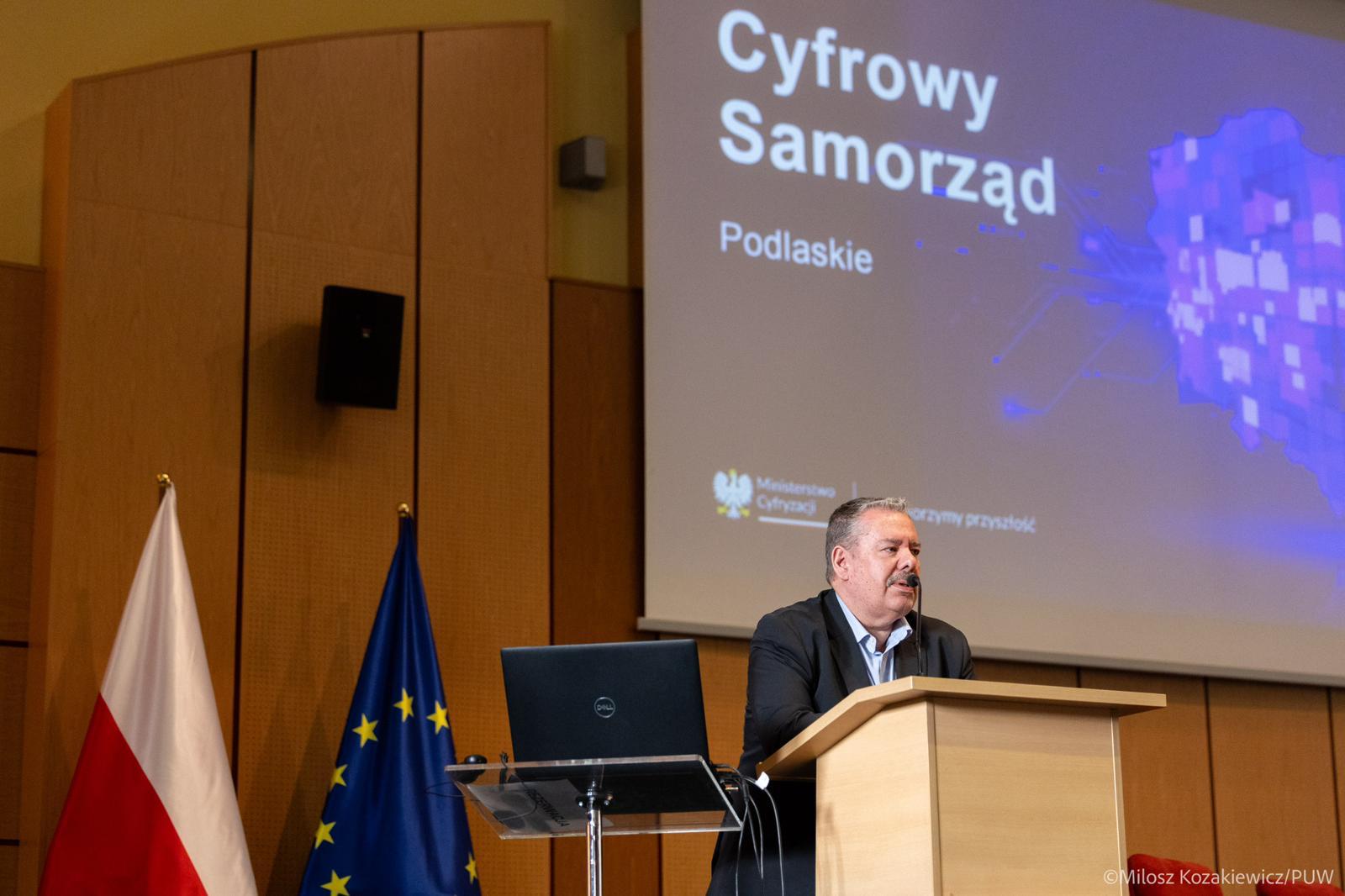 Cyfryzacja usług publicznych, wdrażanie sztucznej inteligencji w administracji oraz budowa kompetencji cyfrowych urzędników - to główne tematy spotkania „Cyfrowy samorząd - Podlaskie”, które odbyło się w Podlaskim Urzędzie Wojewódzkim. Przedstawiciele Ministerstwa Cyfryzacji oraz samorządowcy rozmawiali o tym, jak technologia może ułatwić życie mieszkańcom, przy zachowaniu najwyższych standardów bezpieczeństwa. Uczestników przywitał wojewoda Jacek Brzozowski.