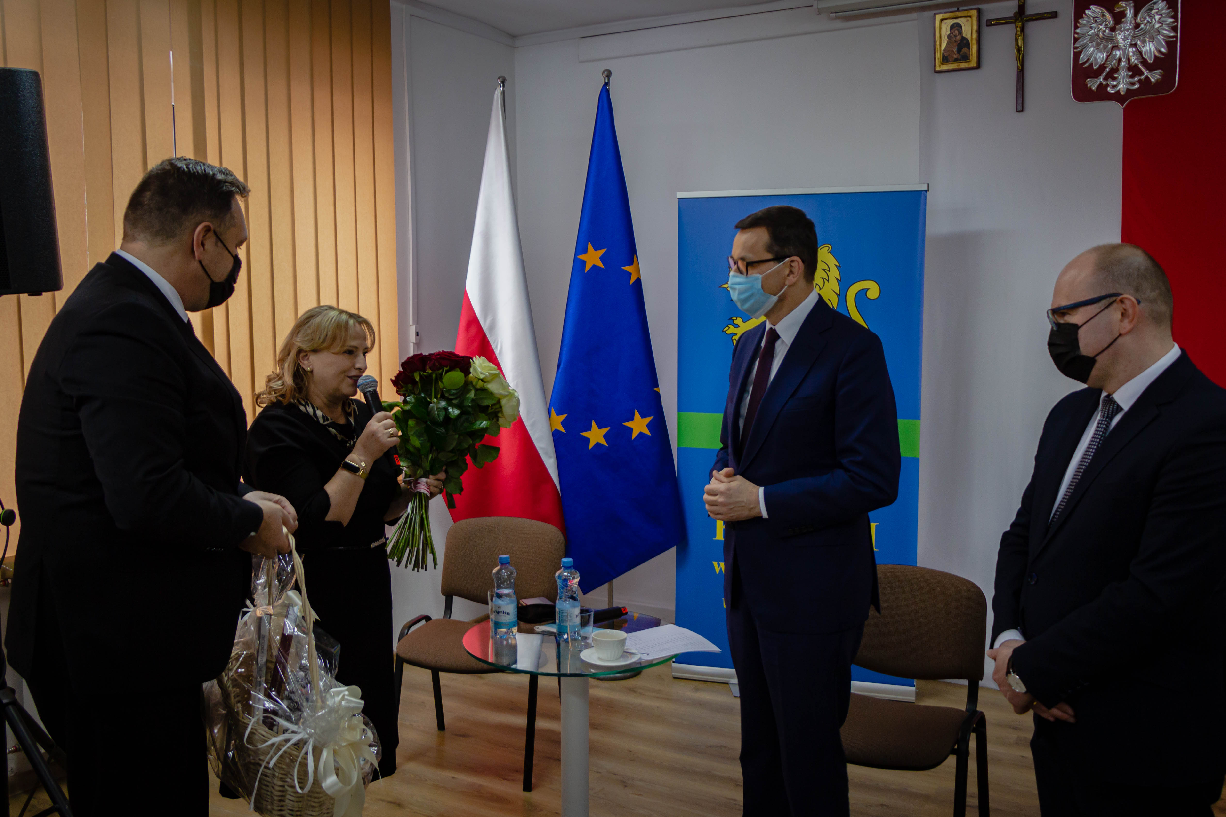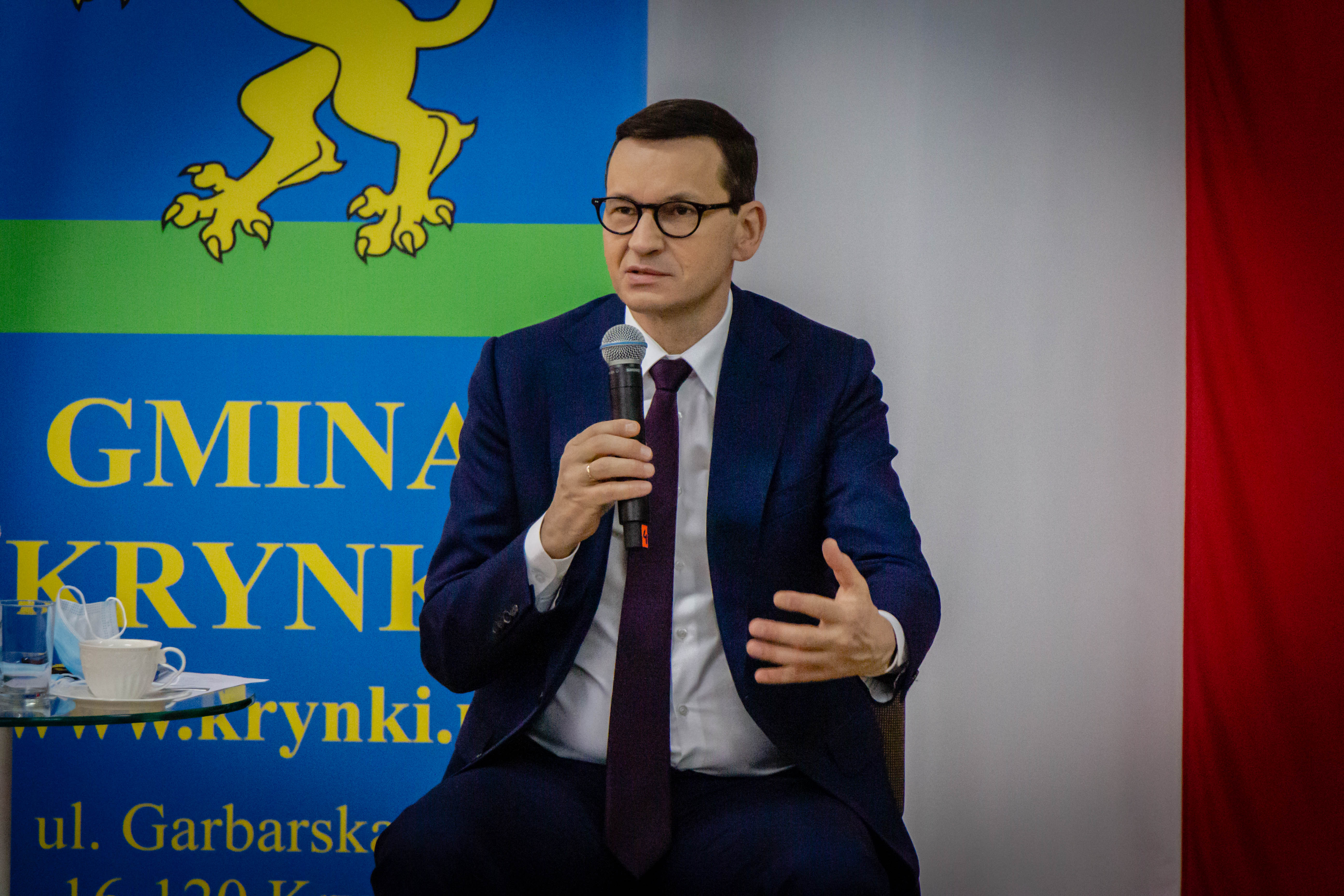 Premier Mateusz Morawiecki w poniedziałek (6.12) przebywał z wizytą w województwie podlaskim - w miejscowościach przy polsko-białoruskiej granicy. Jednym z punktów było spotkanie z samorządowcami z terenu objętego zakazem przebywania, które odbyło się w Urzędzie Miasta i Gminy Krynki. Wziął w nim również udział wojewoda podlaski Bohdan Paszkowski.