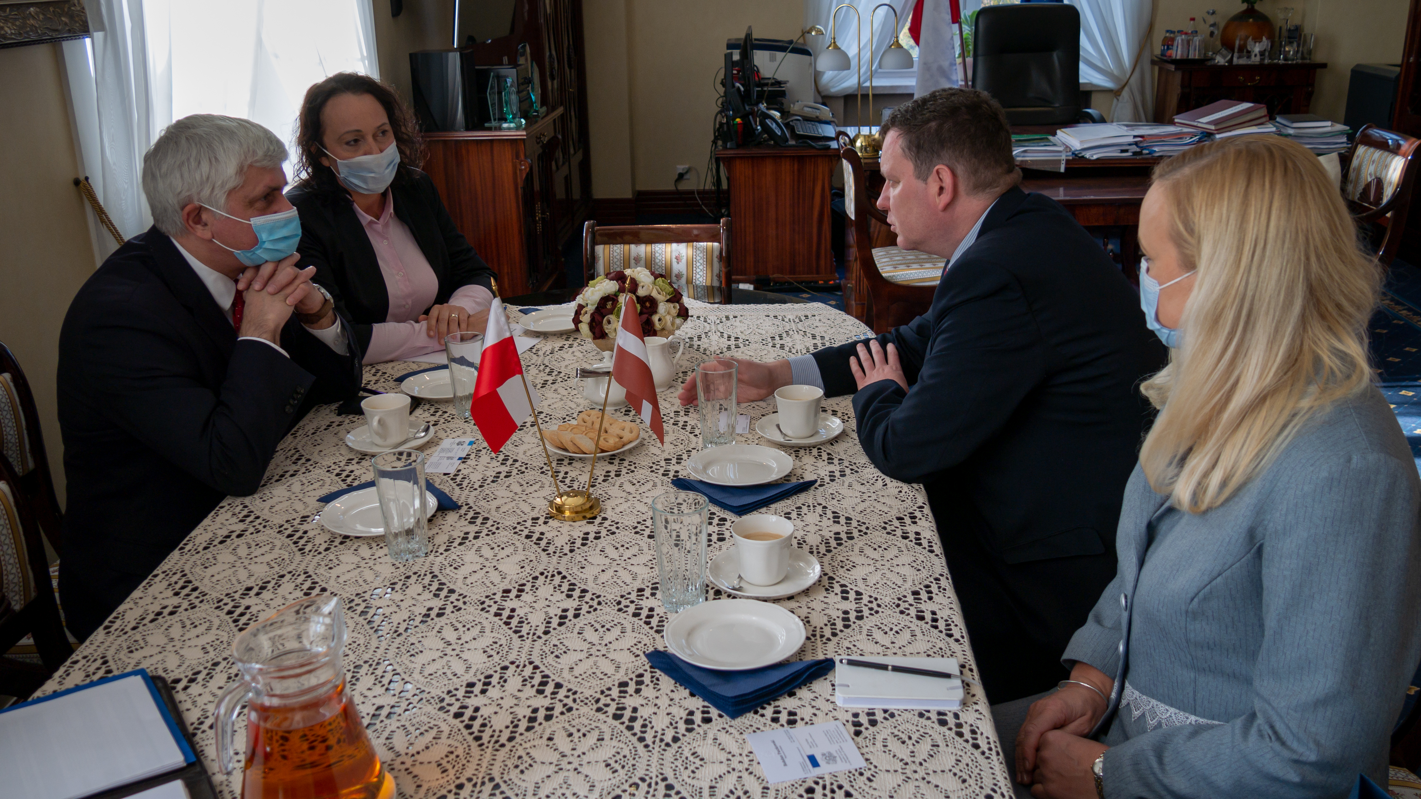 Podczas spotkania w PUW wojewoda podlaski Bohdan Paszkowski i ambasador Łotwy Juris Poikāns dyskutowali m.in. o koncepcji powołania w stolicy województwa podlaskiego konsulatu honorowego Republiki Łotewskiej oraz o współpracy międzyregionalnej. Poruszyli również temat obecnej sytuacji na granicy z Białorusią w związku z obowiązującym zarówno po stronie polskiej, jak i łotewskiej stanem wyjątkowym oraz kwestie dotyczące aktualnej sytuacji epidemicznej w województwie podlaskim i na Łotwie.