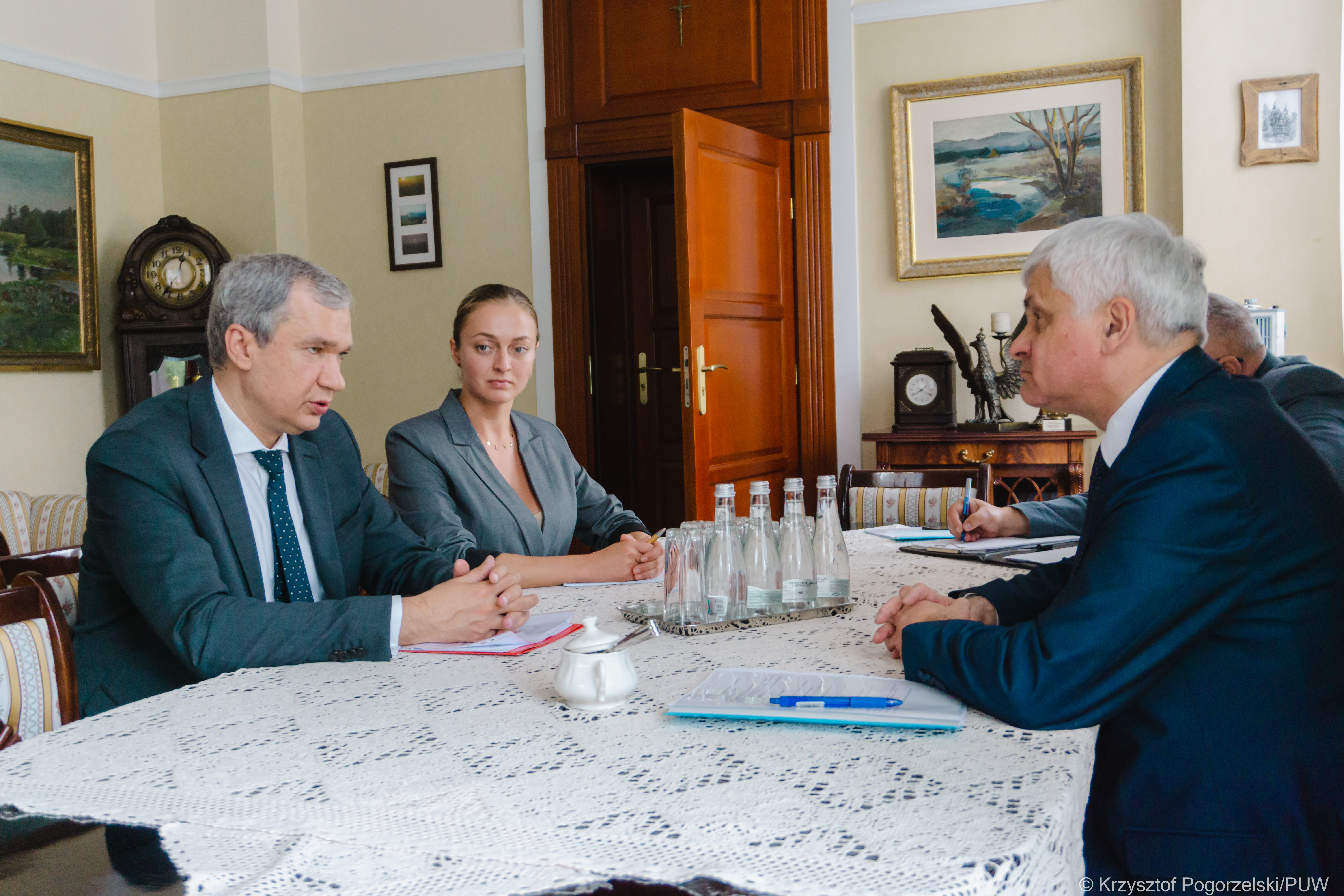 W piątek (15.07) wojewoda podlaski Bohdan Paszkowski spotkał się z Pawłem Łatuszką - przewodniczącym Narodowego Zarządu Antykryzysowego Białorusi, członkiem Prezydium Rady Koordynacyjnej, który w przeszłości pełnił funkcję ministra kultury Białorusi oraz m.in. ambasadora Białorusi w Rzeczypospolitej Polskiej.