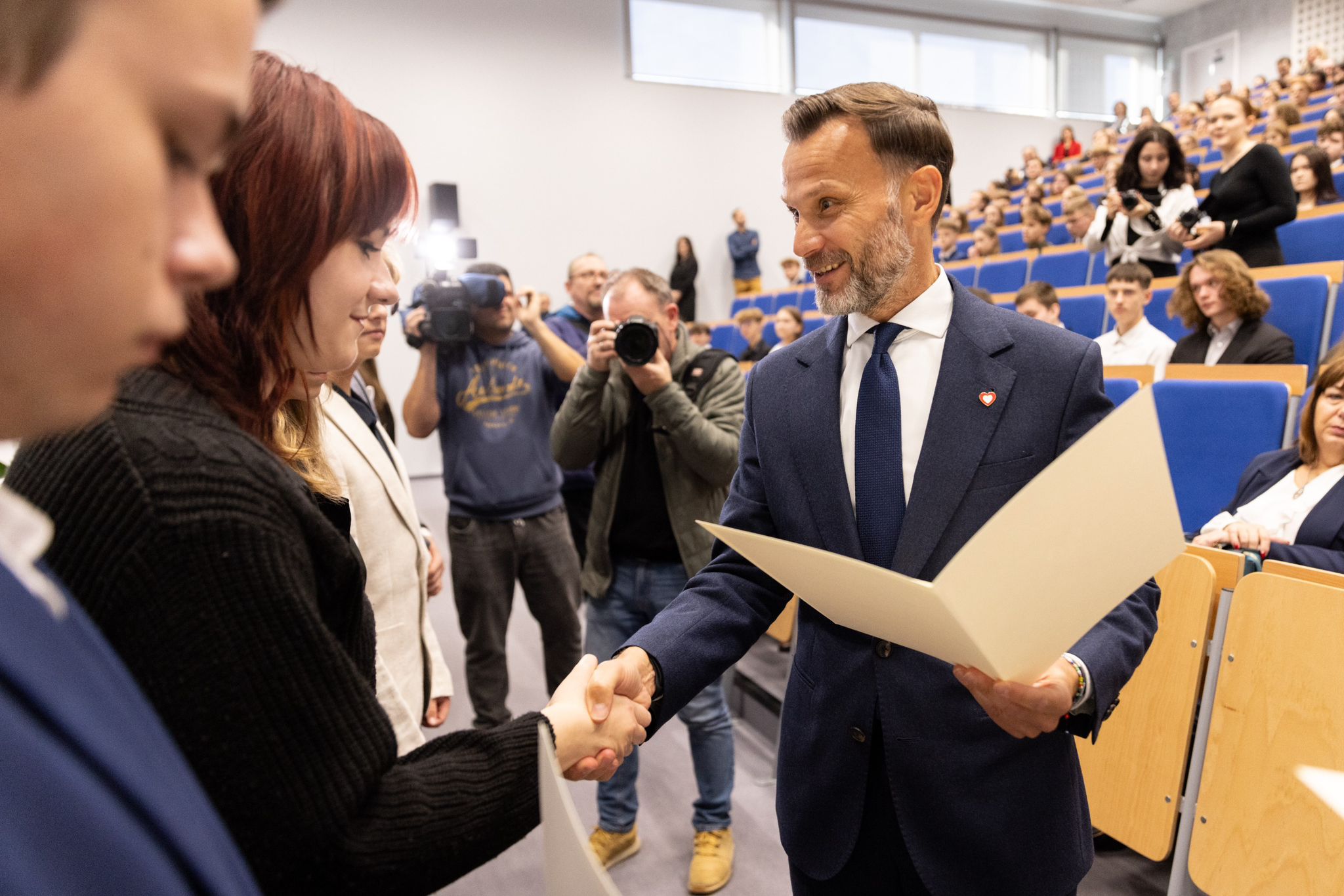 Na uroczystości w II Liceum Ogólnokształcącym w Białymstoku dyplomy wręczali stypendystom wojewoda podlaski Jacek Brzozowski, poseł Krzysztof Truskolaski i podlaska kurator oświaty Agnieszka Krokos-Janczyło.