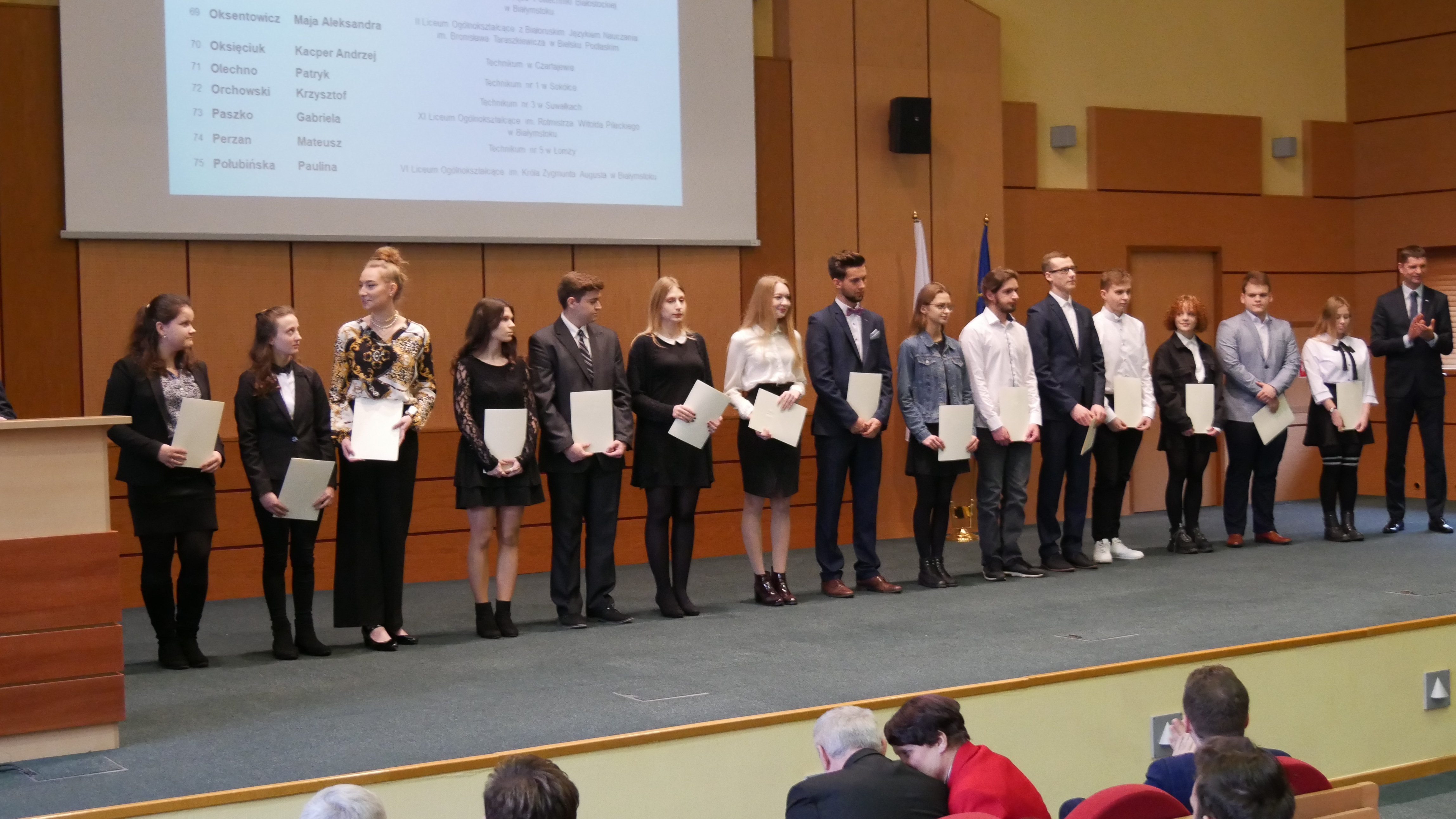 147 najlepszych uczniów otrzymało stypendia Prezesa Rady Ministrów i ministra edukacji narodowej w Podlaskim Urzędzie Wojewódzkim w Białymstoku. W uroczystości wzięli udział minister edukacji Dariusz Piontkowski, wojewoda podlaski Bohdan Paszkowski oraz kurator oświaty Beata Pietruszka.