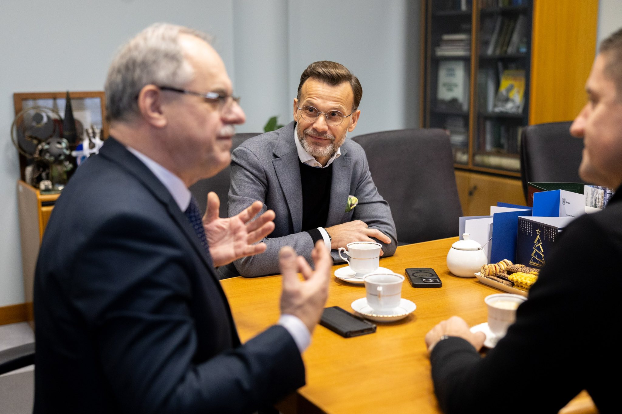 Wojewoda Jacek Brzozowski razem z posłem Jackiem Niedźwiedzkim i prezydentem Suwałk Czesławem Renkiewiczem rozmawiali na temat realizacji Programu Ochrony Ludności i Obrony Cywilnej.