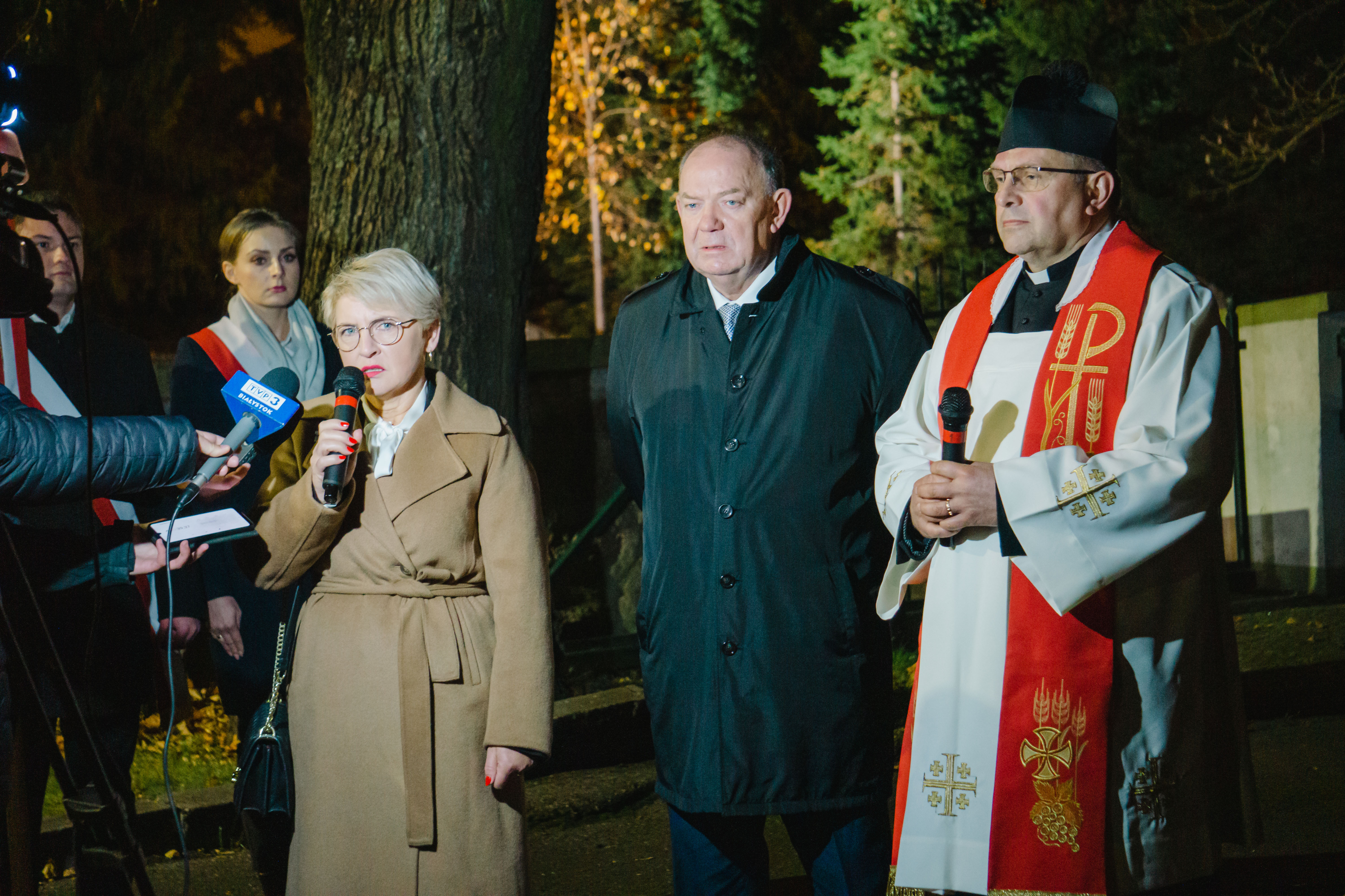 – 38 lat temu zdarzyła się tragedia. Został zamordowany obrońca prawdy i wiary, ksiądz Jery Popiełuszko, który walczył o demokrację i wolną Polskę. Jesteśmy zobowiązani czcić jego pamięć – podkreśliła w swoim wystąpieniu wicewojewoda podlaska Bogusława Szczerbińska. Przypomniała przy tym, że legendarny kapelan „Solidarności” to postać znana nie tylko w naszym kraju, ale i na świecie, która kształtuje postawy patriotyczne młodych ludzi. – Fundacja im. bł. ks. Jerzego Popiełuszki „Dobro” we współpracy z Ministerstwem Kultury i Dziedzictwa Narodowego, Muzeum Podlaskim oraz samorządem województwa zaczęła proces tworzenia Muzeum Błogosławionego Księdza Jerzego Popiełuszki w jego rodzinnej wsi – Okopach – dodała wicewojewoda podlaska.