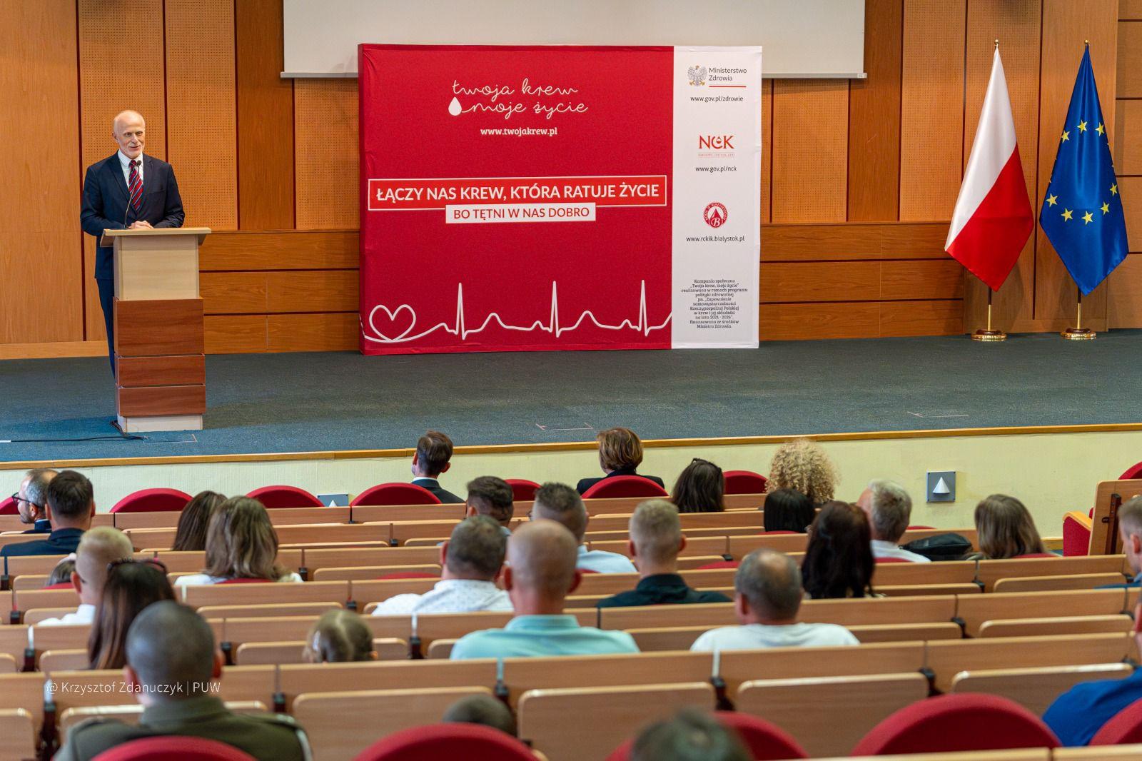 - Pewnie historia każdego z Państwa jest inna. Być może niektórzy postanowili zacząć oddawać krew, bo byli ciekawi, jak to wygląda. Inni może komuś towarzyszyli, a jeszcze inni zrobili to z potrzeby pomocy bliskiej osobie: rodzinie, przyjaciołom czy znajomym, ale to nie ma znaczenia. Najważniejszy jest efekt. Ratujecie w ten sposób życie - mówił do zebranych wojewoda Jacek Brzozowski.