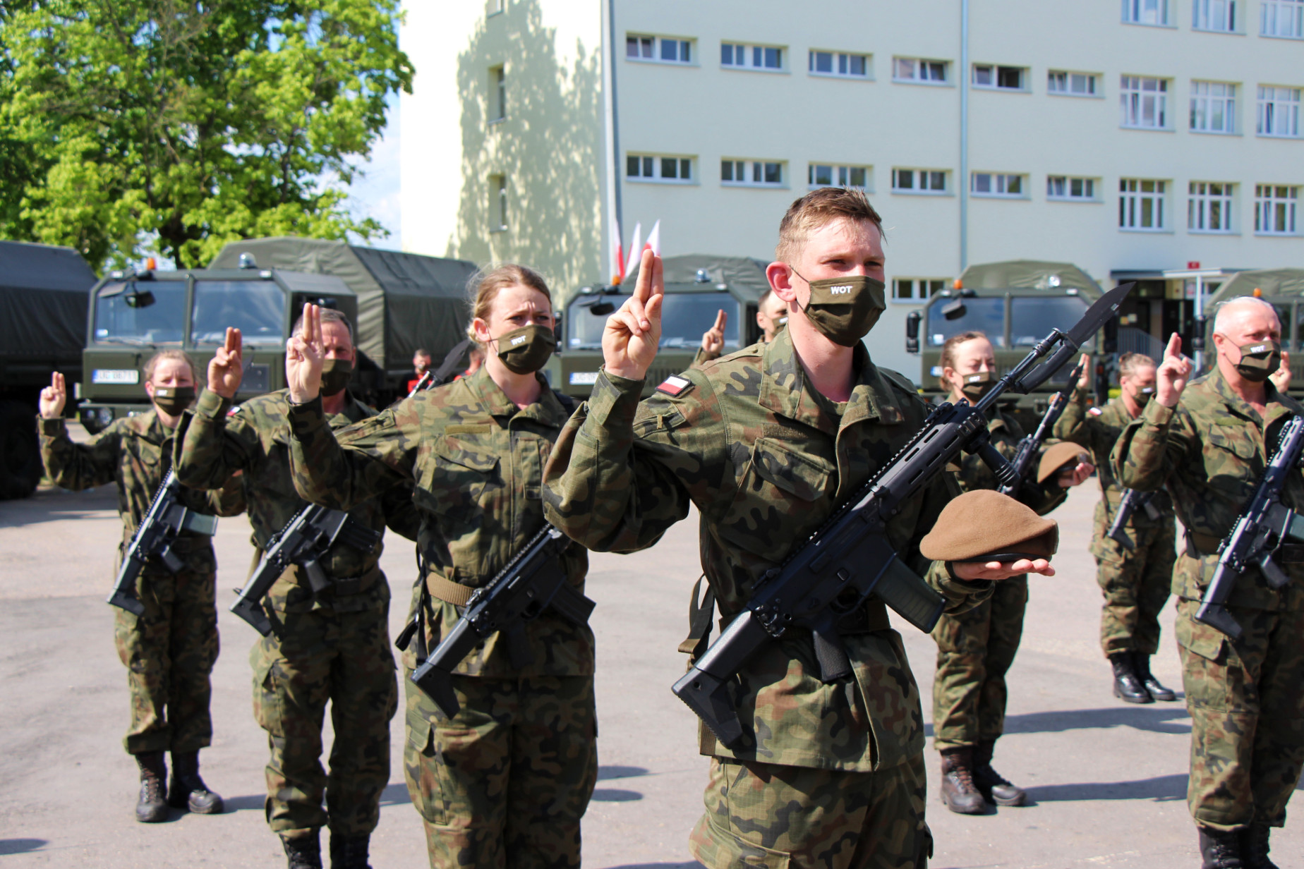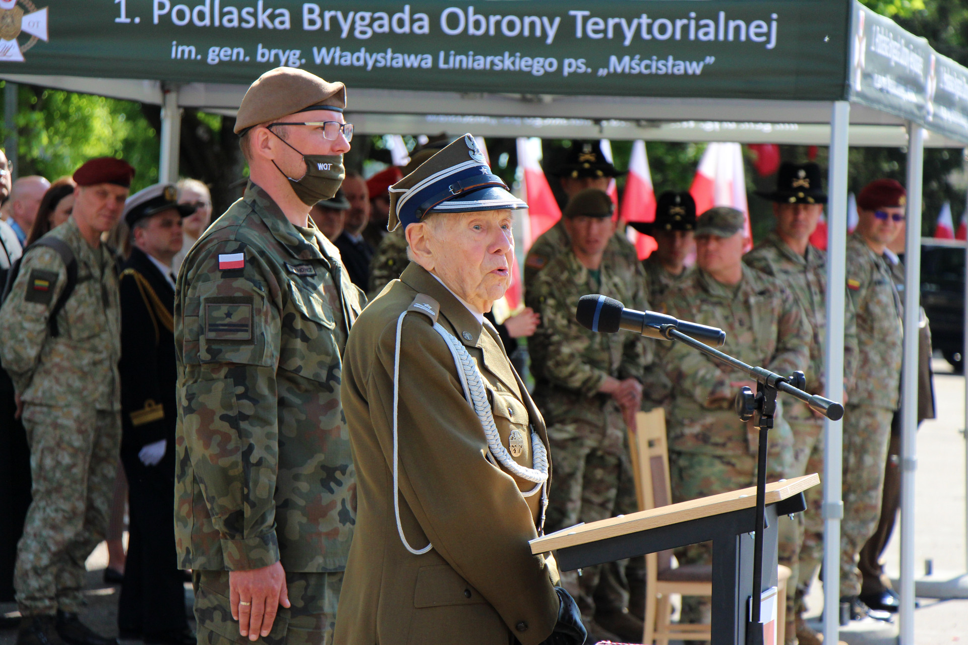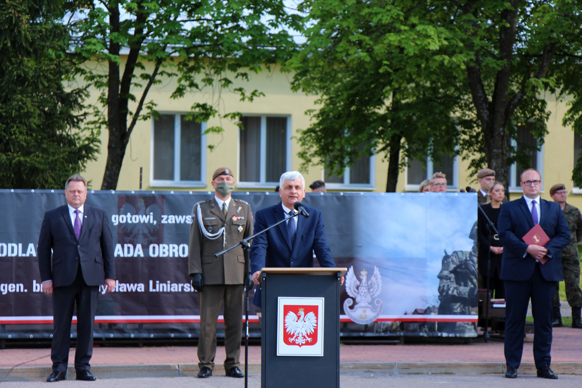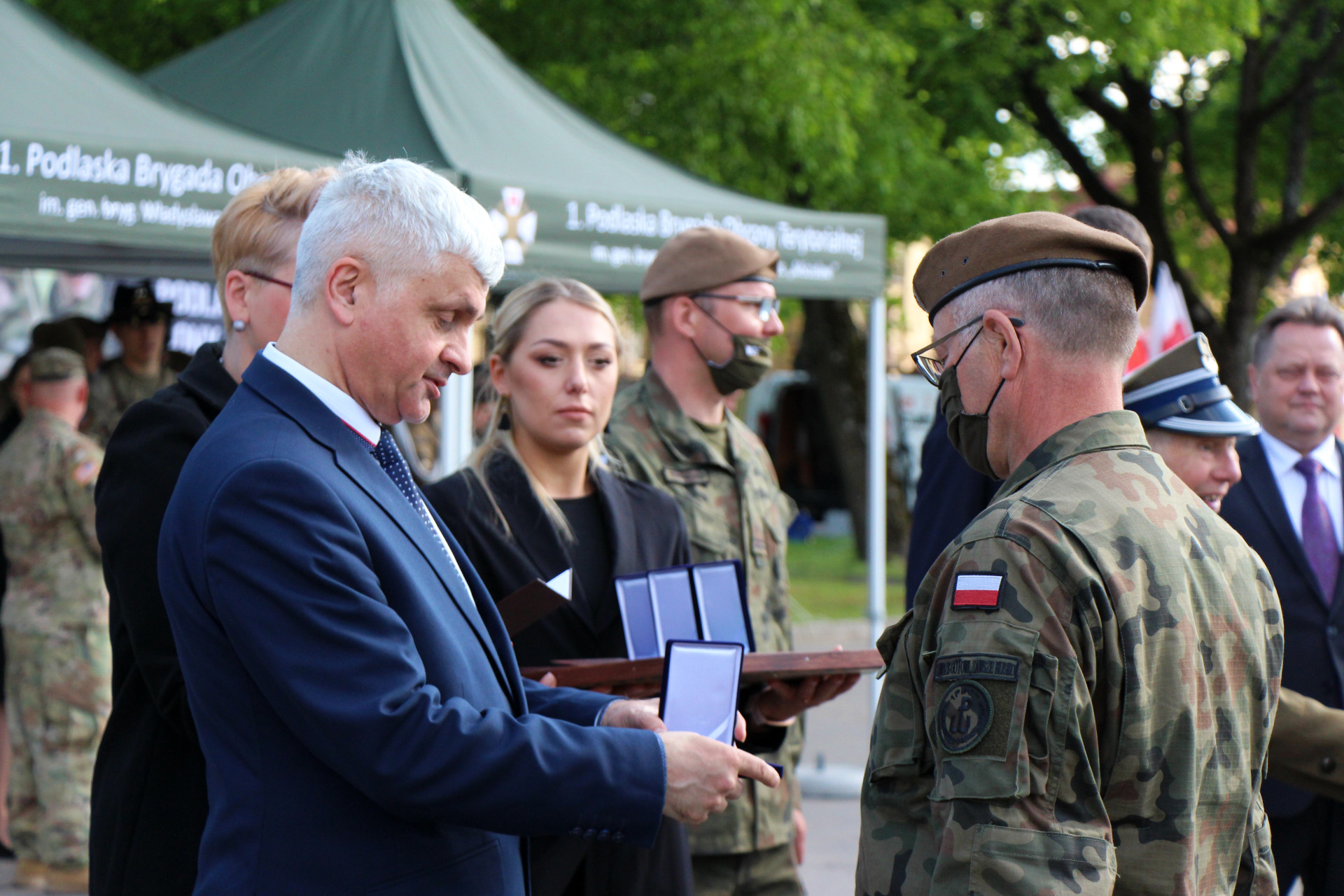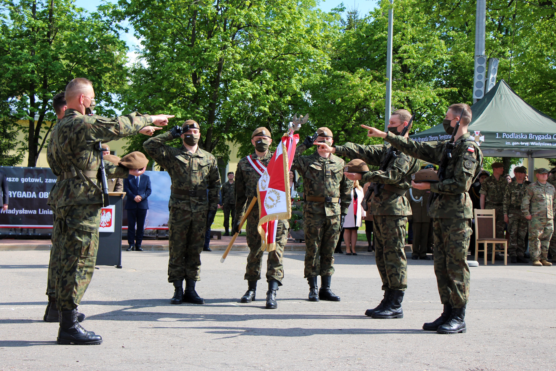 W piątek (21.05) nowi terytorialsi złożyli przysięgę wojskową na sztandar 1 Podlaskiej Brygady Obrony Terytorialnej. To była podwójna uroczystość, ponieważ zaprzysiężenie odbyło się w dniu święta Brygady. Wziął w nim udział wojewoda podlaski Bohdan Paszkowski, który wręczył dowódcy formacji pamiątkowy grawerton w uznaniu za ofiarną służbę żołnierzy na rzecz bezpieczeństwa mieszkańców województwa podlaskiego, zwłaszcza w czasie pandemii COVID-19.