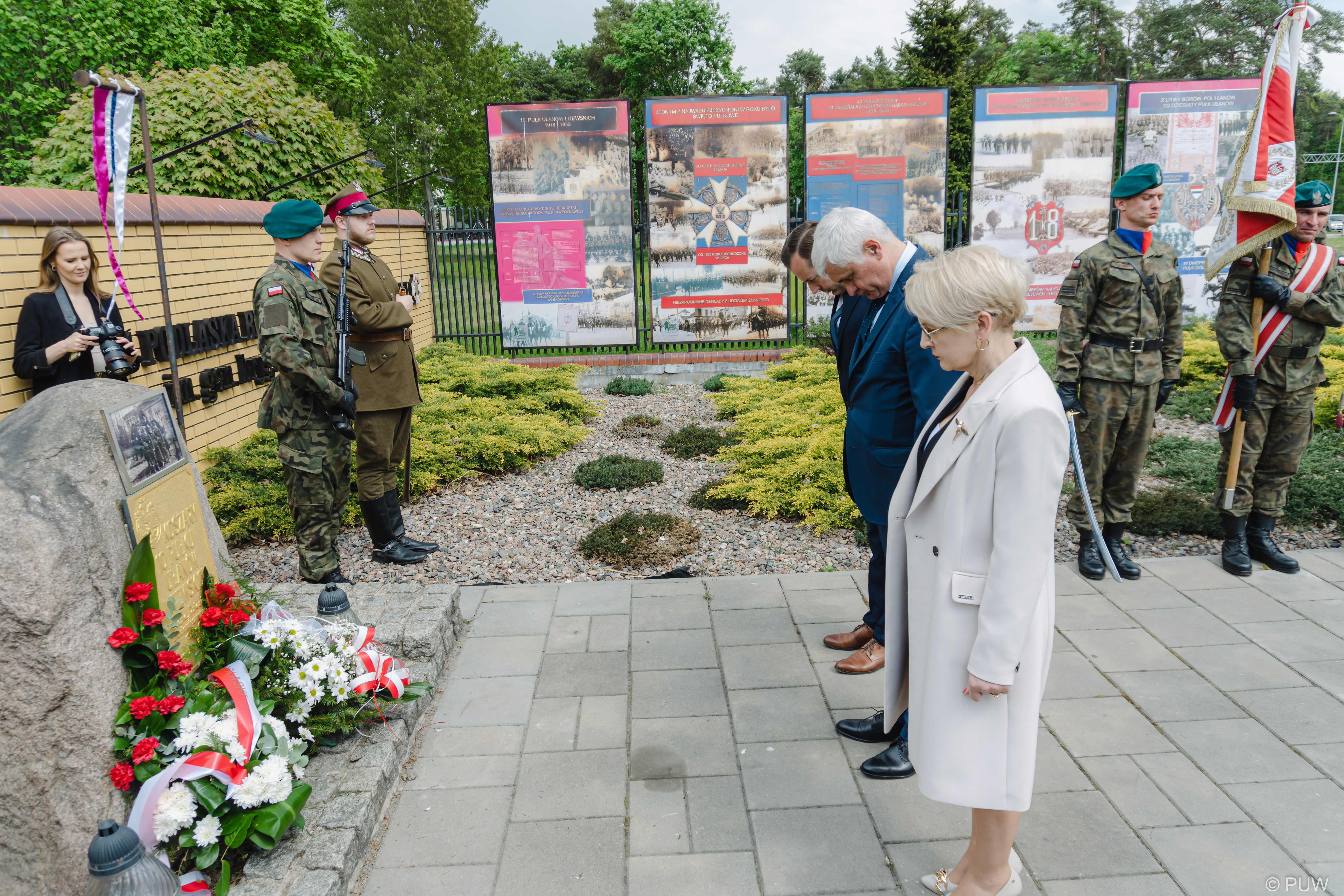 Pod tablicą upamiętniającą te czasy uczestnicy uroczystości, wśród nich m.in. wojewoda podlaski, wicewojewoda Bogusława Szczerbińska, dyrektor białostockiego Oddziału IPN Marek Jedynak oraz prezes Koła Żołnierzy 10. Pułku Ułanów Litewskich i Ich Rodzin w Białymstoku Maria Jędryczek, złożyli kwiaty, oddając hołd poległym i zmarłym ułanom.