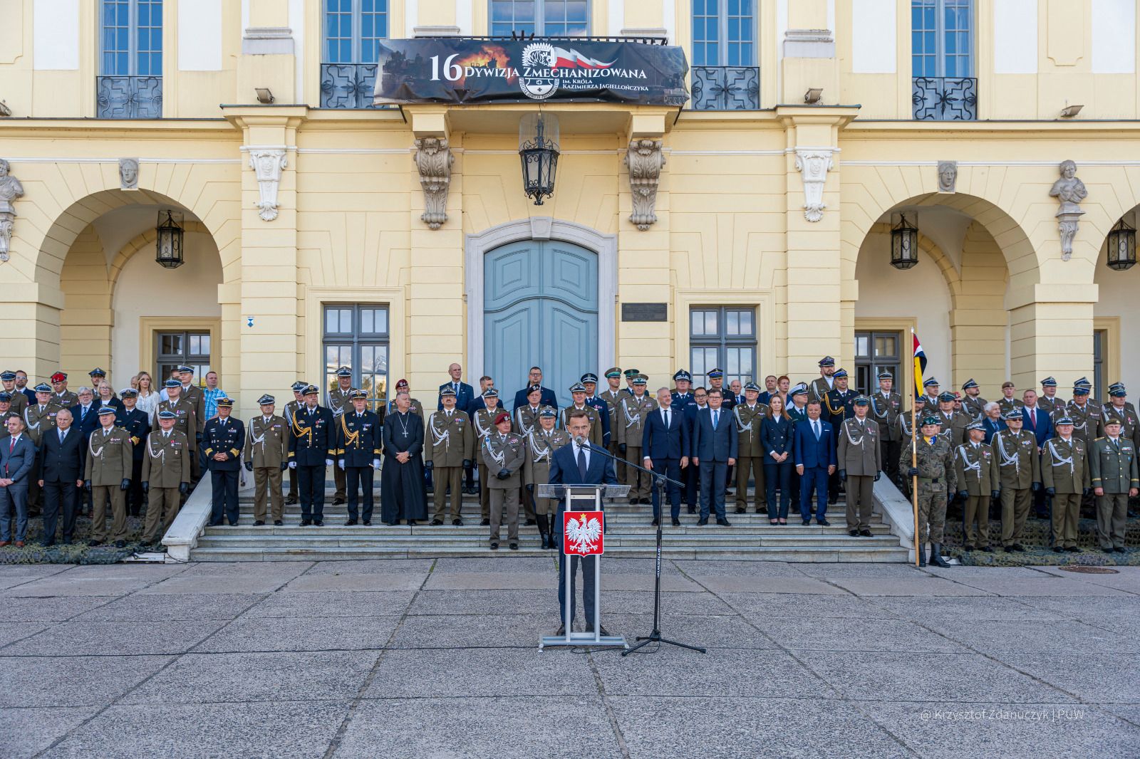 16 Pomorska Dywizja Zmechanizowana im. Króla Kazimierza Jagiellończyka w drugim półroczu 2025 roku odpowiada za operację "Bezpieczne Podlasie", dlatego to w naszym regionie obchodziła swoje doroczne święto. W uroczystym apelu pod Pałacem Branickich w Białymstoku wziął udział wojewoda podlaski Jacek Brzozowski. Na spotkanie z żołnierzami stacjonującymi na co dzień w Olsztynie przyjechał także wojewoda warmińsko-mazurski Radosław Król.