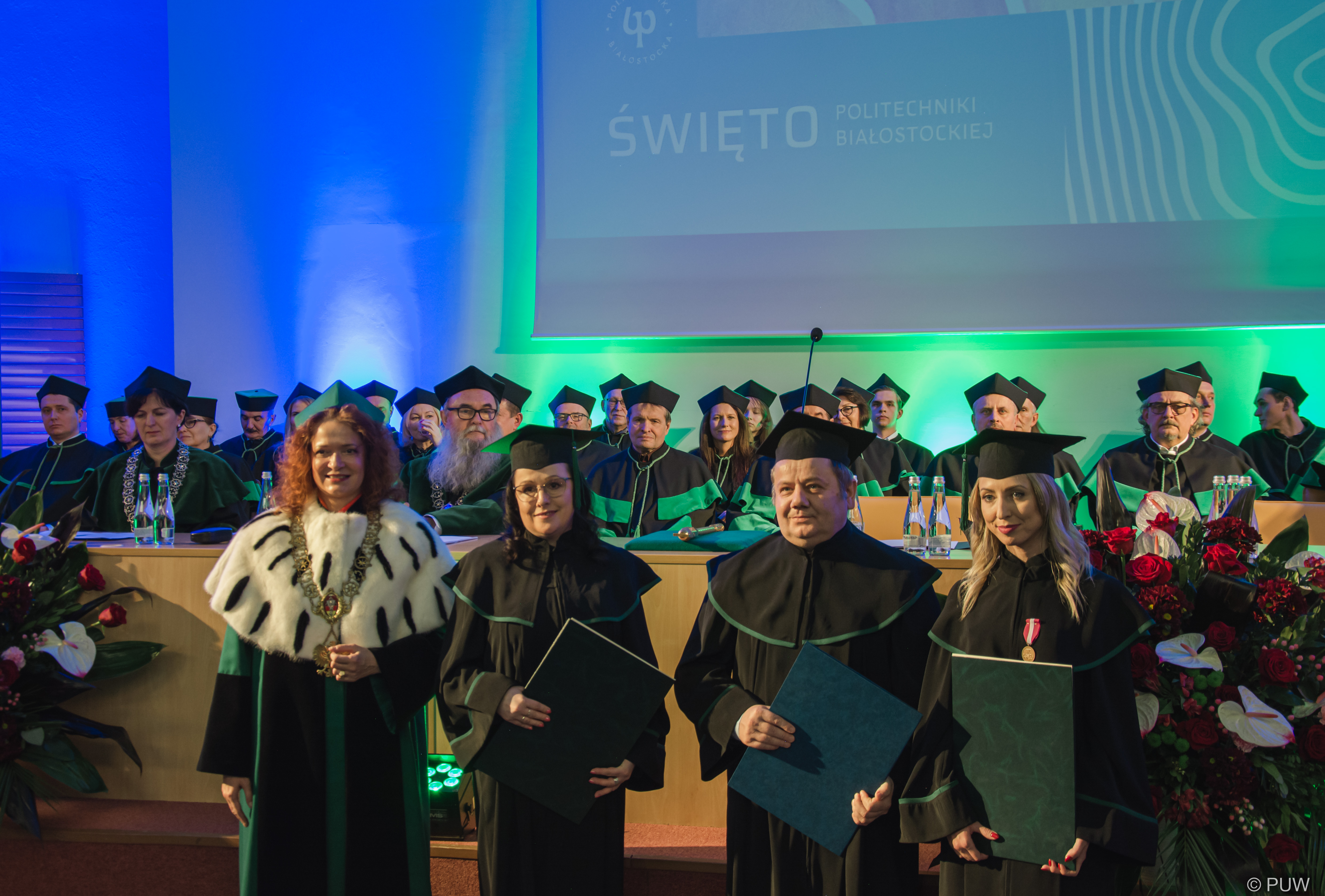 Święto Politechniki Białostockiej to okazja do uhonorowania przedstawicieli całej społeczności akademickiej. Gratulacje odebrał prof. Marcin Kochanowicz, pięcioro doktorów habilitowanych i aż 23 osoby uzyskały stopień doktora. Wicewojewoda Tomasz Madras wręczył 50 pracownikom Medale za Długoletnią Służbę, przyznane przez prezydenta Andrzeja Dudę.