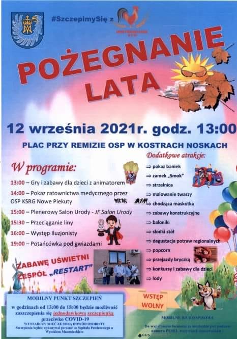 Kostry Noski (gm. Nowe Piekuty) - Pożegnanie lata - punkt szczepień na placu przy remizie OSP będzie działał od godz. 13 do 18