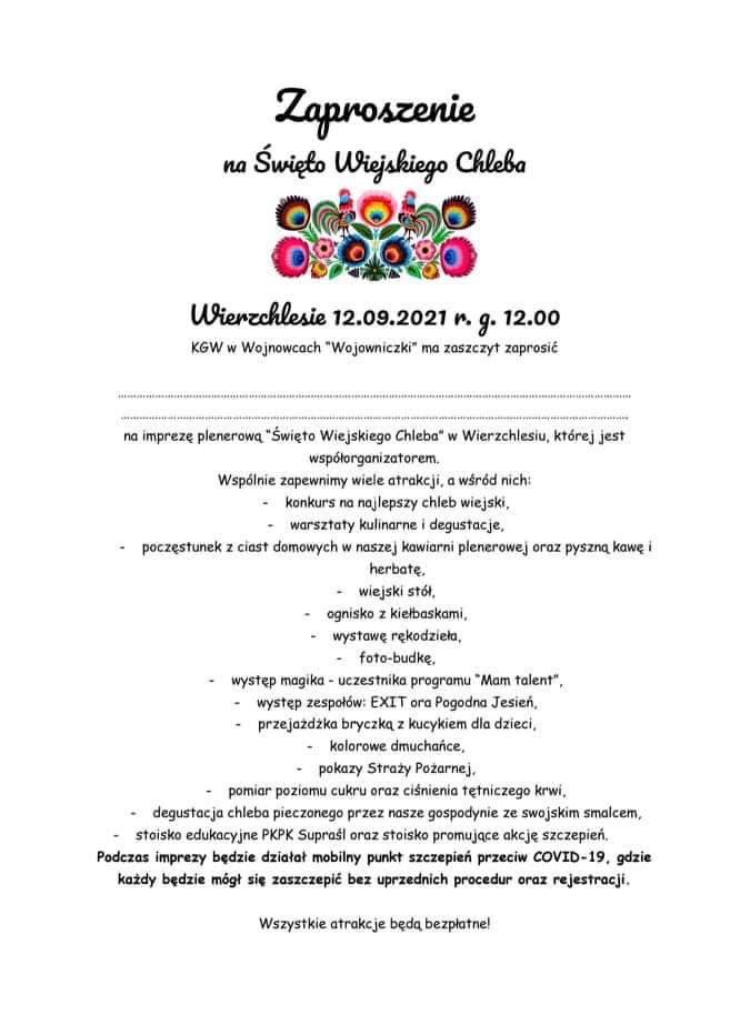 Wierzchlesie (gm. Szudziałowo) - Święto Wiejskiego Chleba - punkt będzie działał od godz. 12 do 18