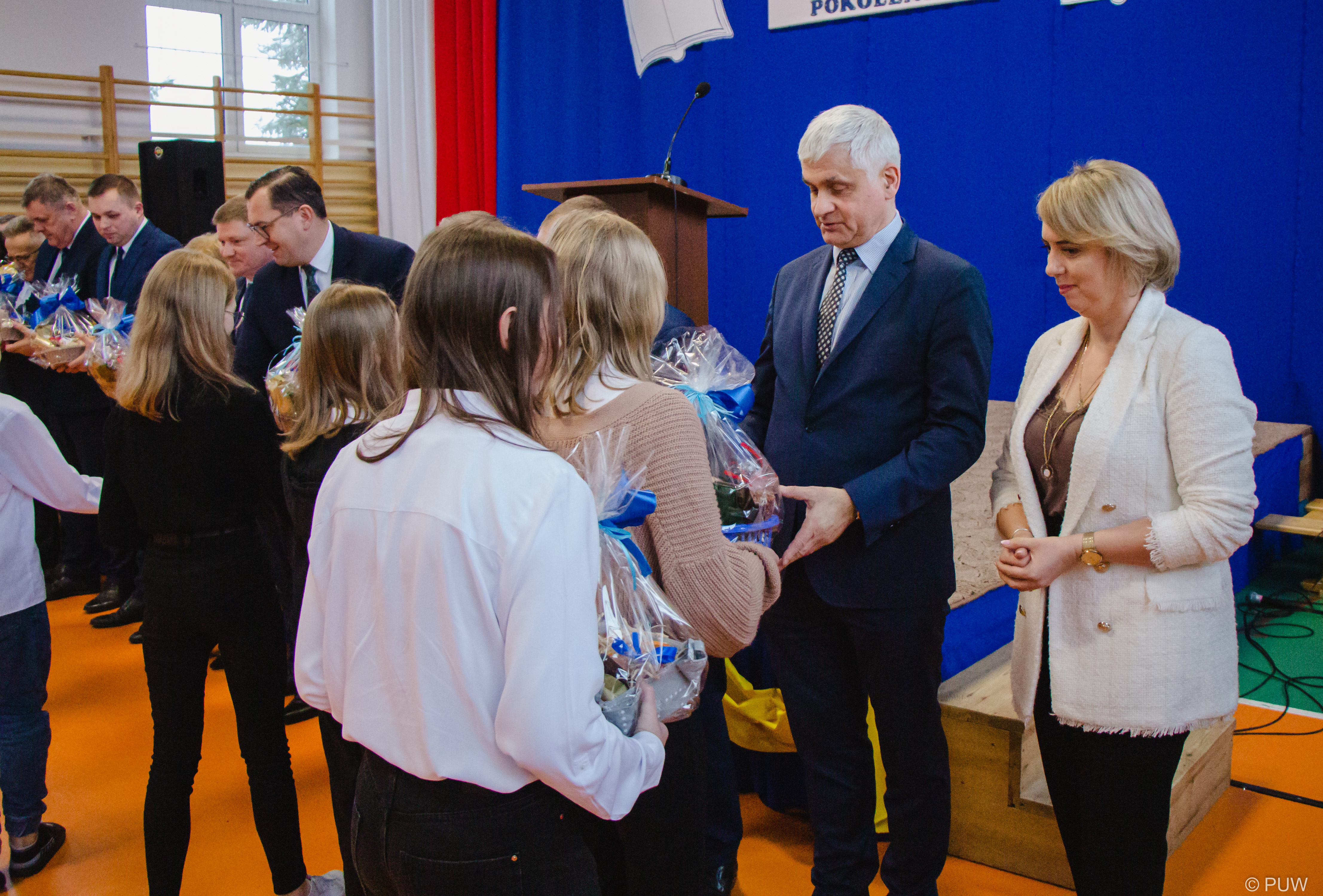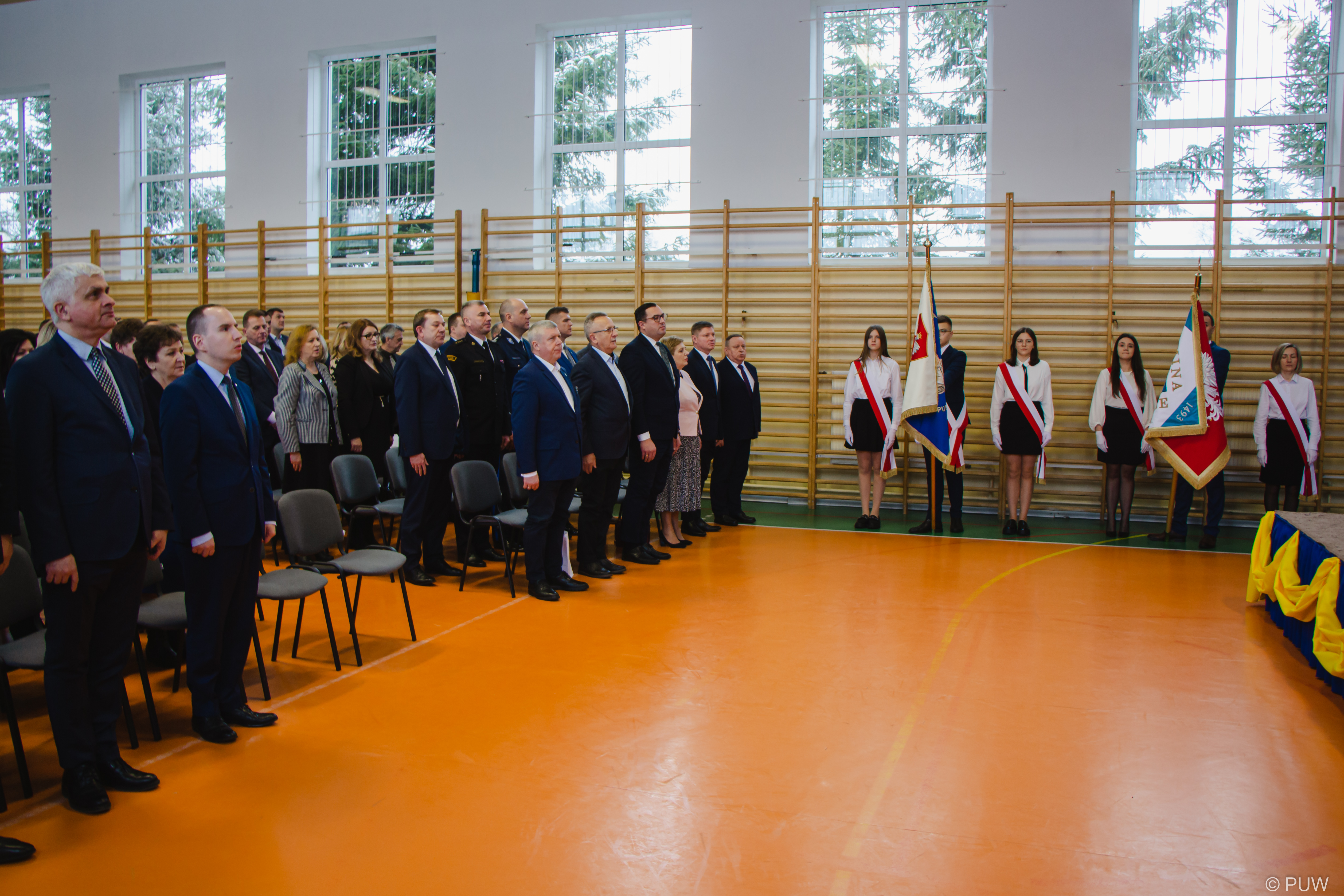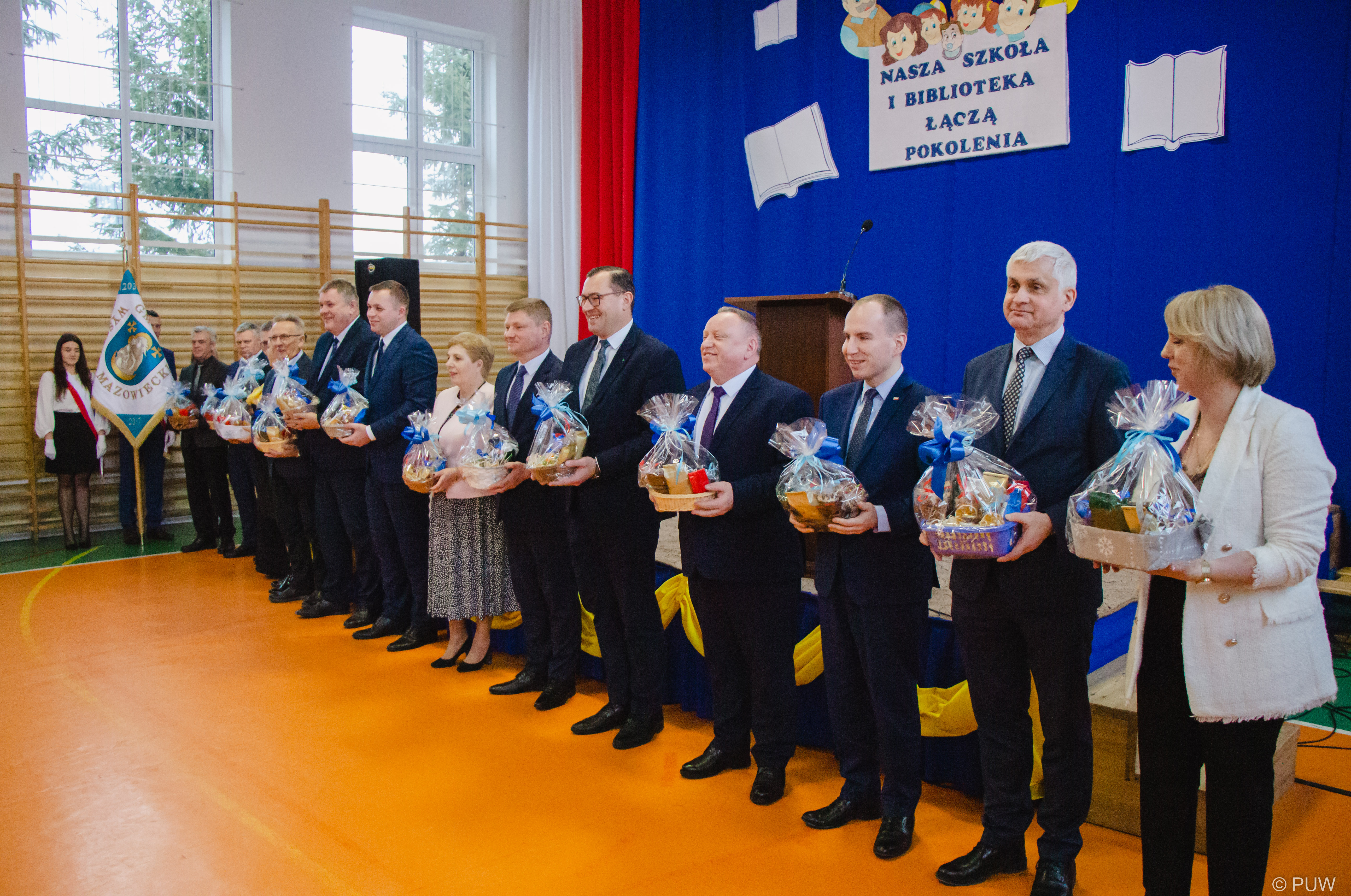 W uroczystości wzięli udział parlamentarzyści: wiceminister edukacji i nauki Dariusz Piontkowski, sekretarz stanu w KPRM Adam Andruszkiewicz, senator Jacek Bogucki, samorządowcy, przedstawieciele gminnych instytucji, uczniowie i nauczyciele na czele z dyrektorem placówki Sławomirem Wójcickim.